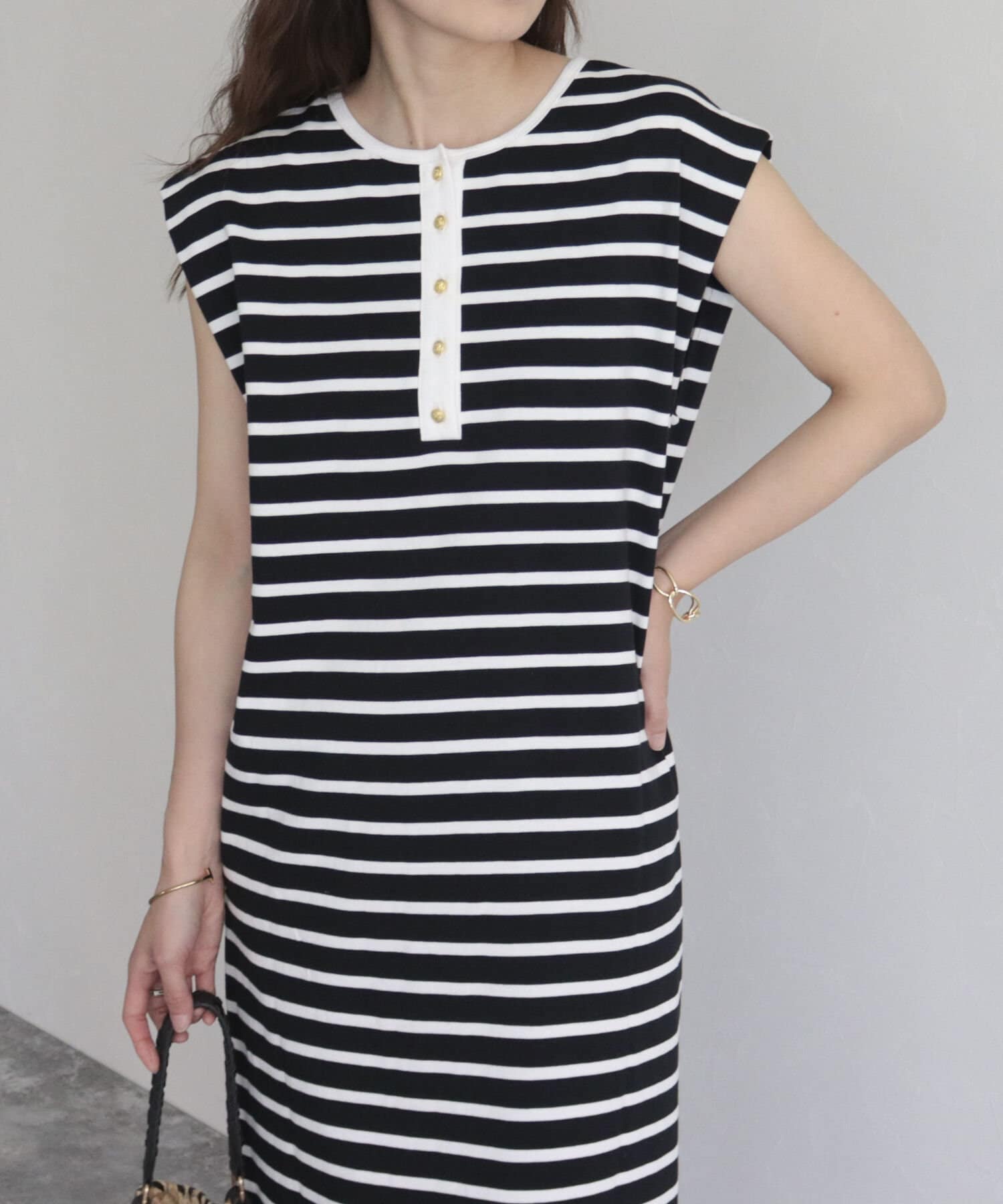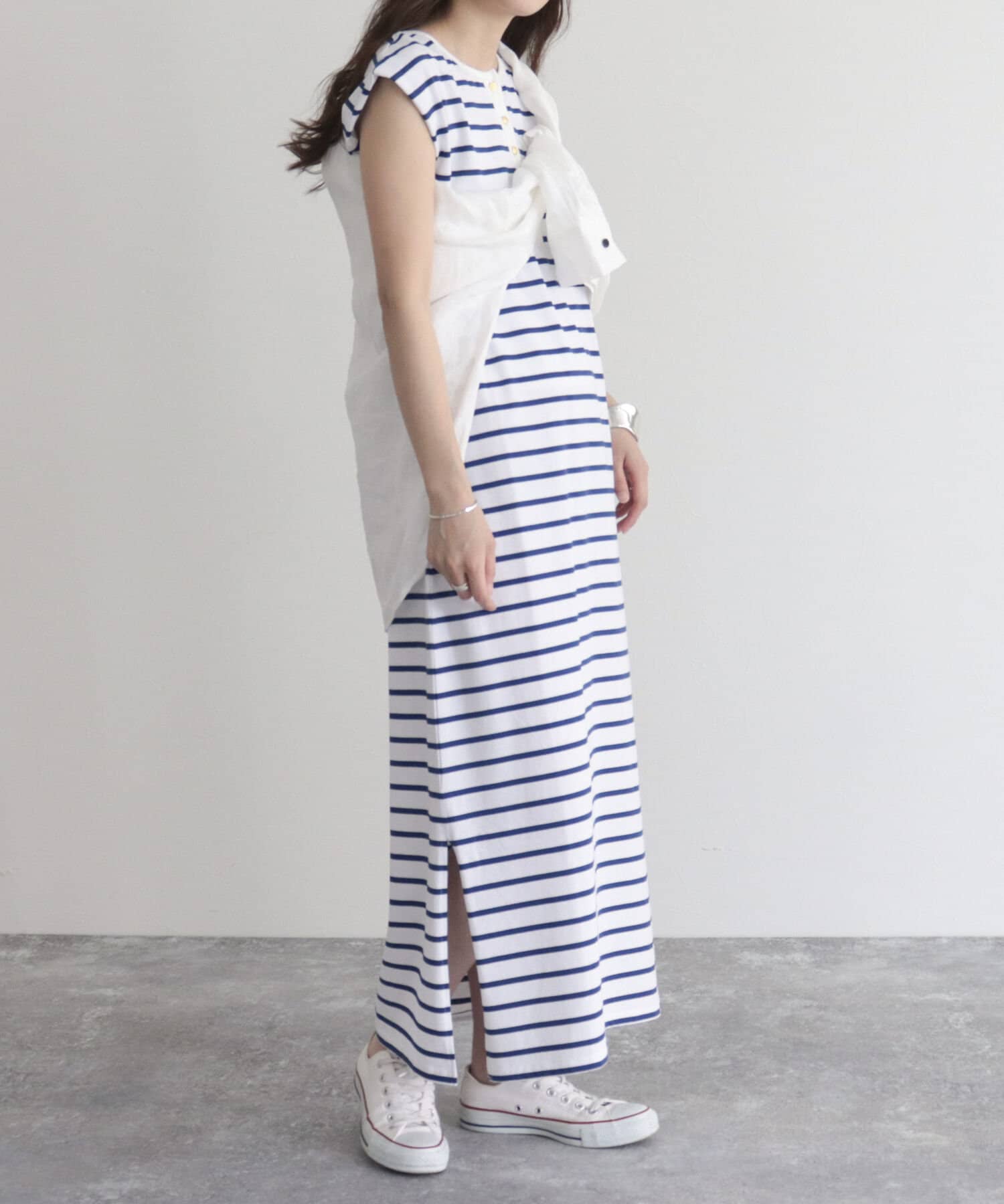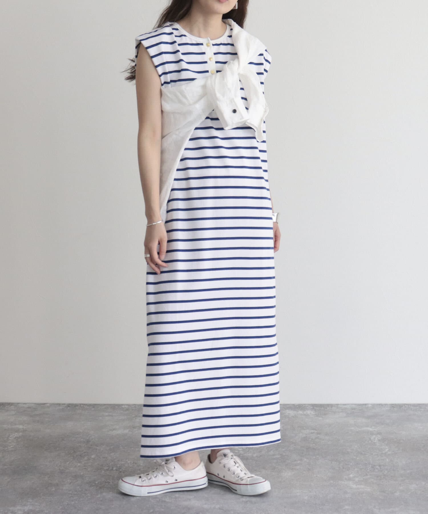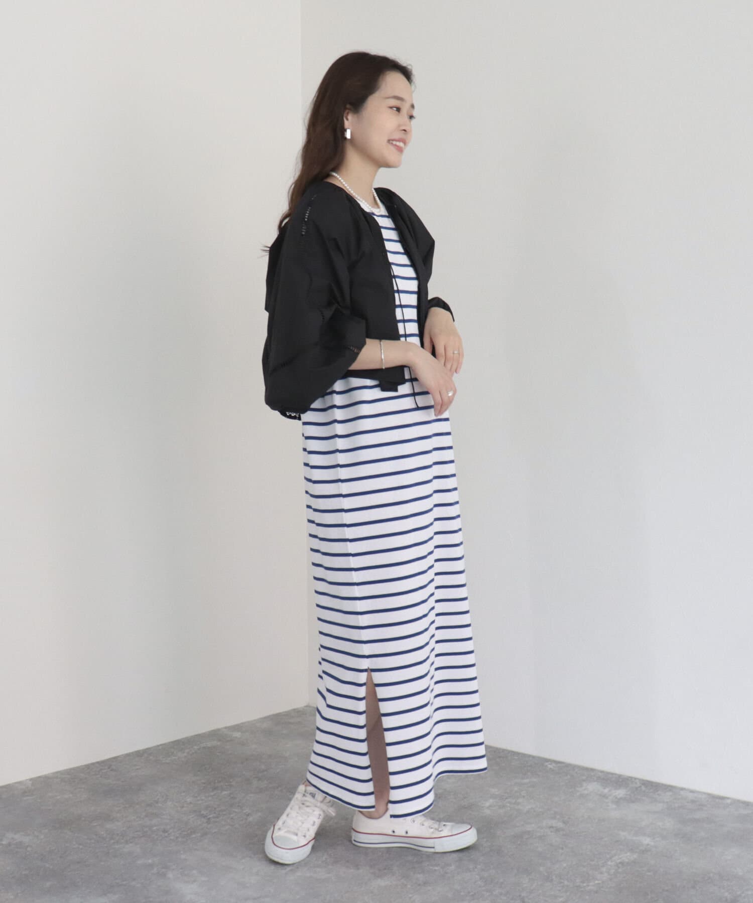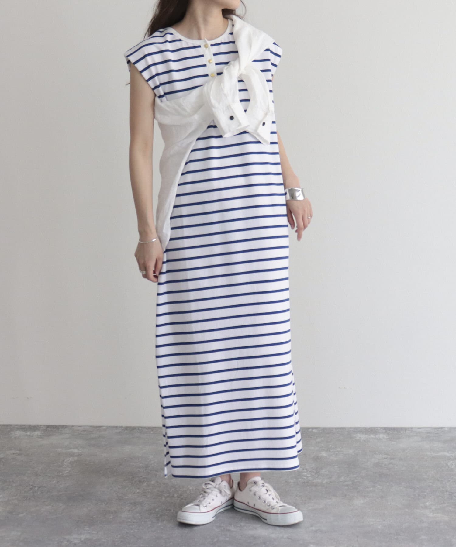 ・両前なので着回しを楽しめるカットソー素材のボーダーワンピース