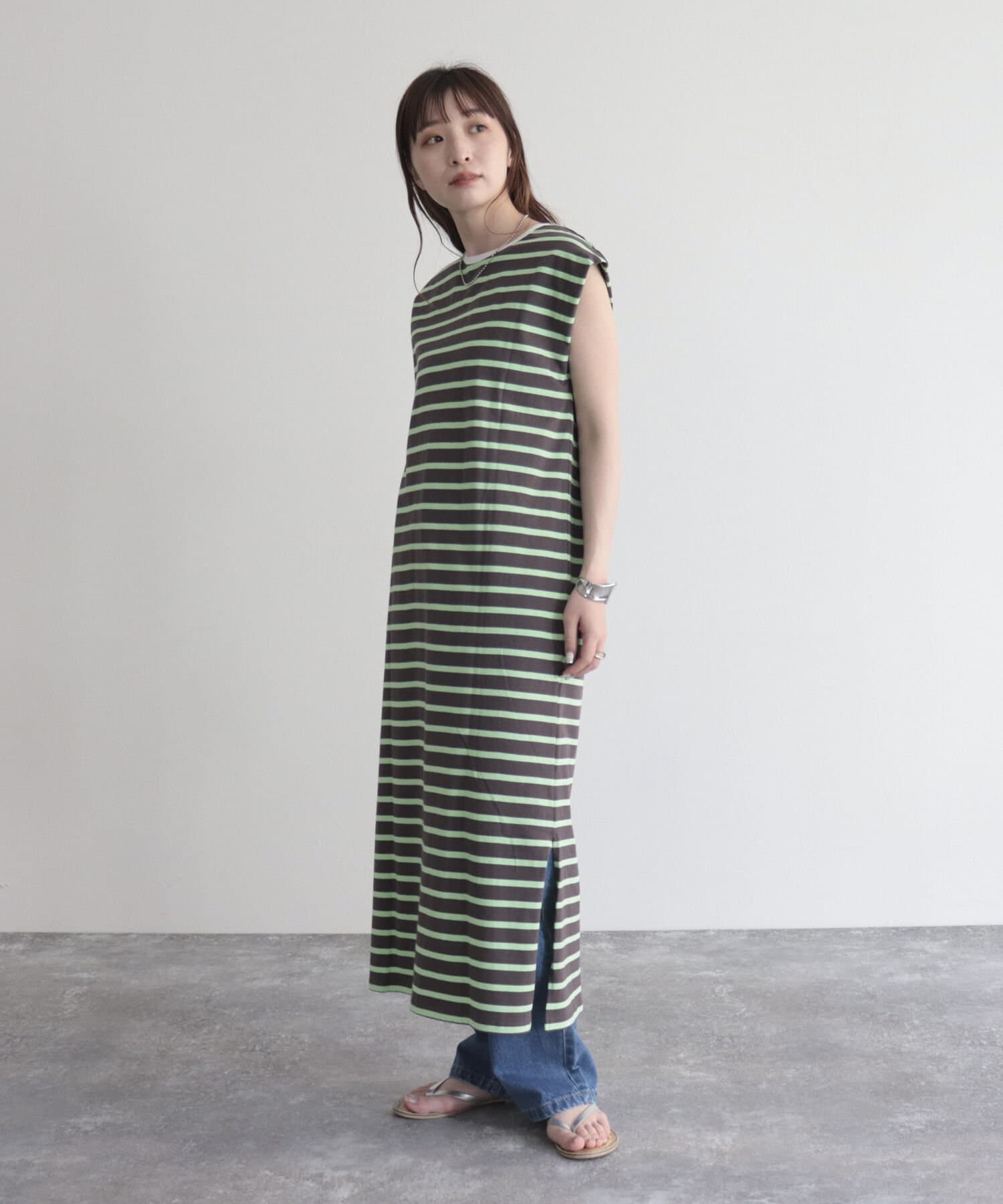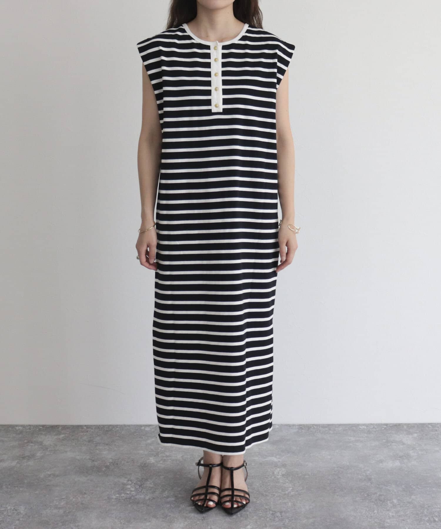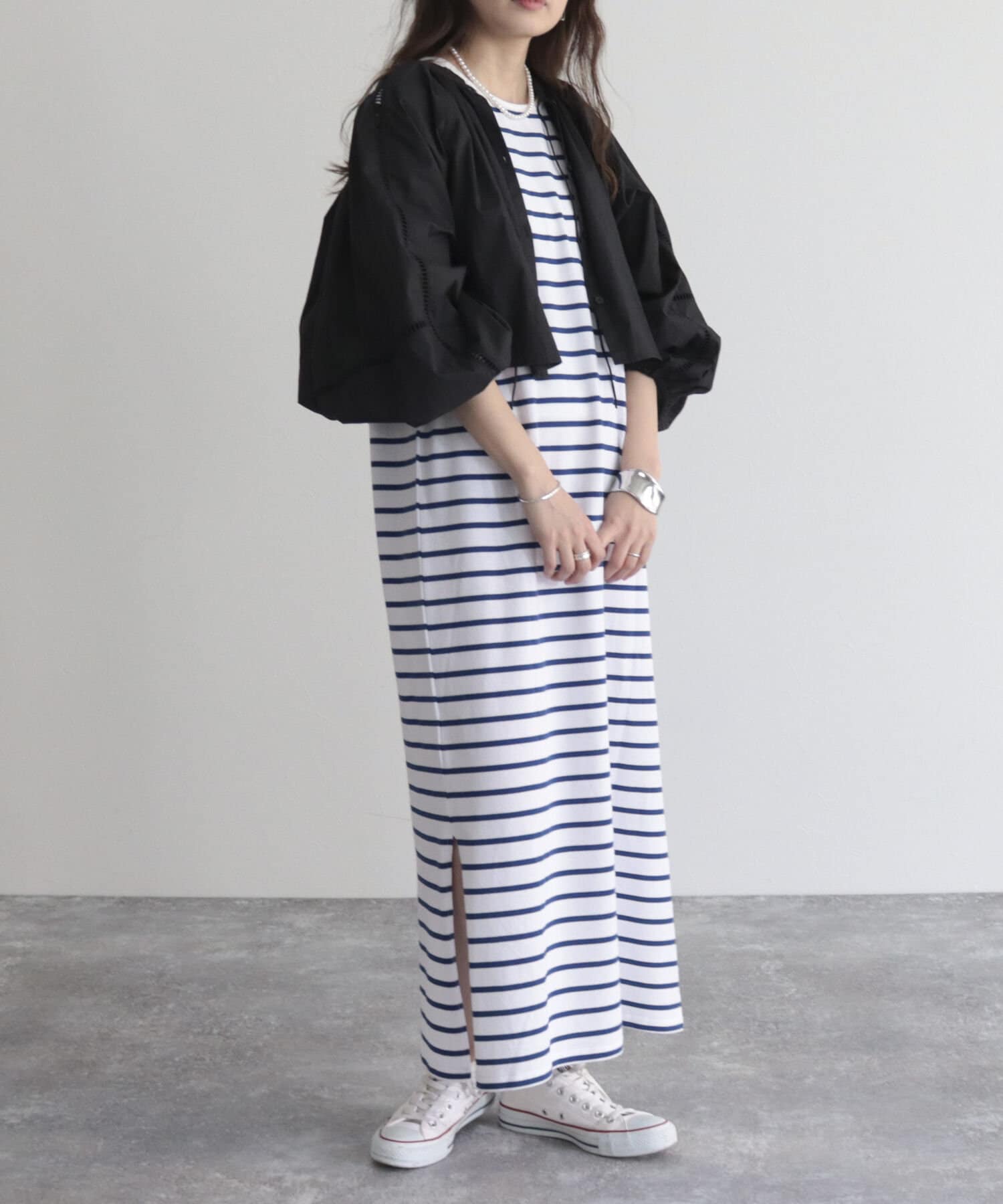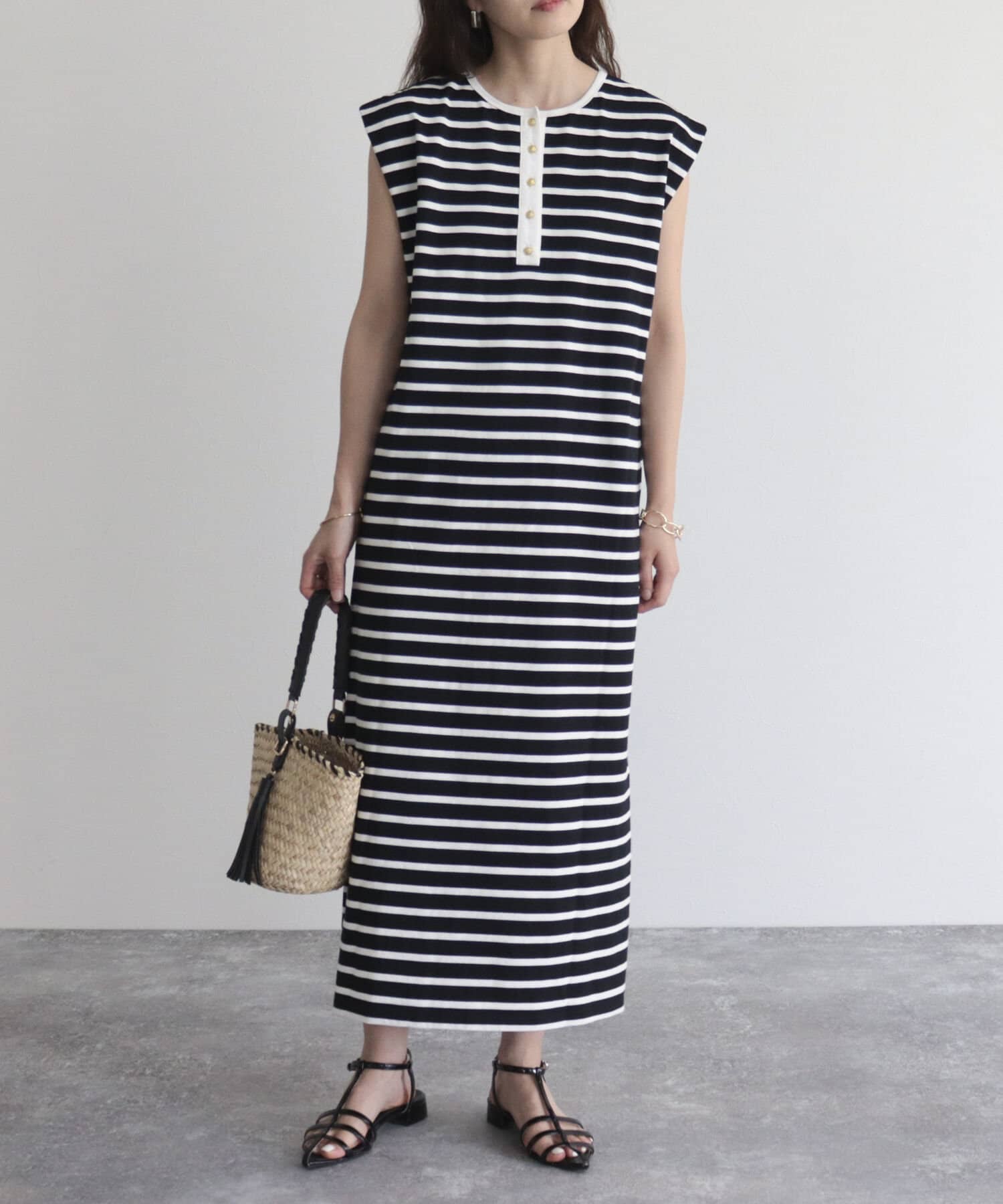 ・両前なので着回しを楽しめるカットソー素材のボーダーワンピース