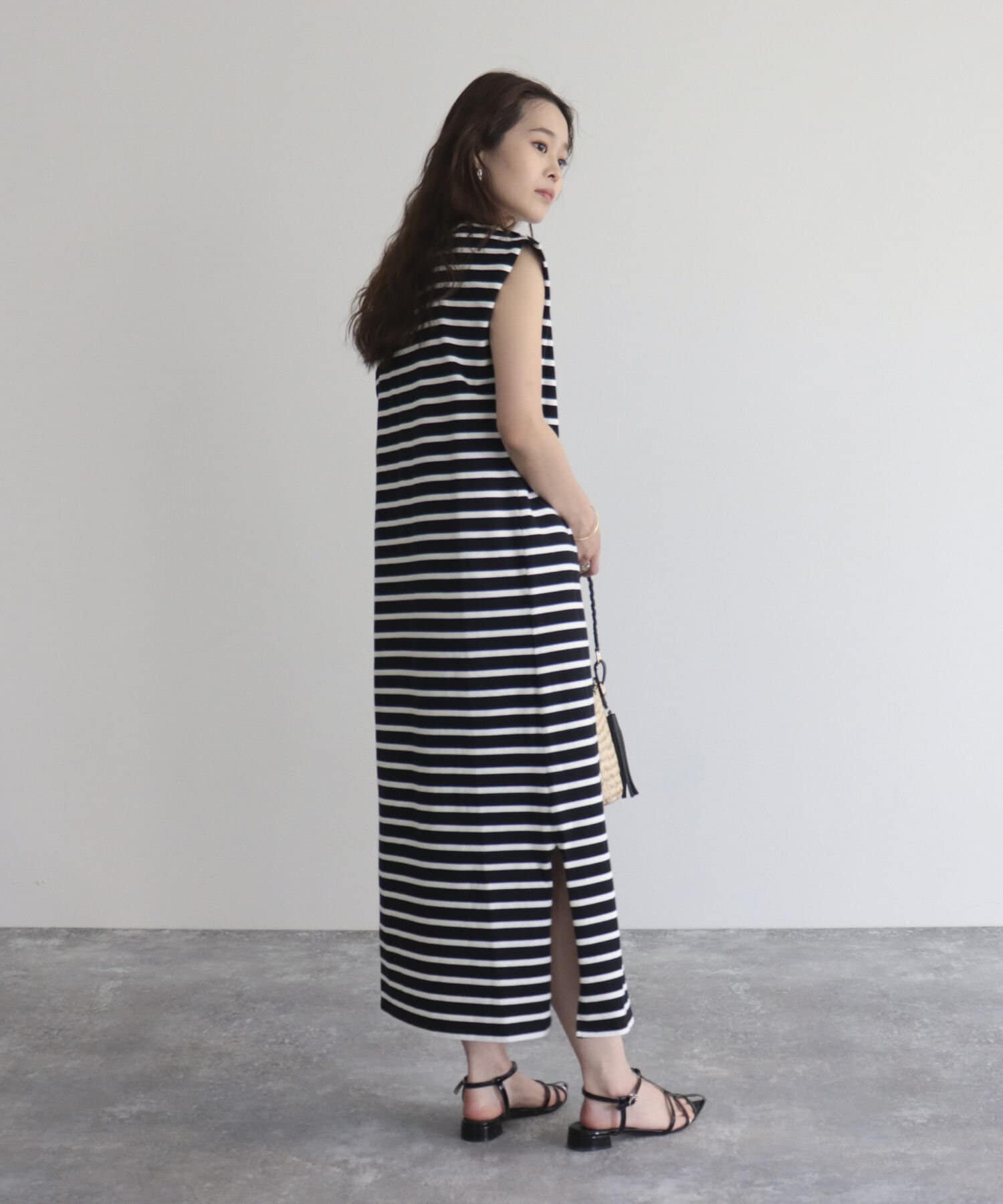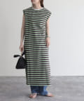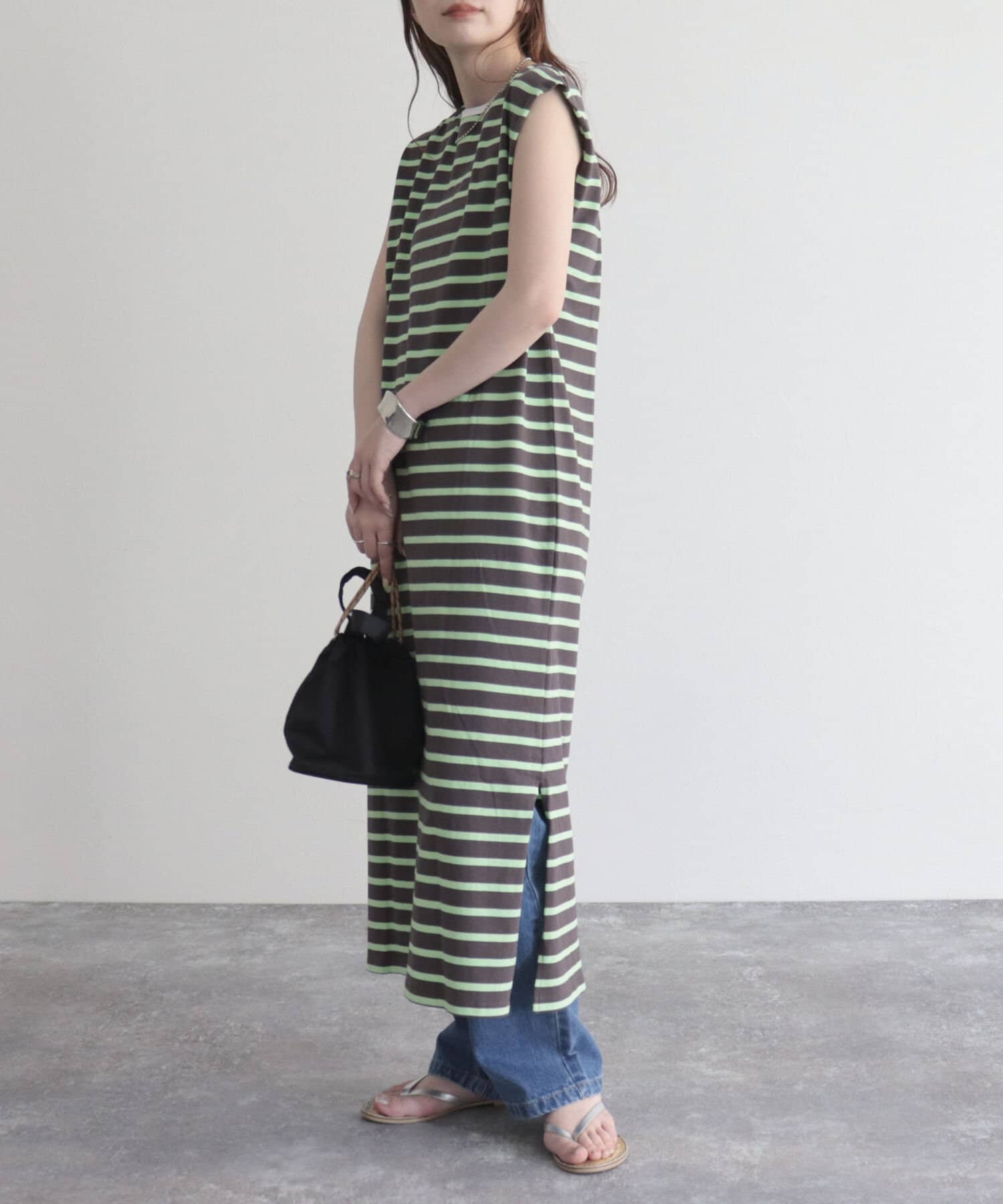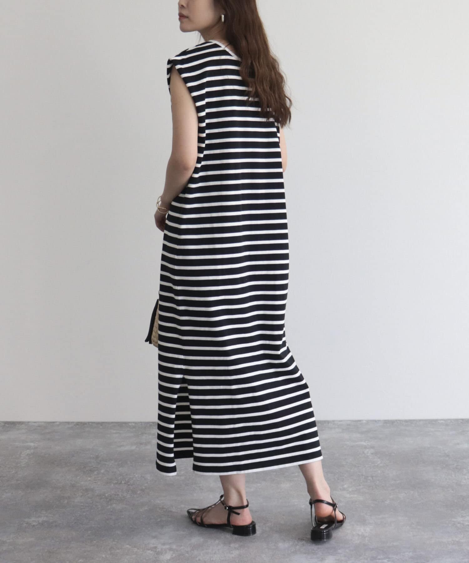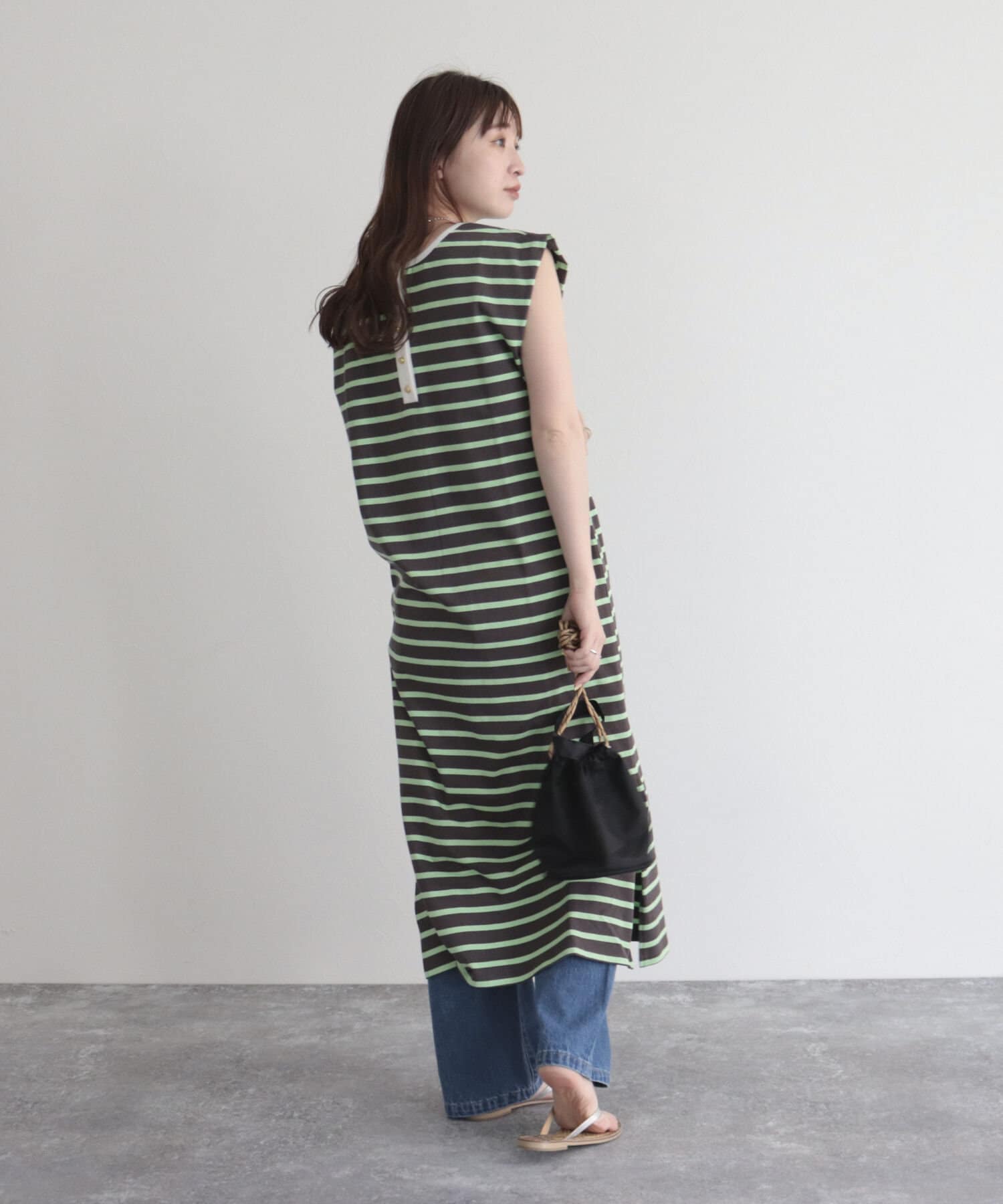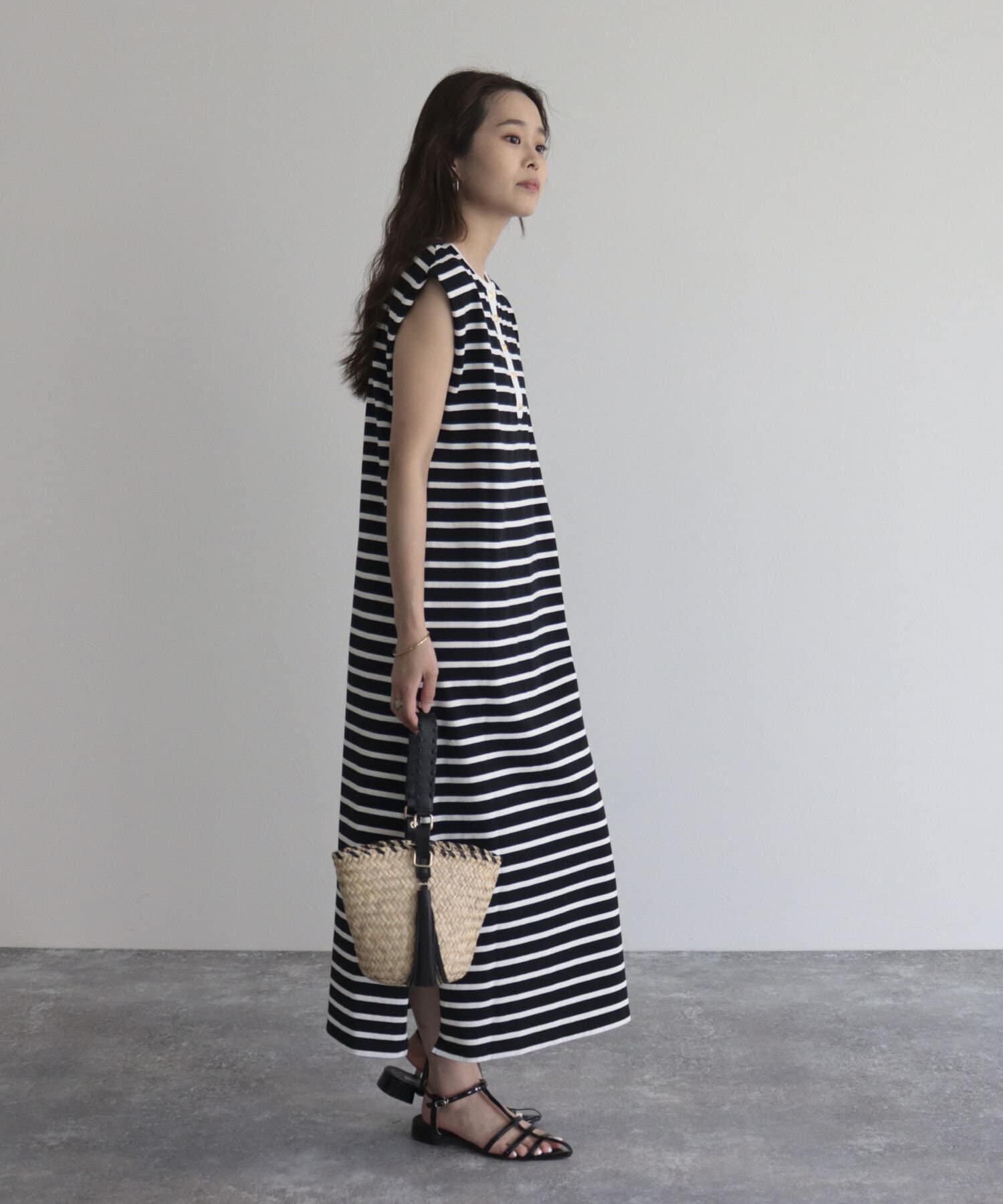 ・両前なので着回しを楽しめるカットソー素材のボーダーワンピース