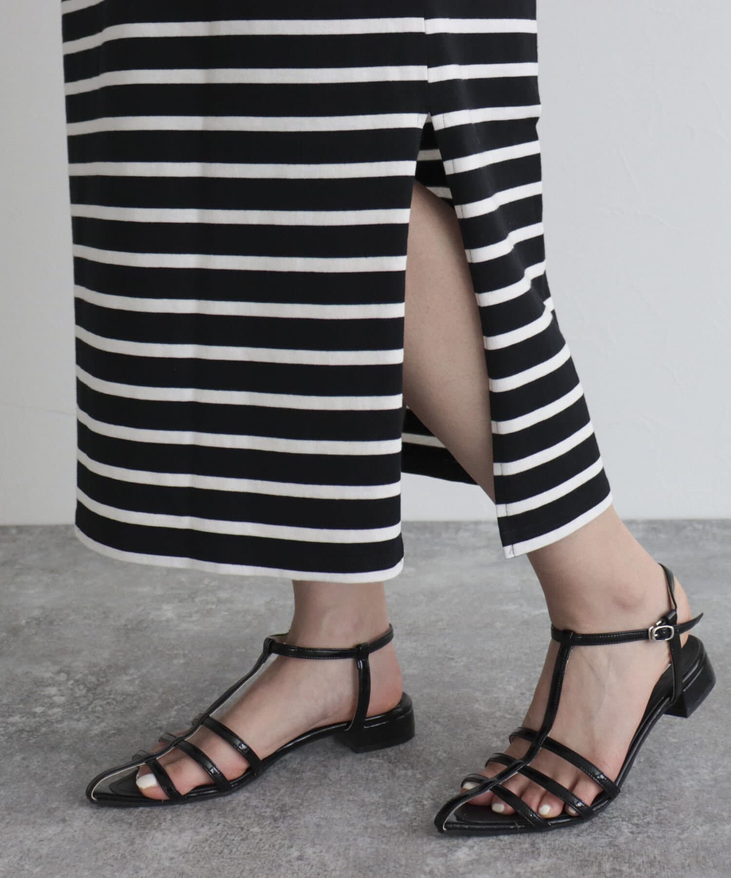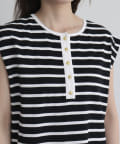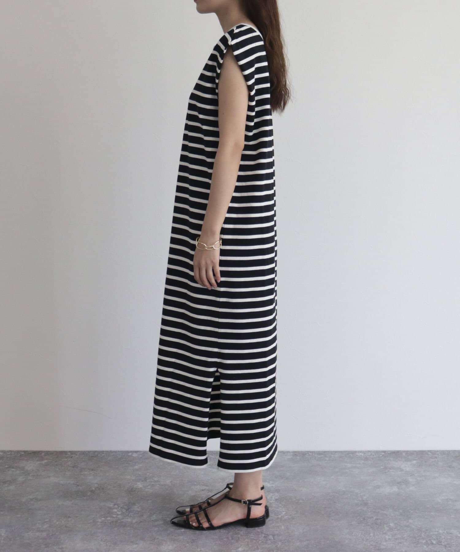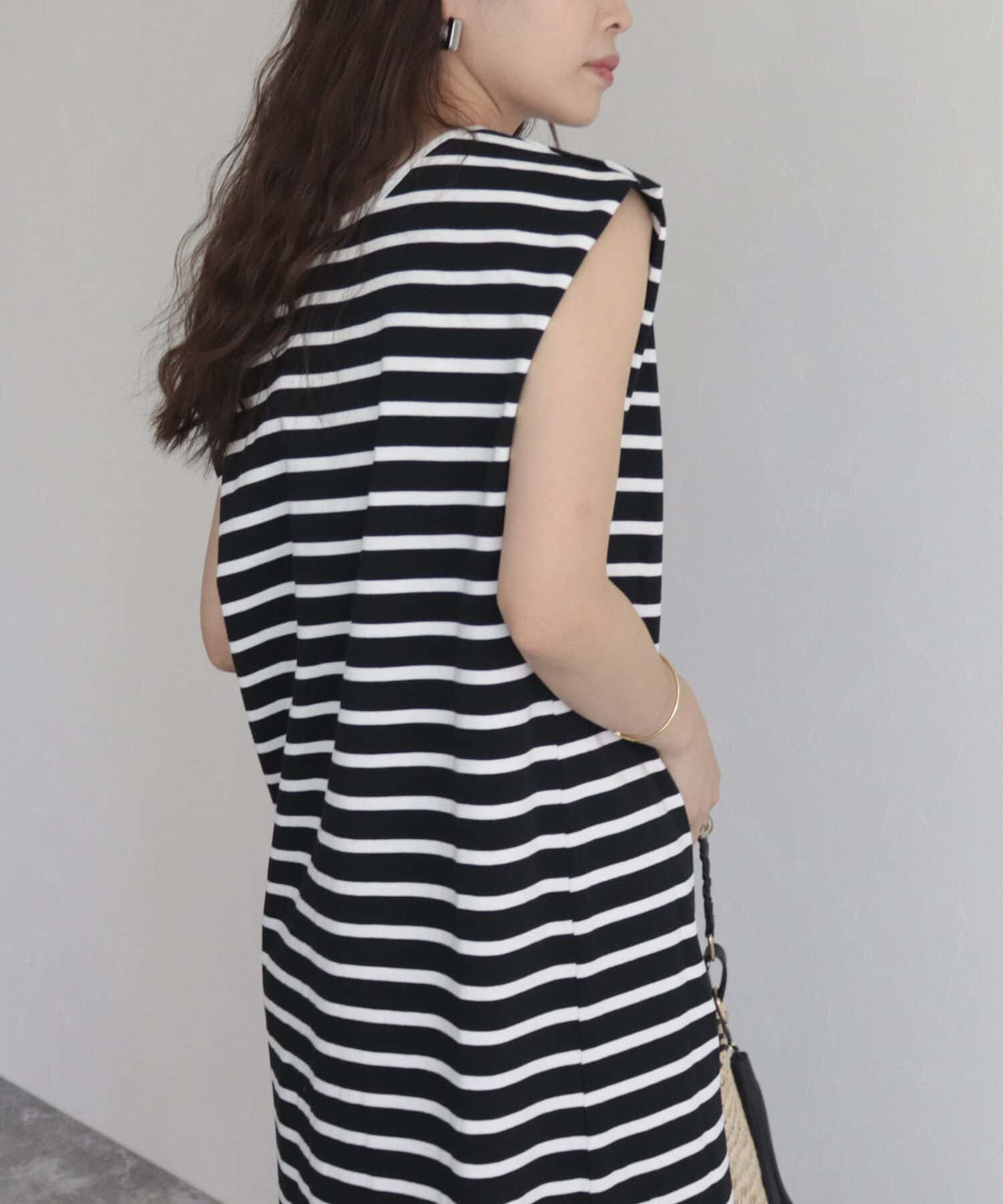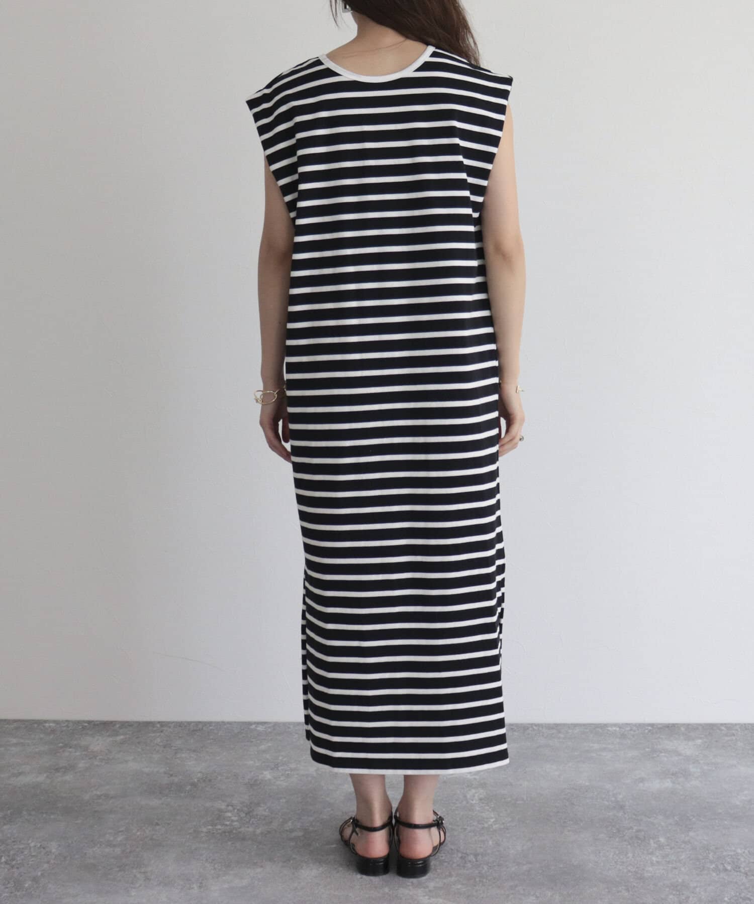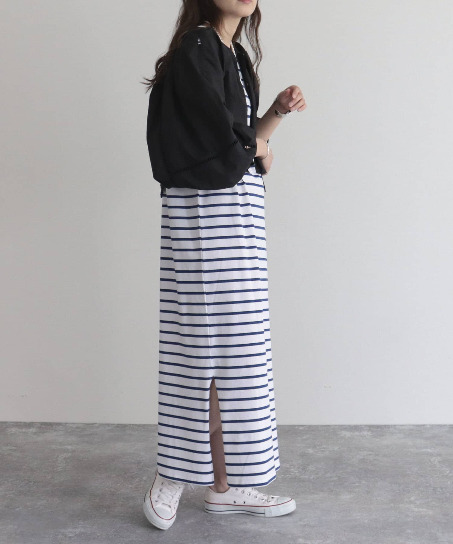 ・両前なので着回しを楽しめるカットソー素材のボーダーワンピース