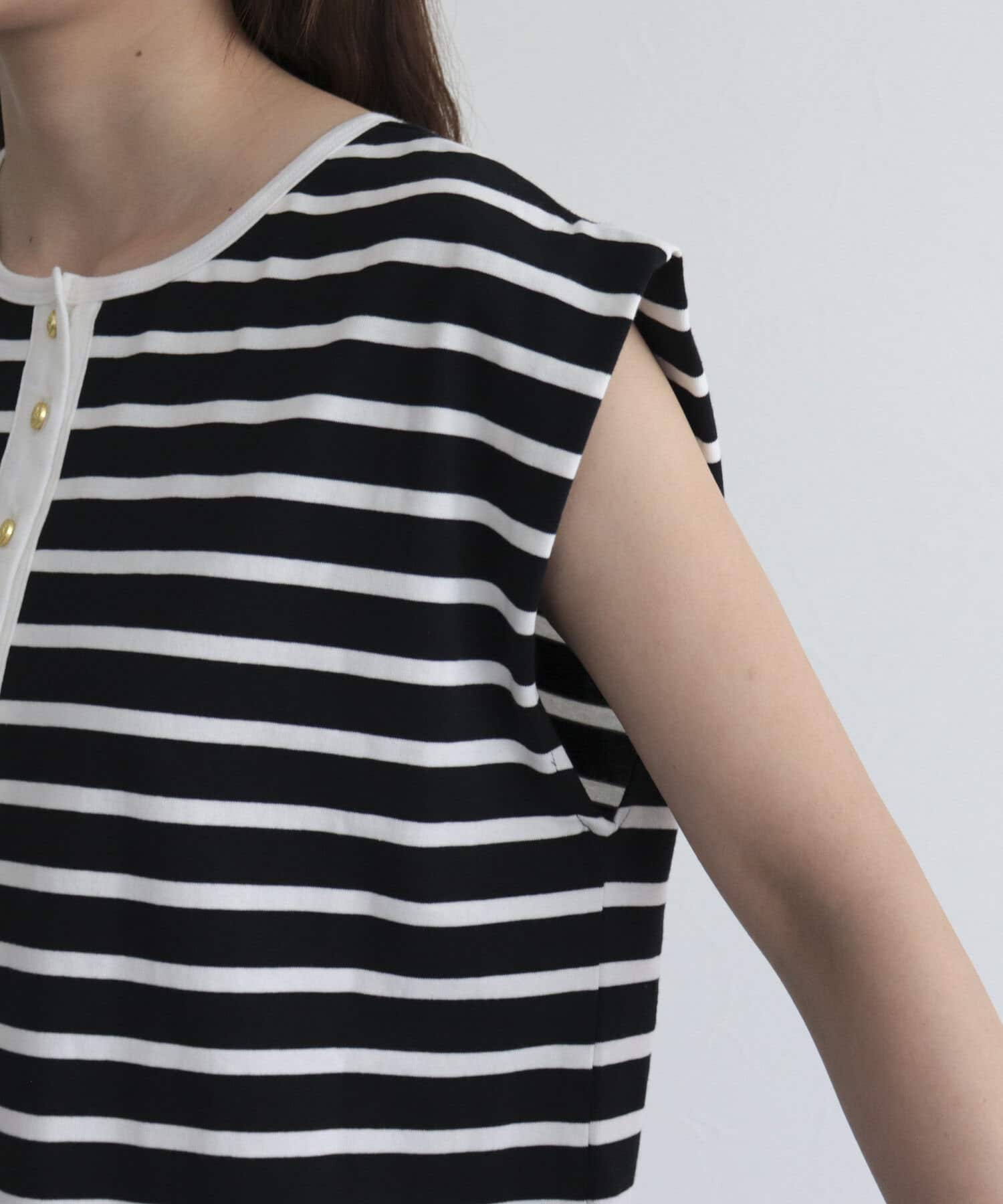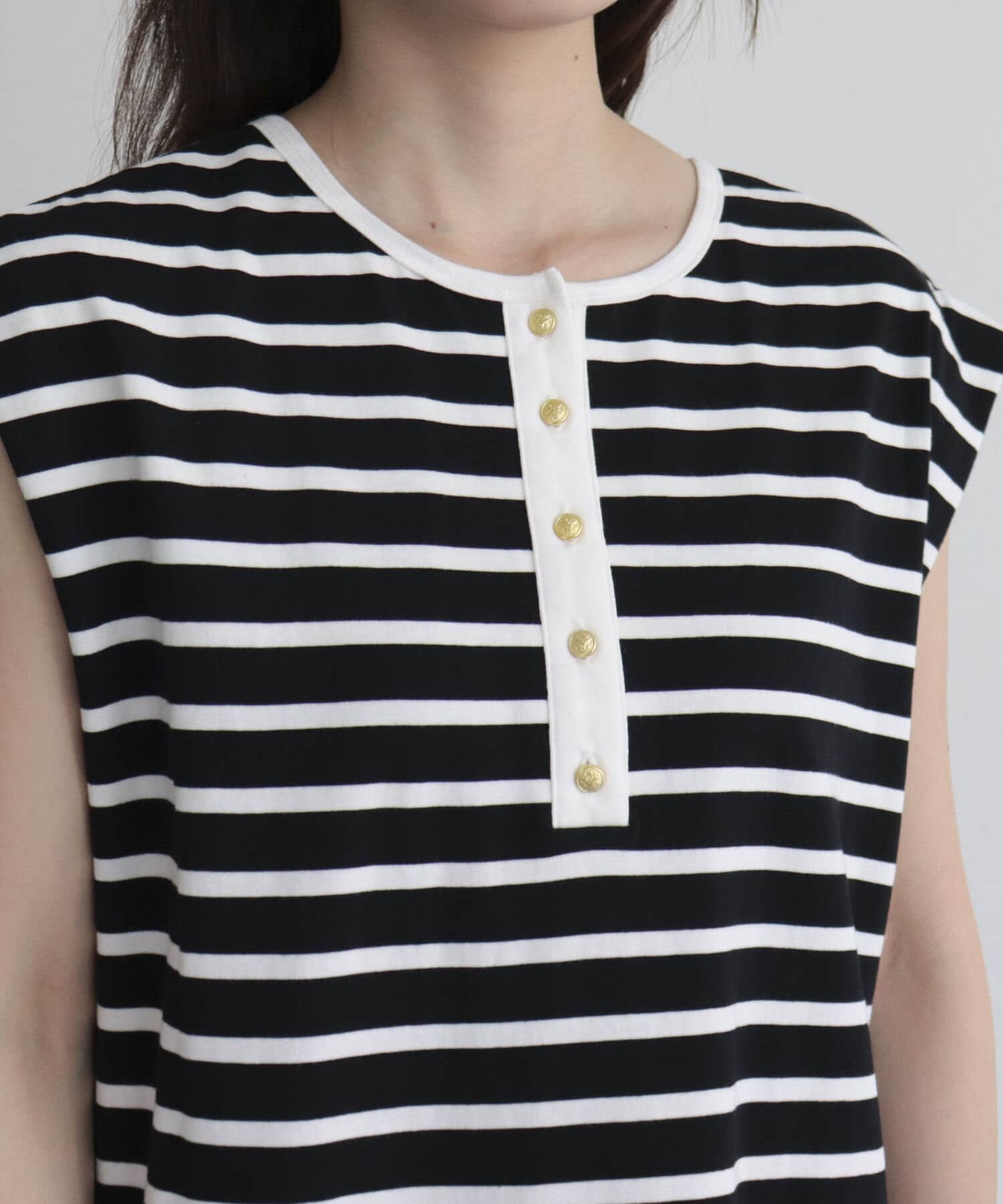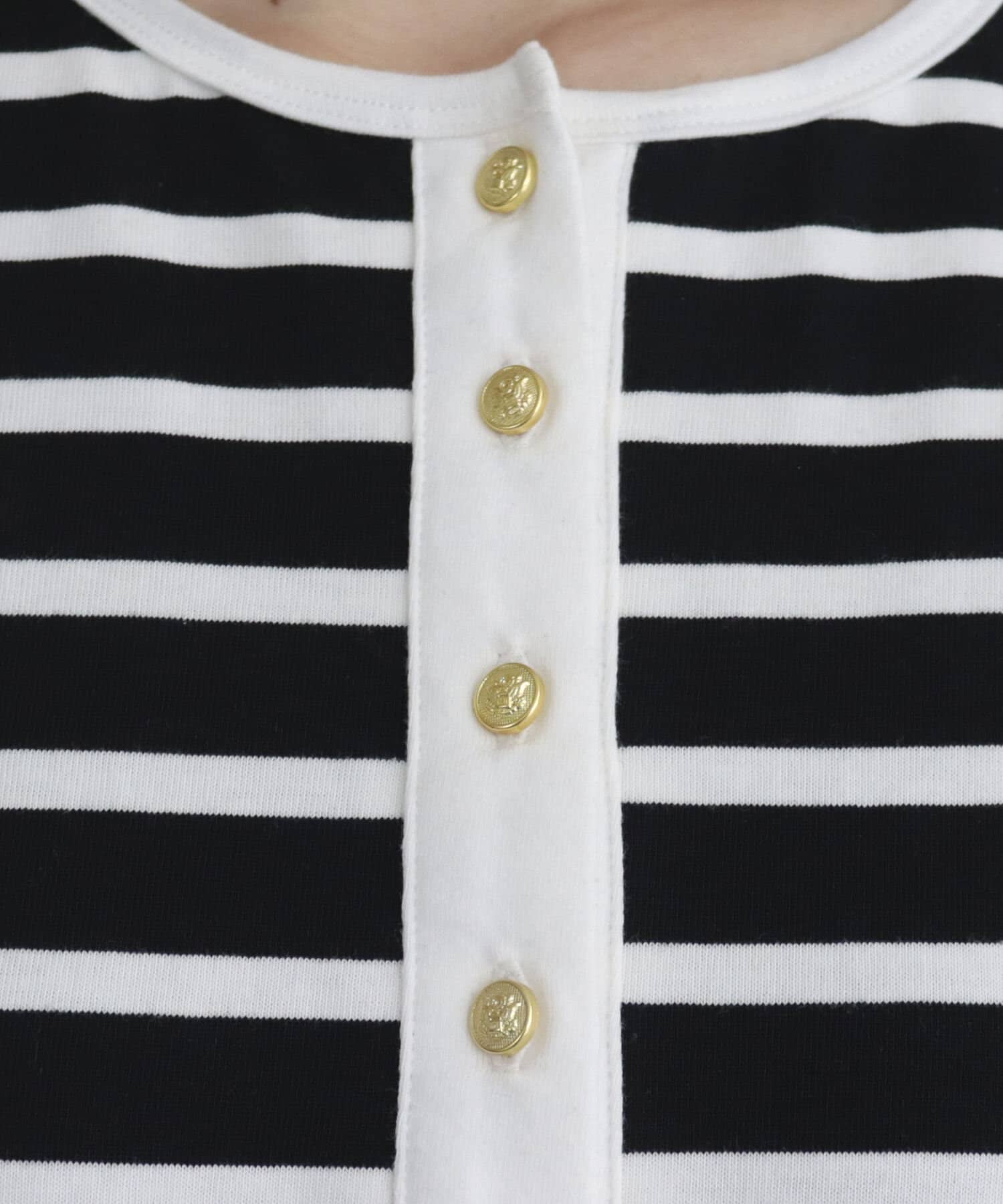 ・カジュアルに見えやすいボーダーですが、金のボタンデザインが大人カジュアルな印象に仕上げでくれます