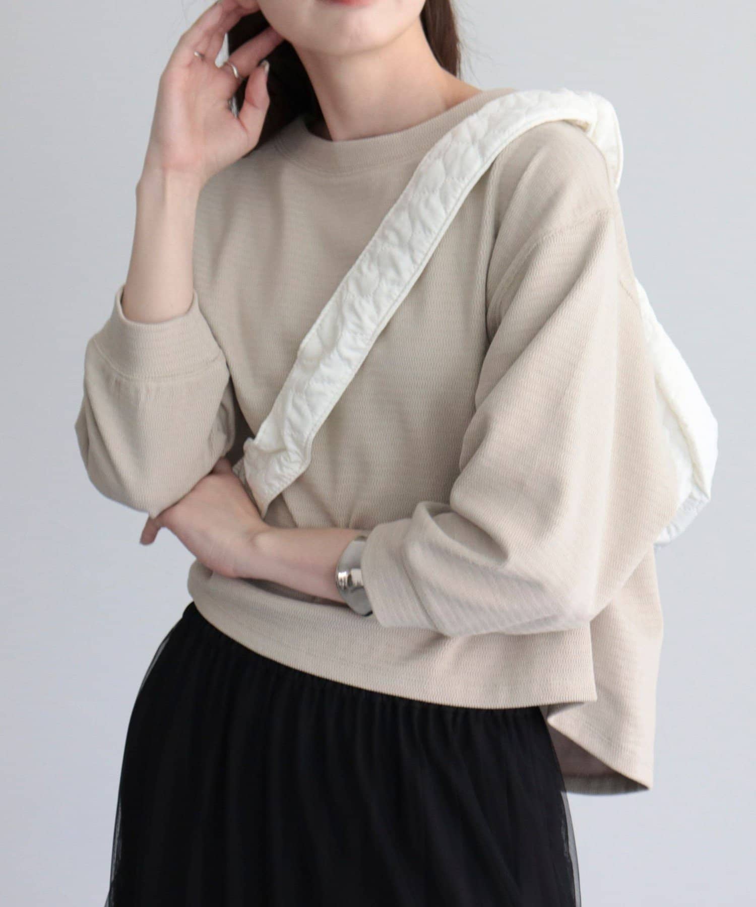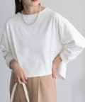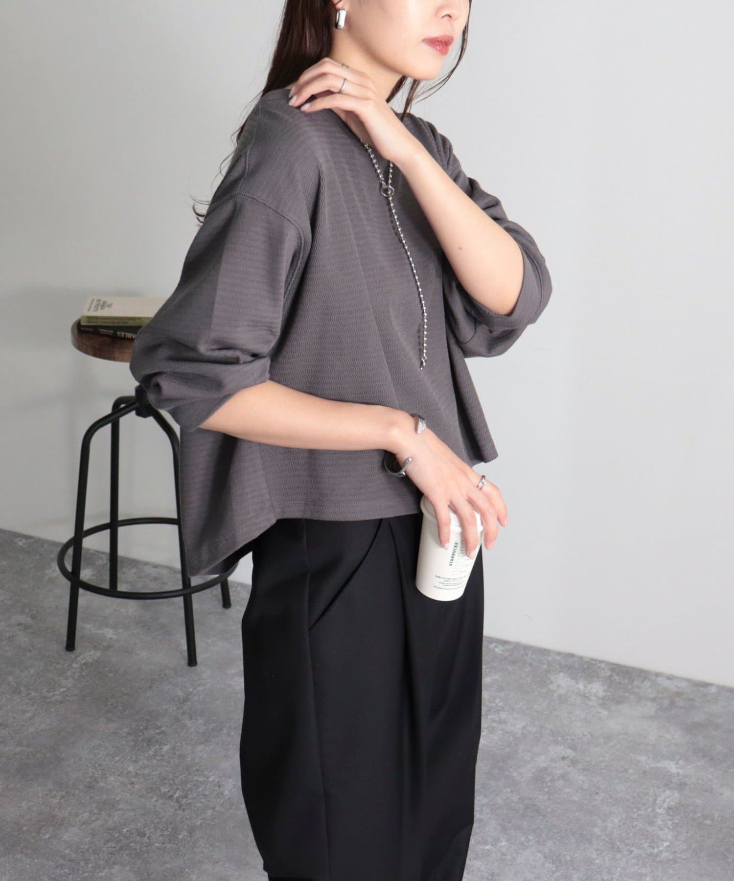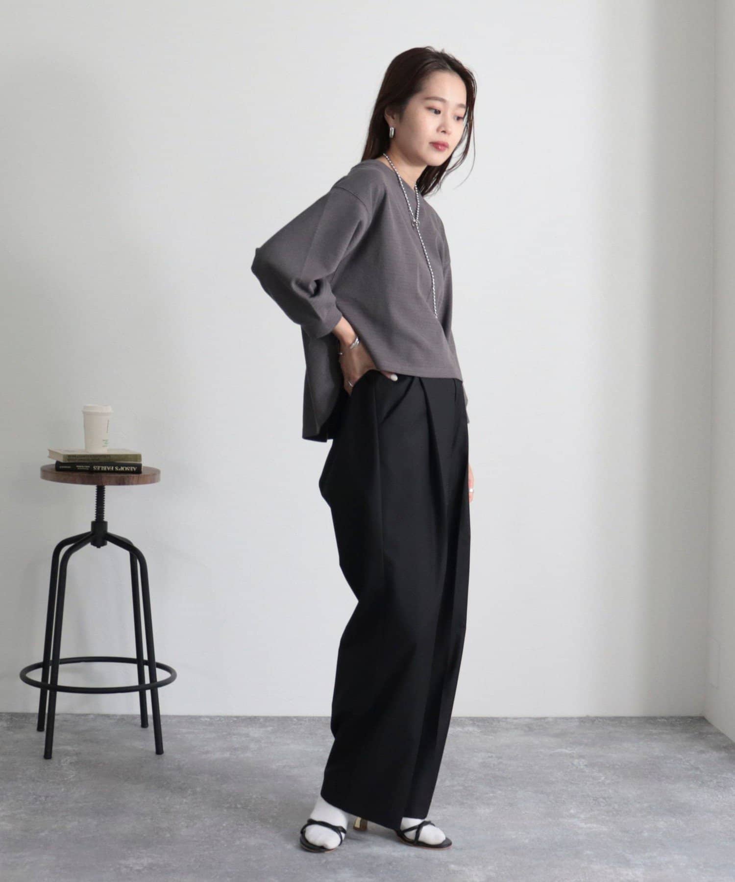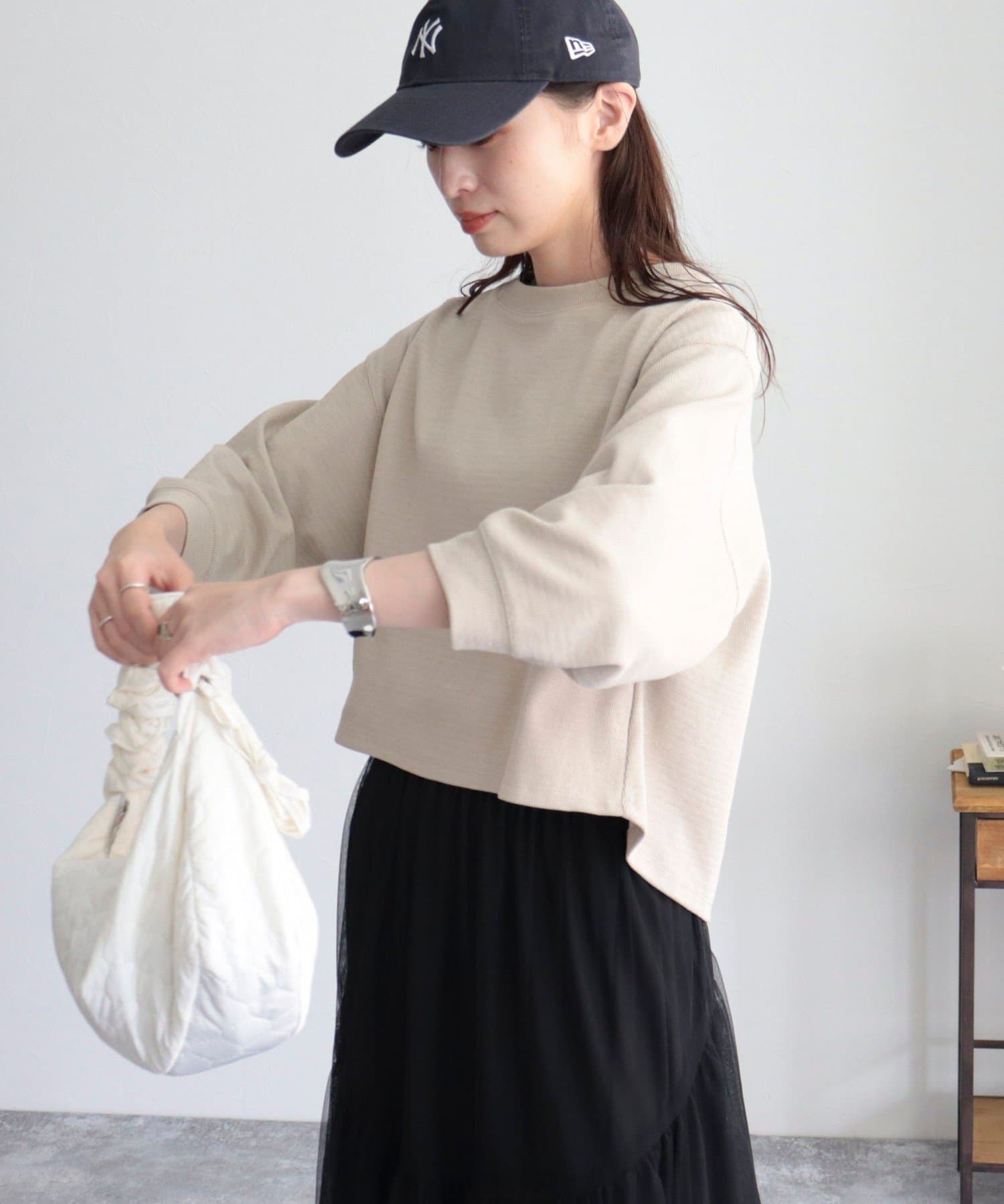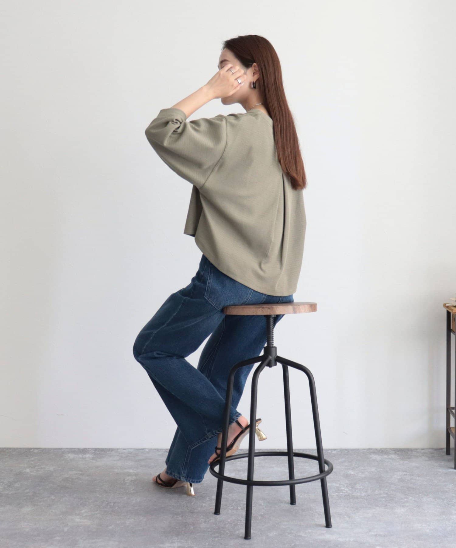 ・立体感のあるシルエットで身体のラインを拾いすぎないほか、ゆったりとした袖は二の腕のカバーにも◎