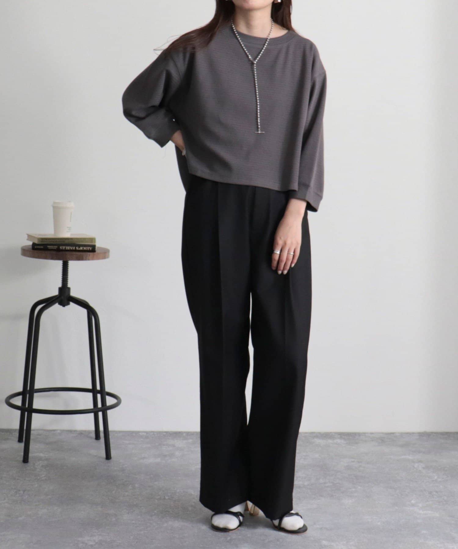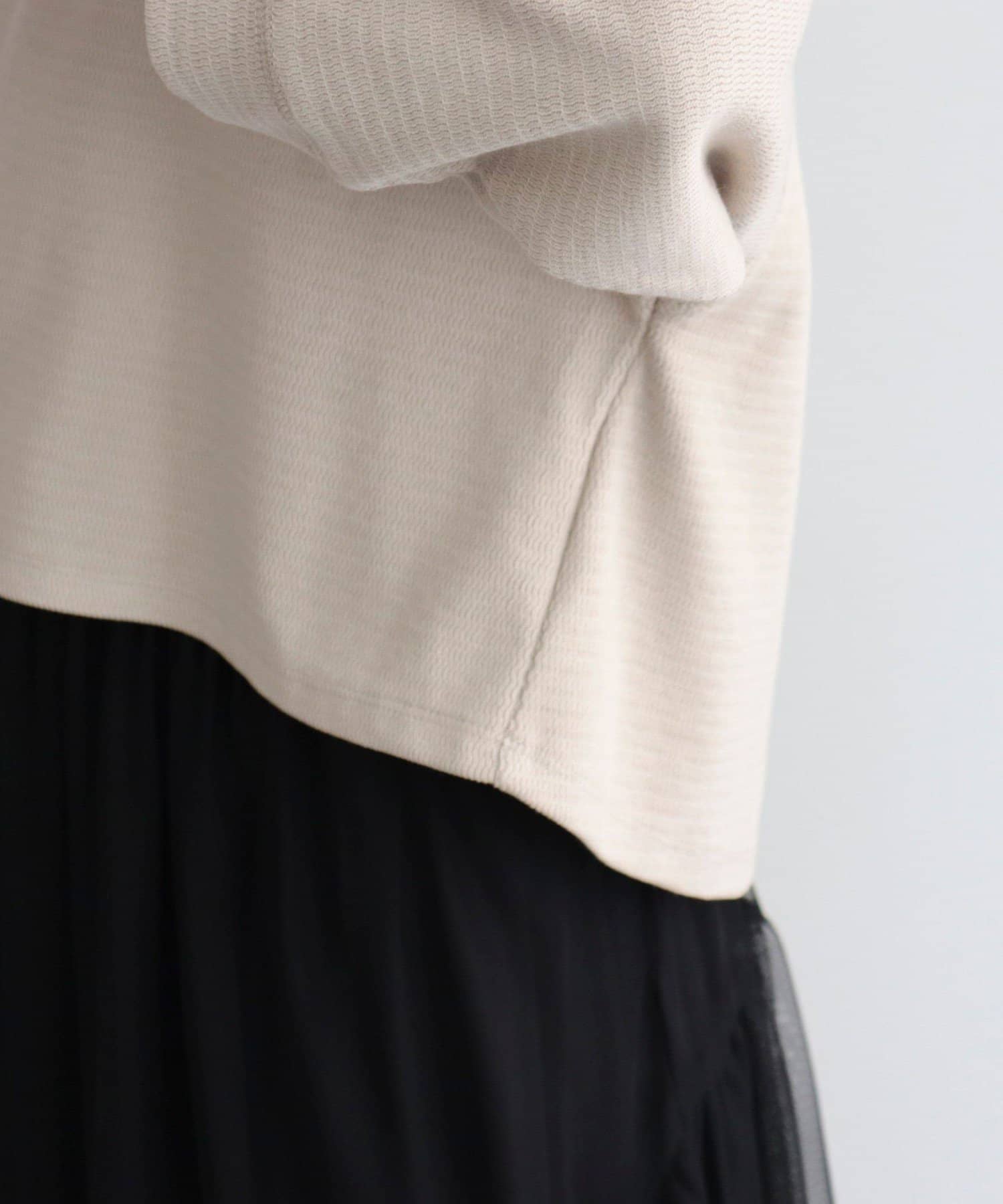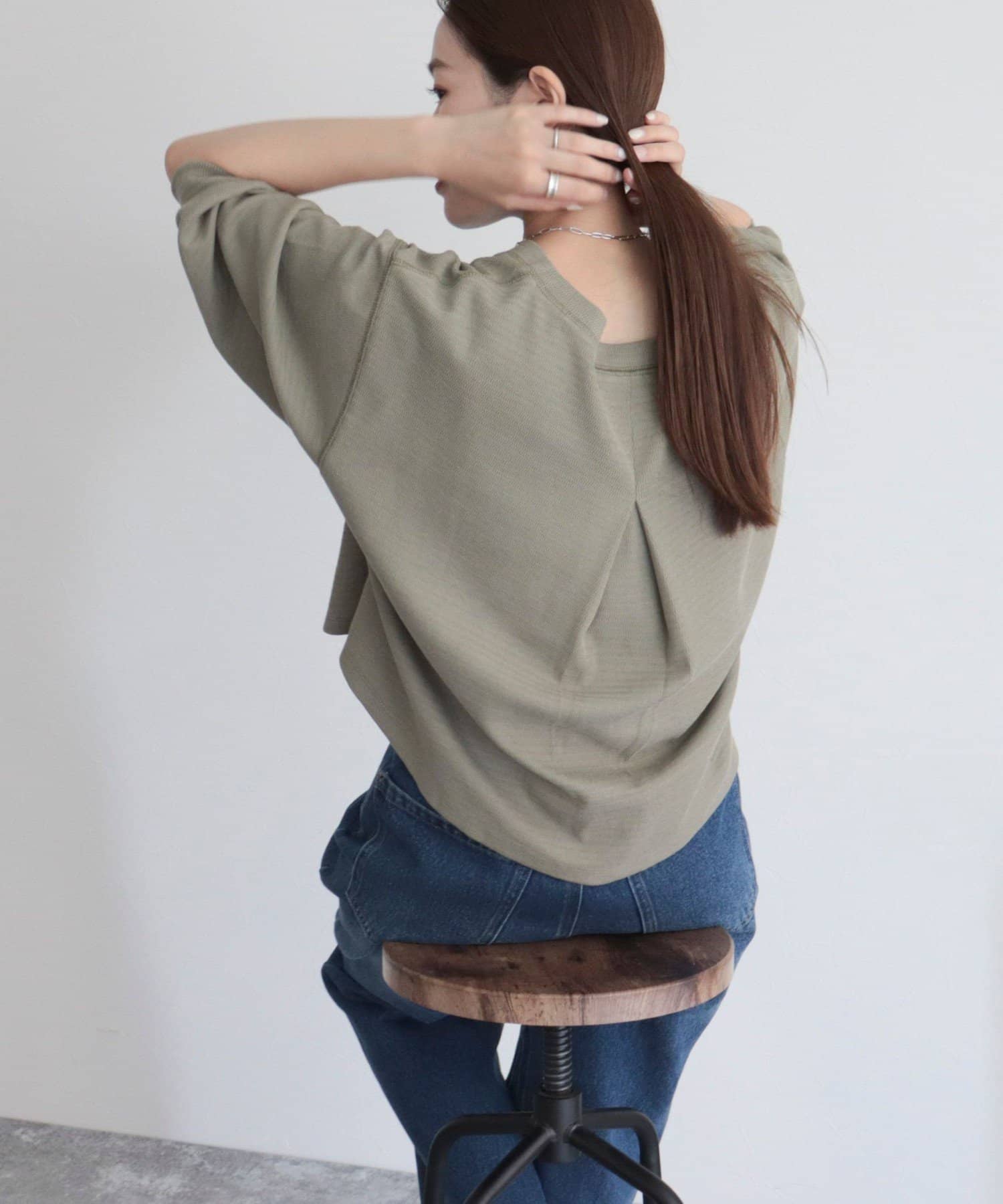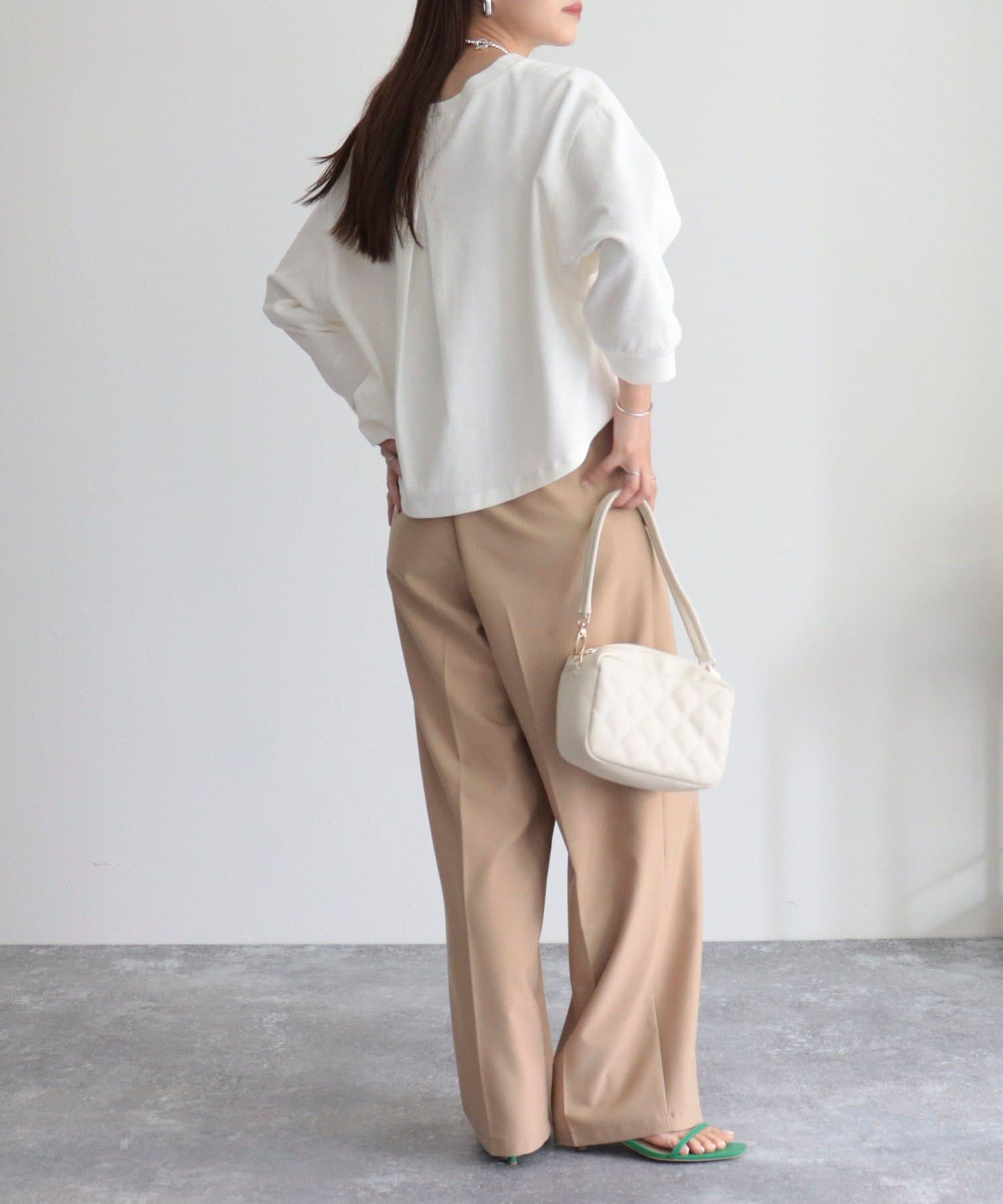 ・立体感のあるシルエットで身体のラインを拾いすぎないほか、ゆったりとした袖は二の腕のカバーにも◎