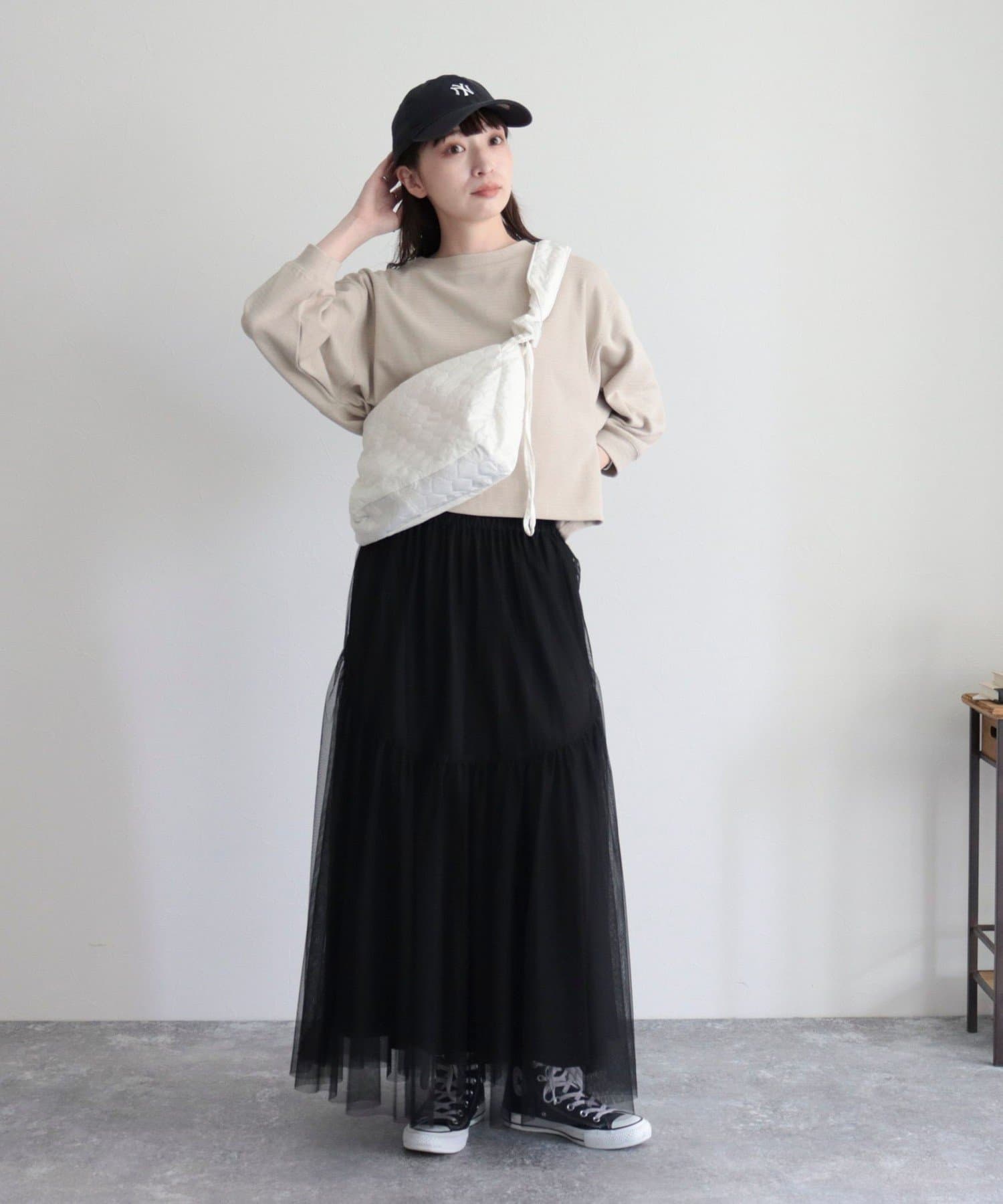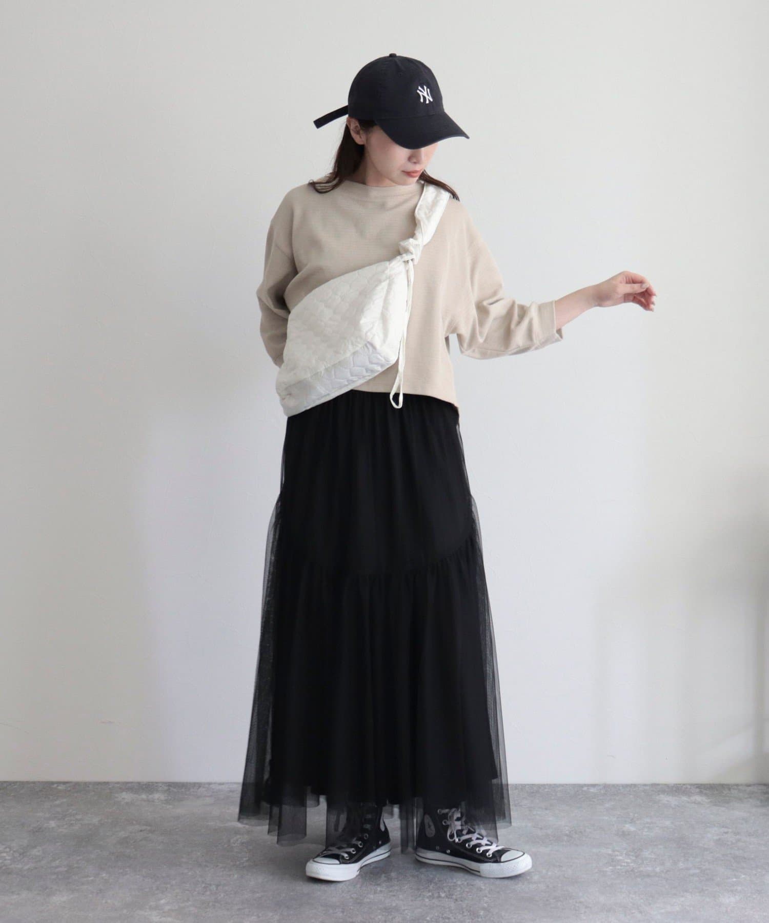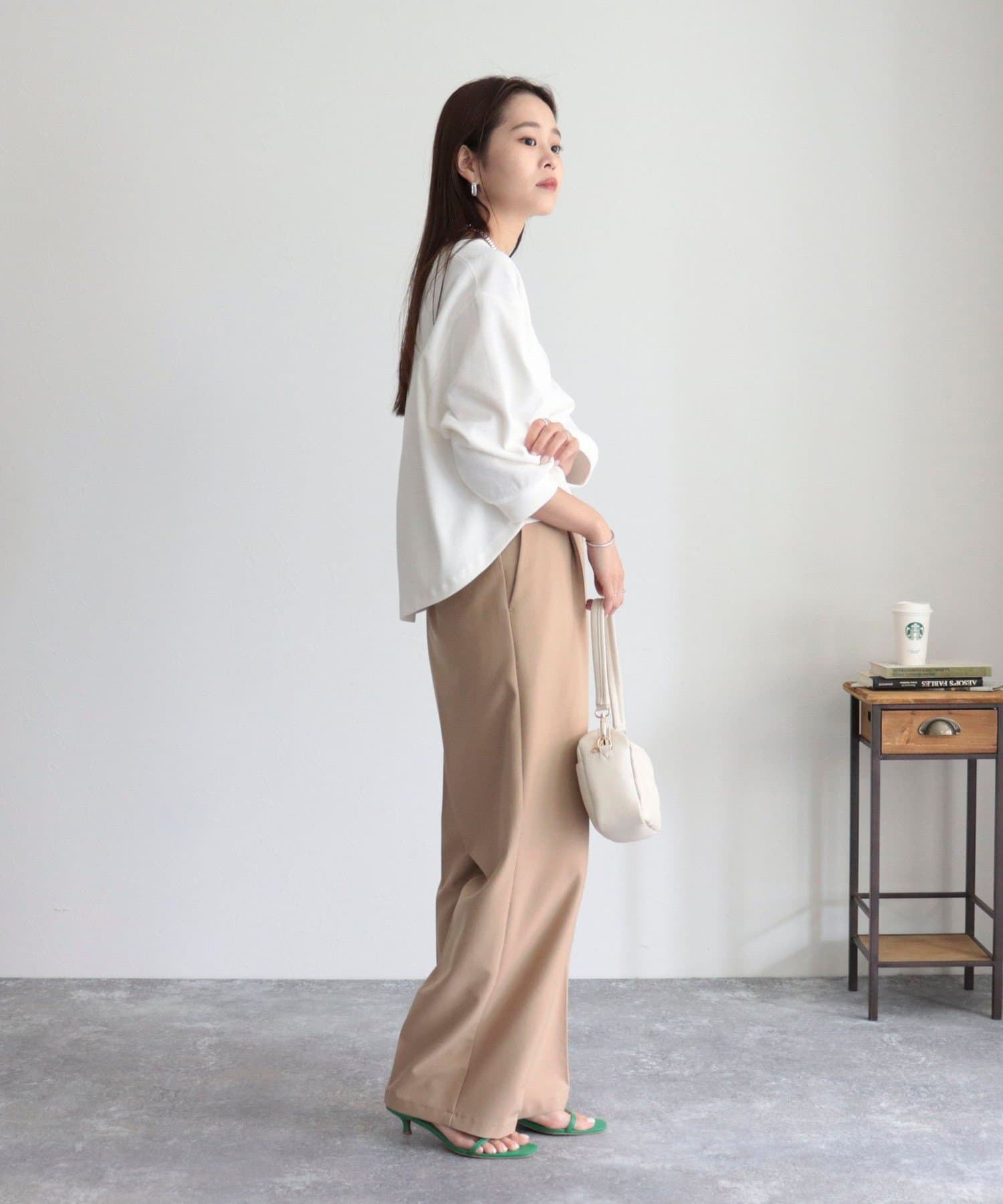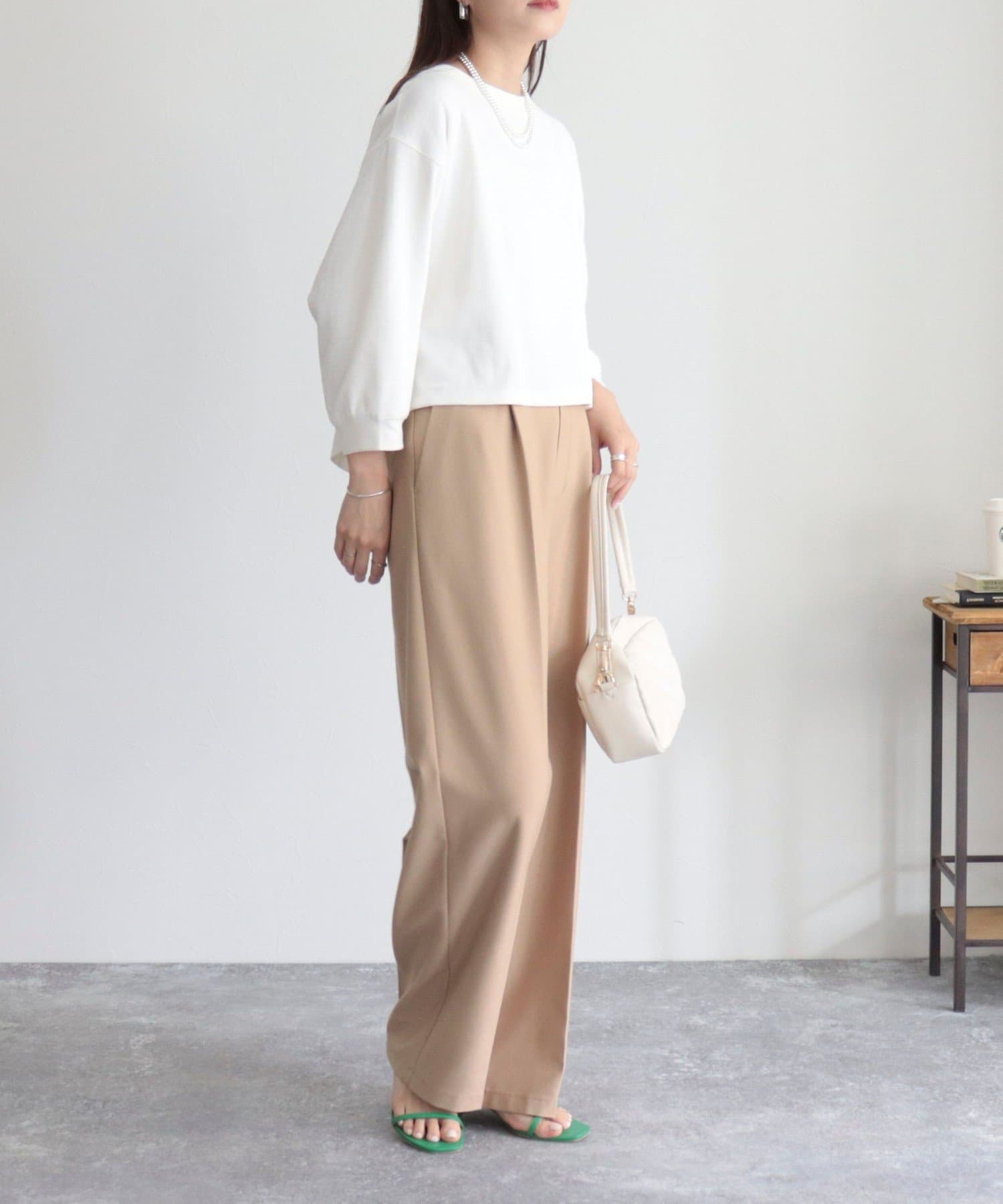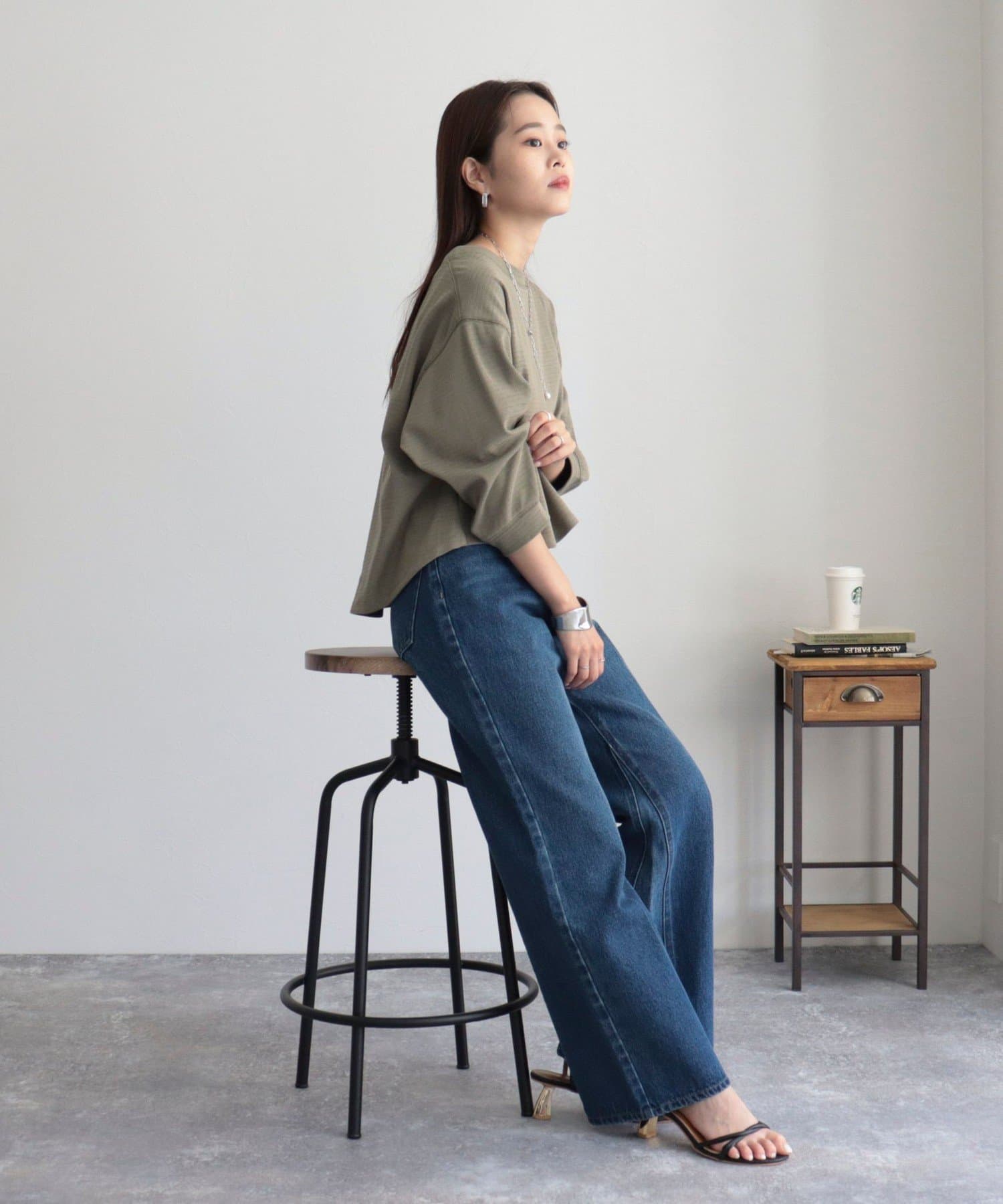 ・立体感のあるシルエットで身体のラインを拾いすぎないほか、ゆったりとした袖は二の腕のカバーにも◎