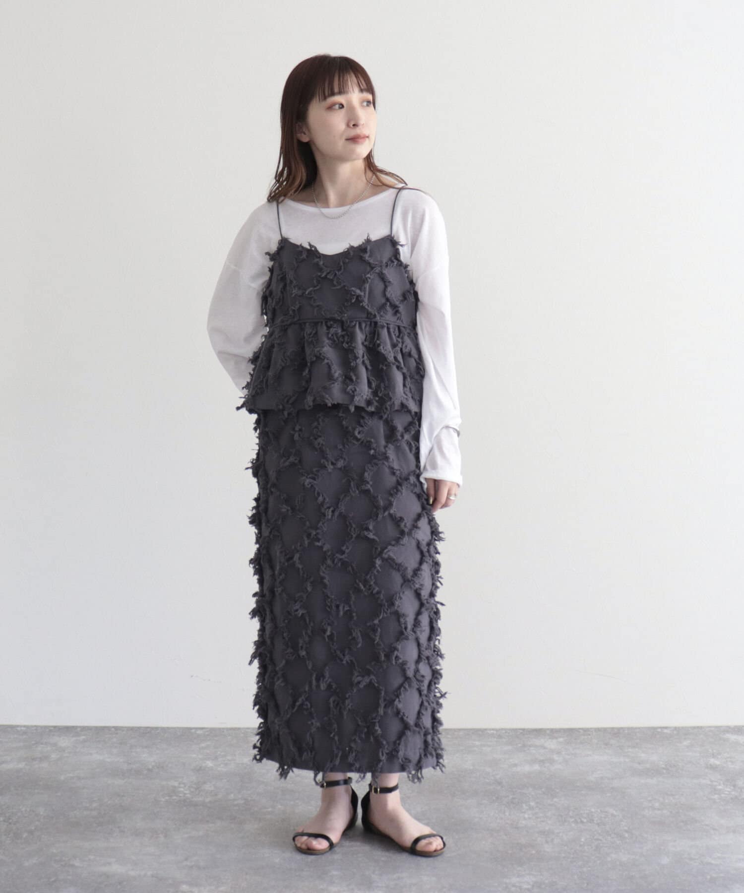 ・フリンジ2WAYビスチェ(3-0329-2-21-006)とセットアップで着用可能です