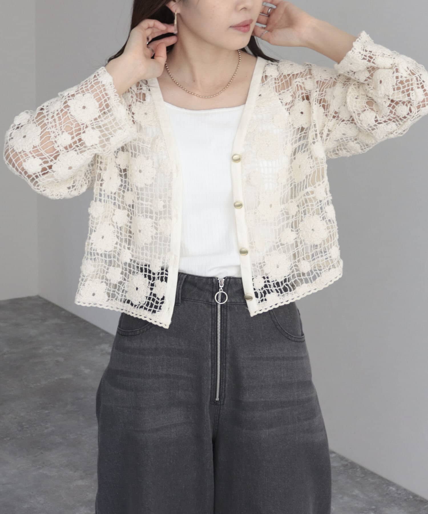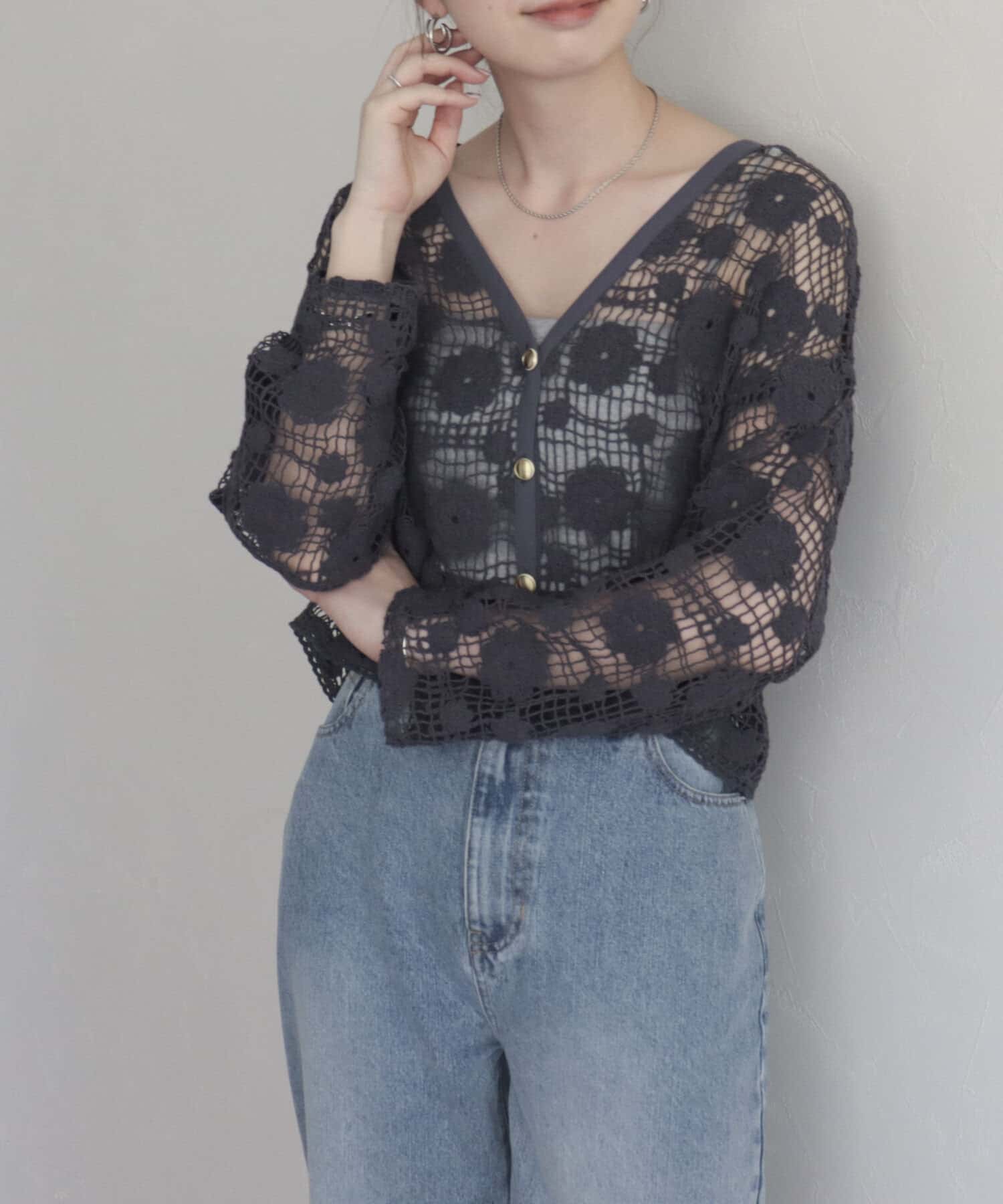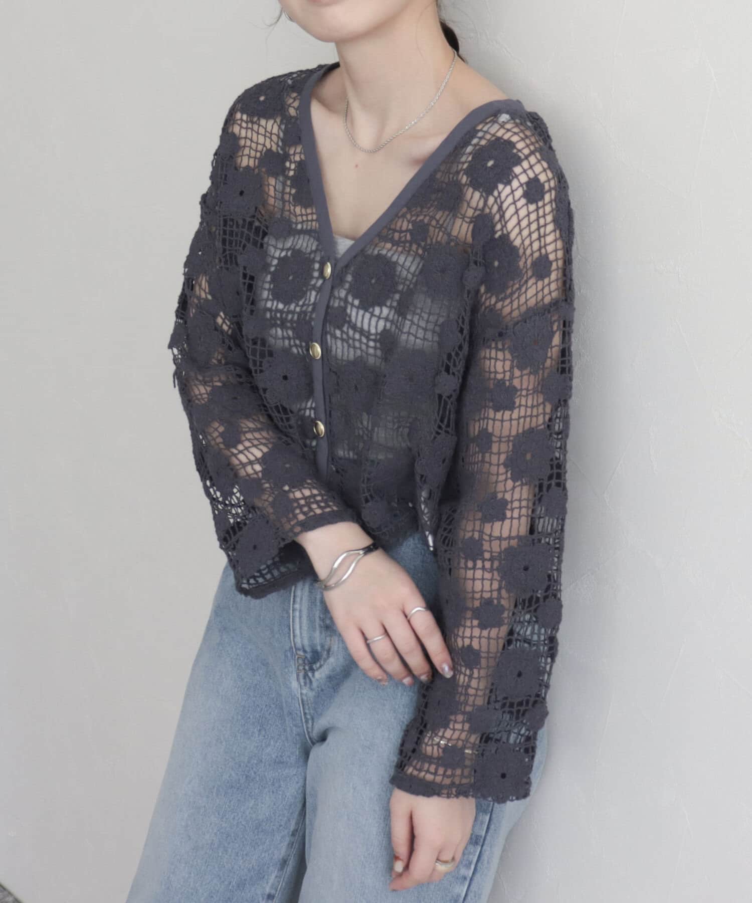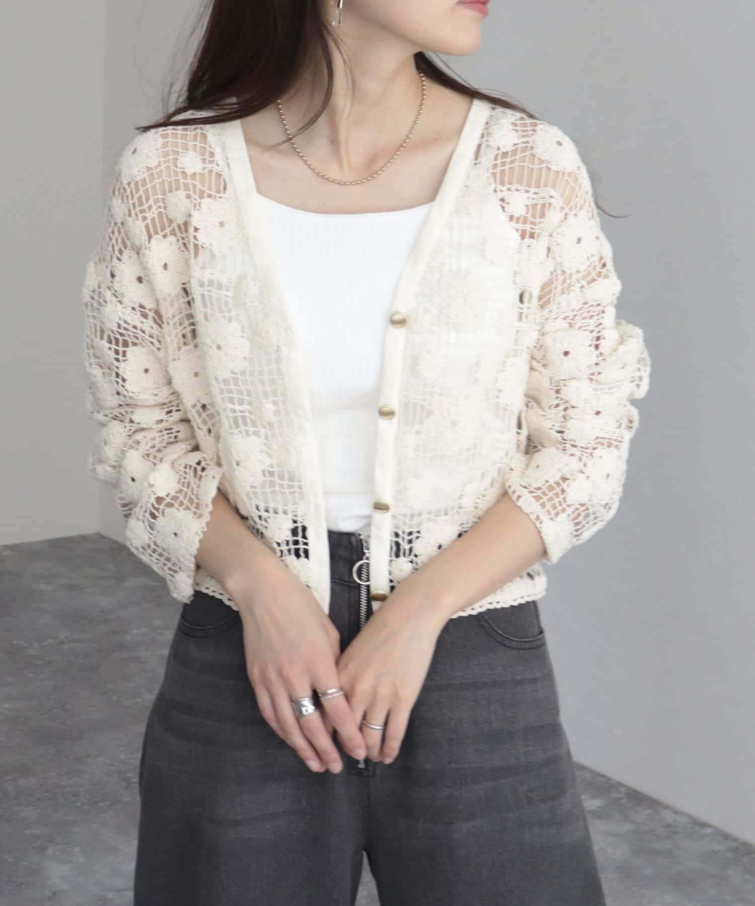 コットンレース前開きカーディガン