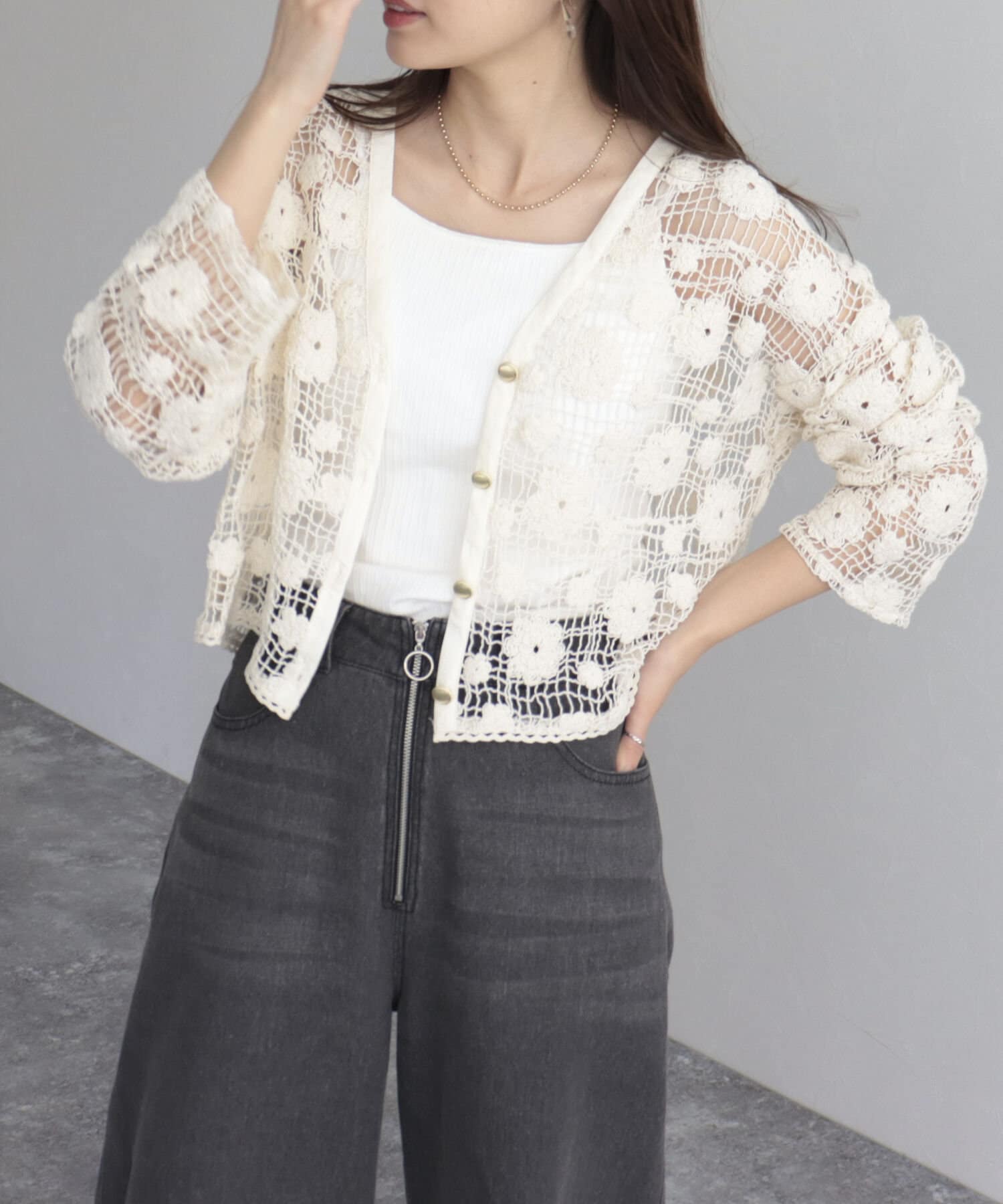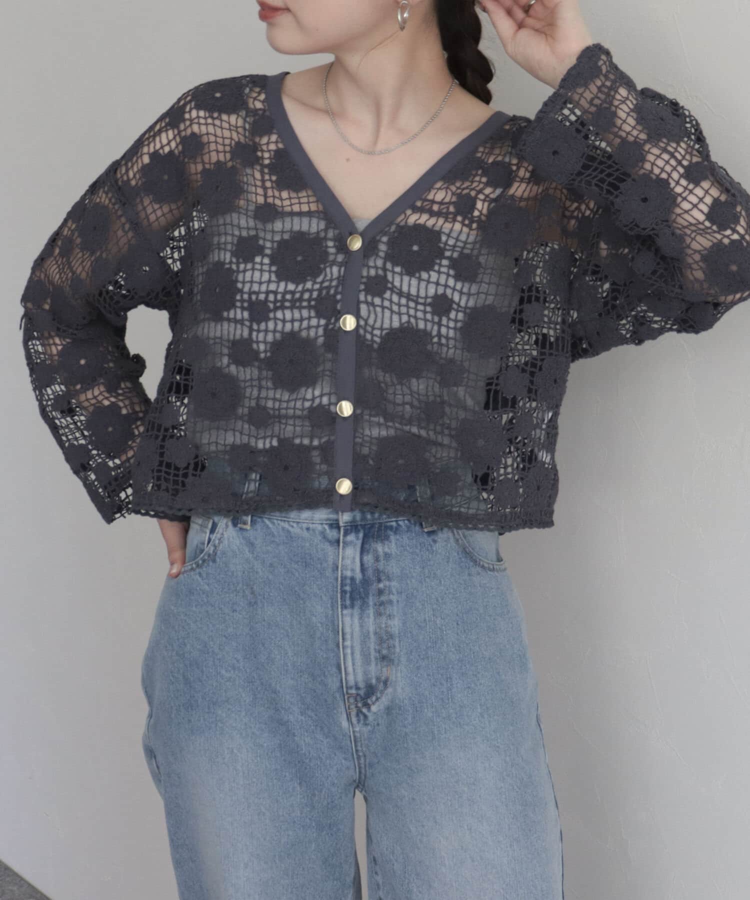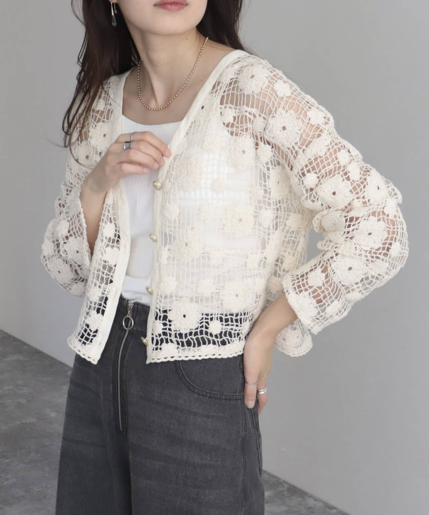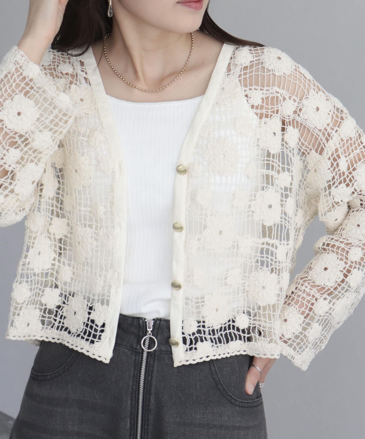 コットンレース前開きカーディガン
