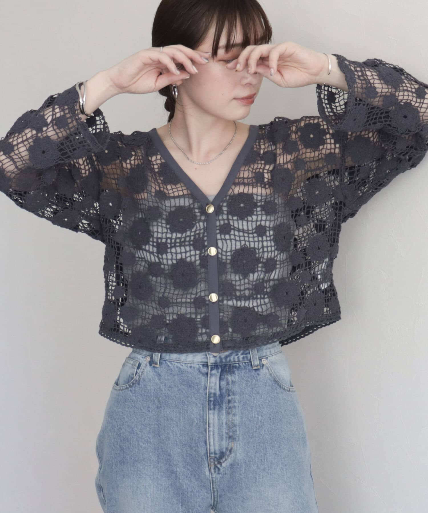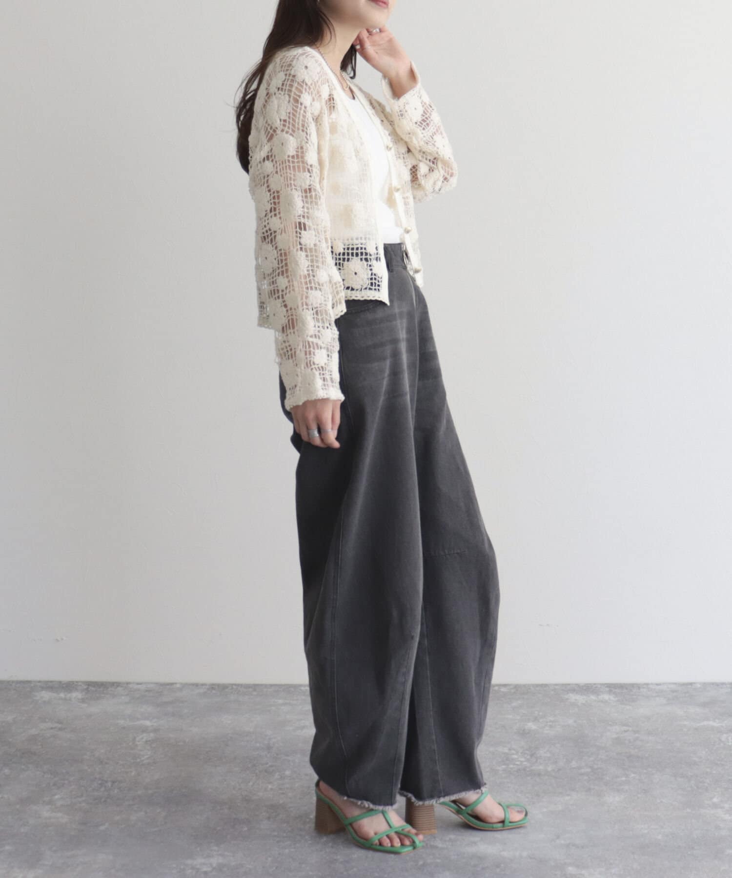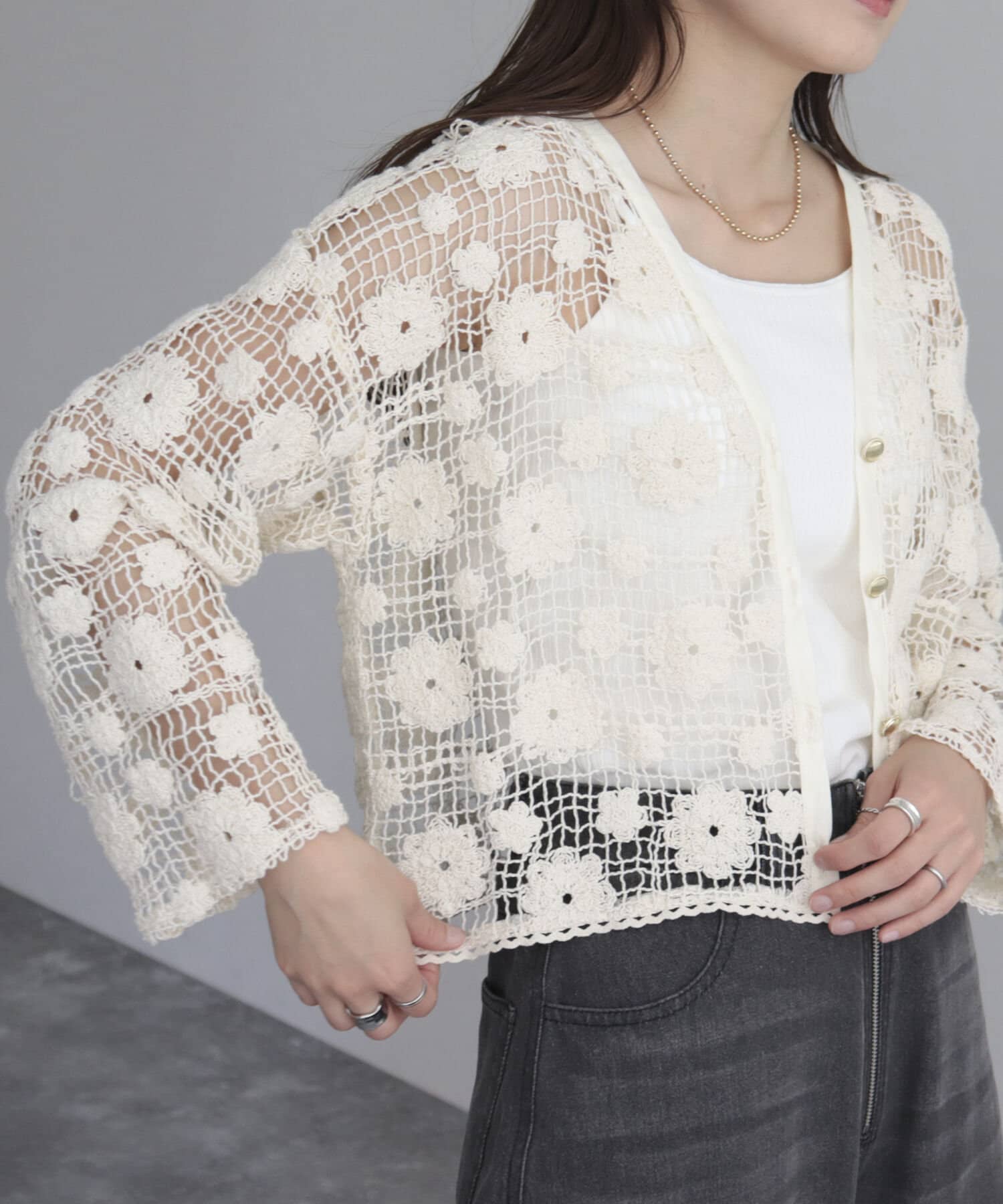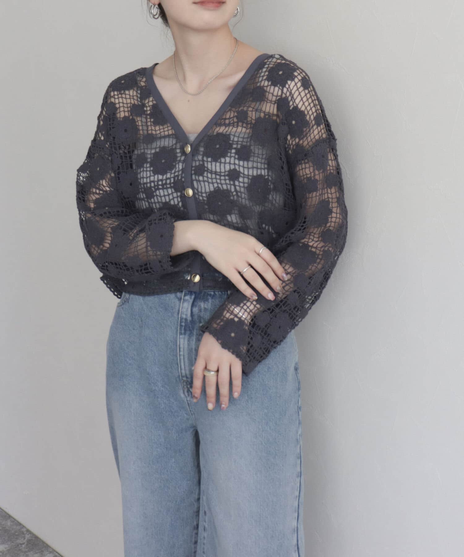コットンレース前開きカーディガン
