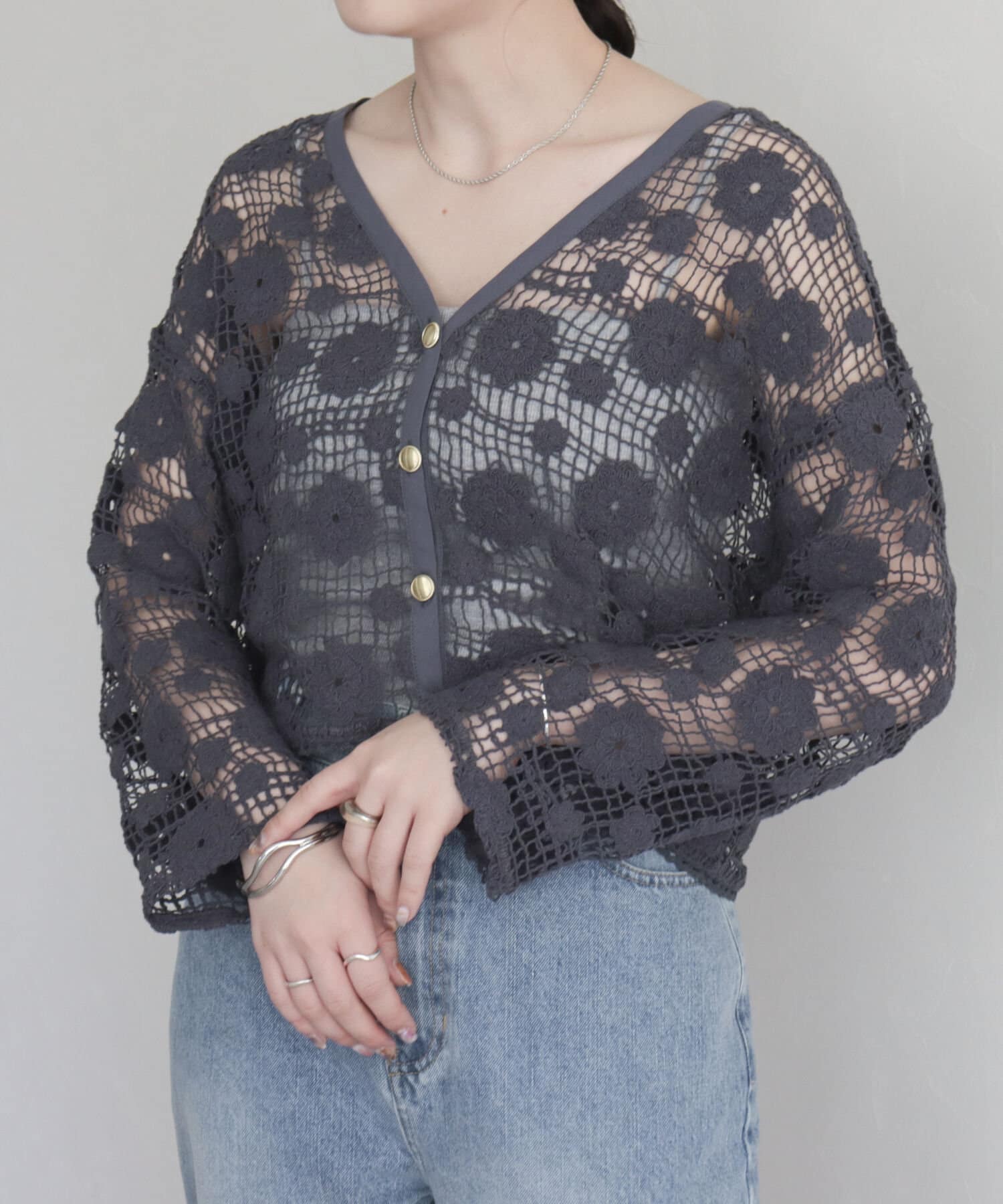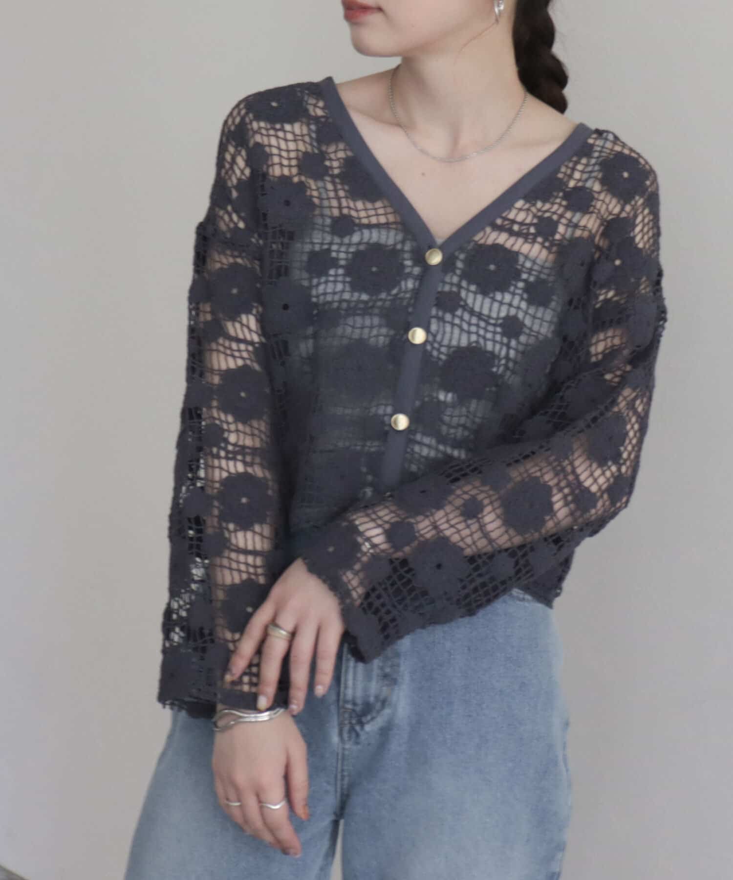 ・1枚でコーデ映えのレースVネックカーディガン