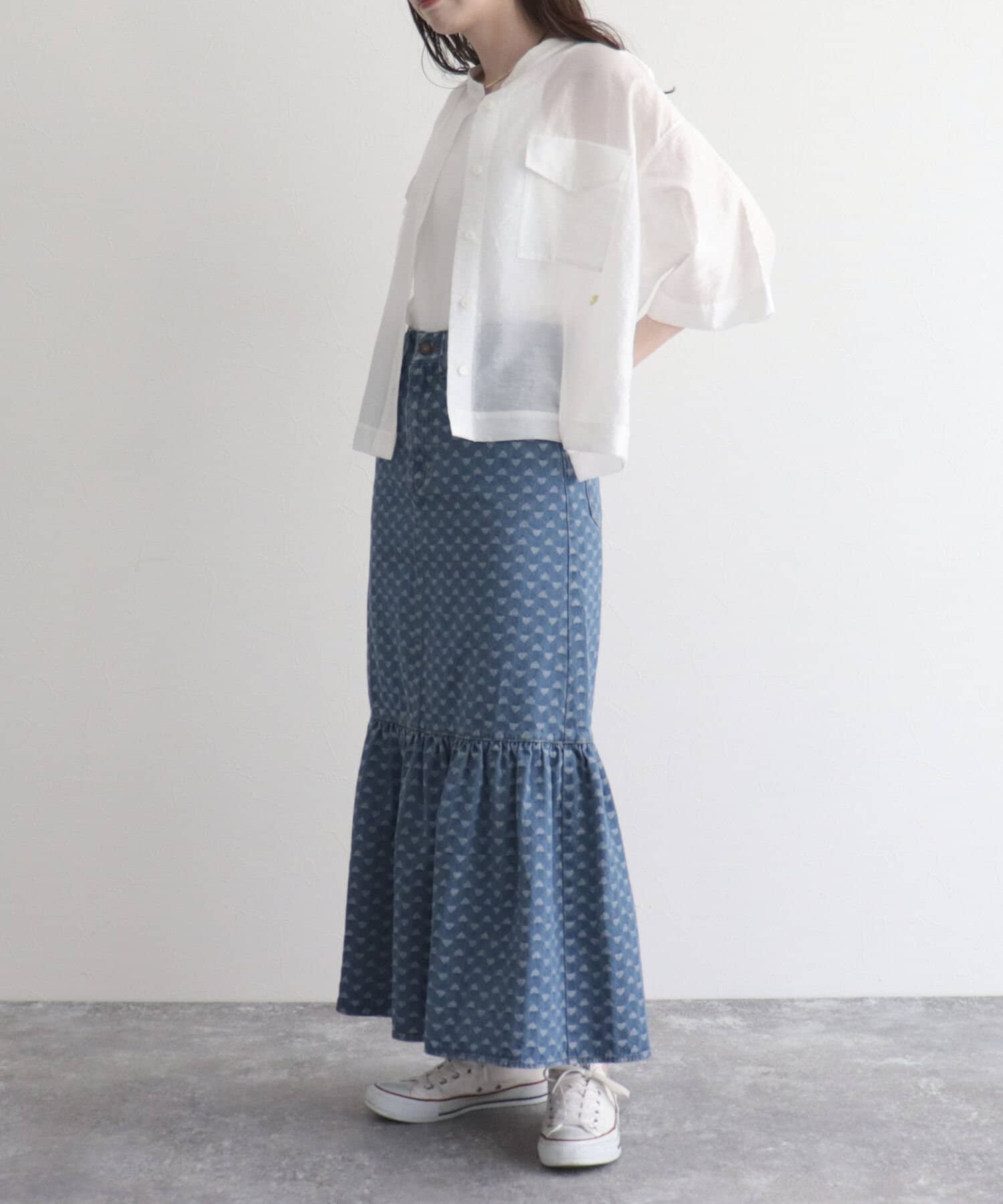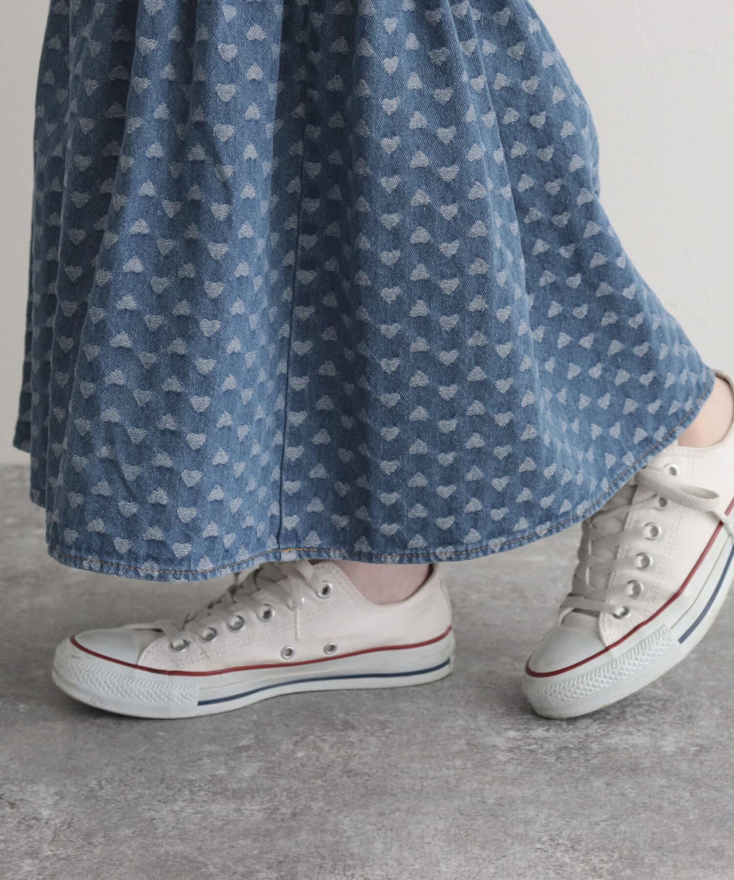・ベーシックな無地のブルーと、コーデのアクセントになる小ぶりなハート柄の2色展開でご用意しました