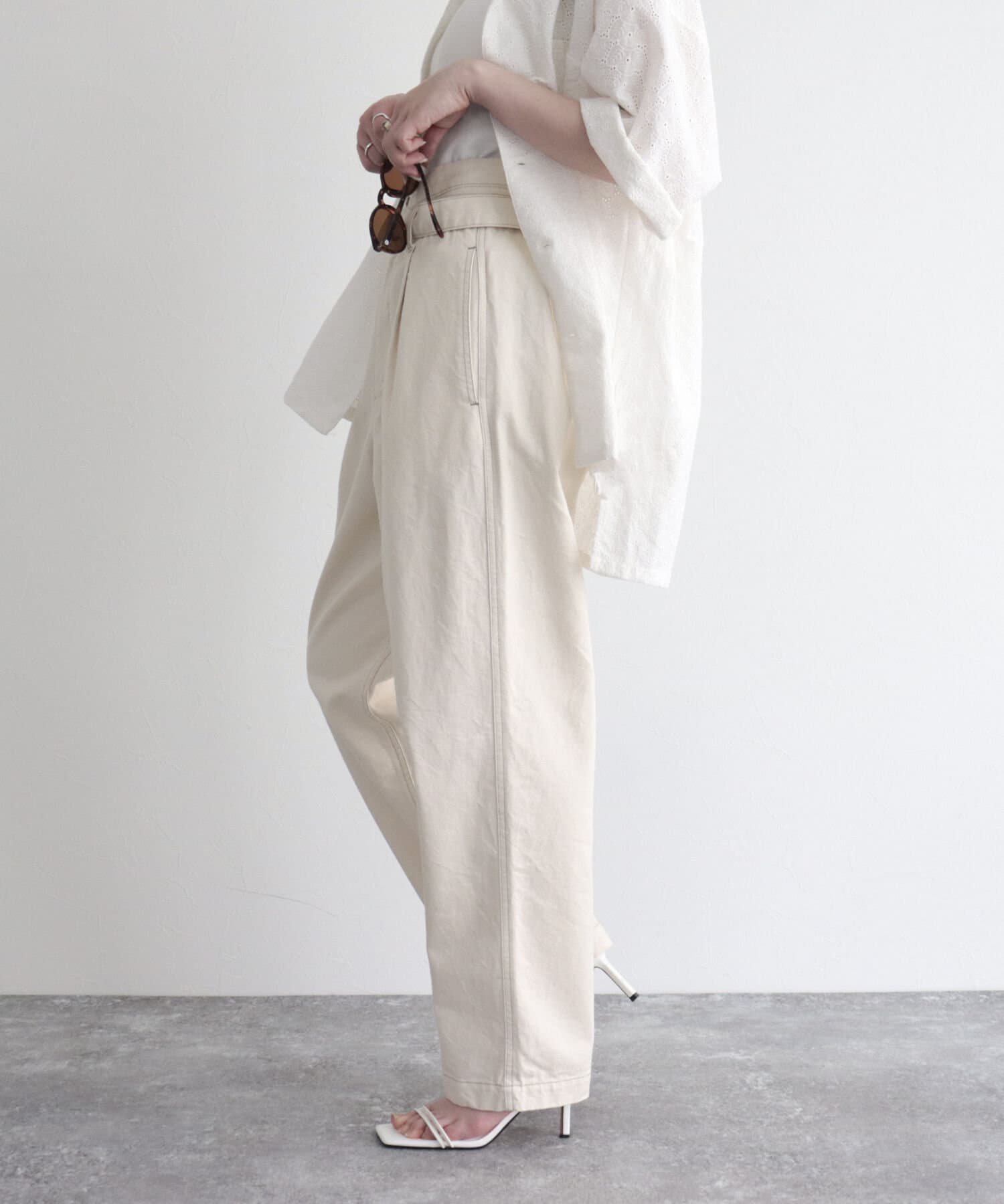 ・足首にかけて細くなるテーパードシルエットと、ハイウエストデザインで美脚&脚長効果も抜群