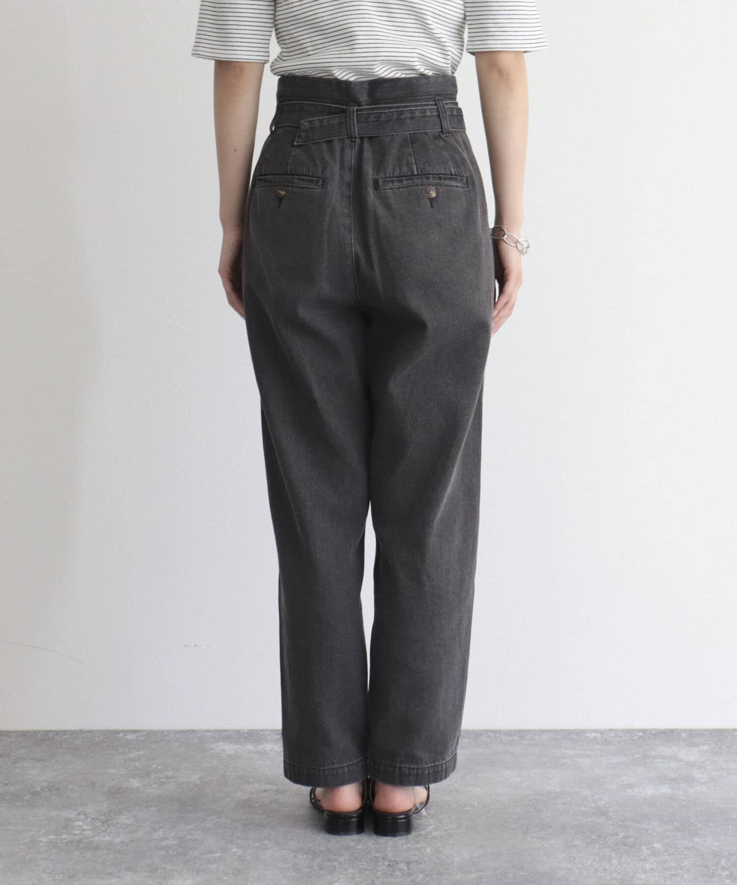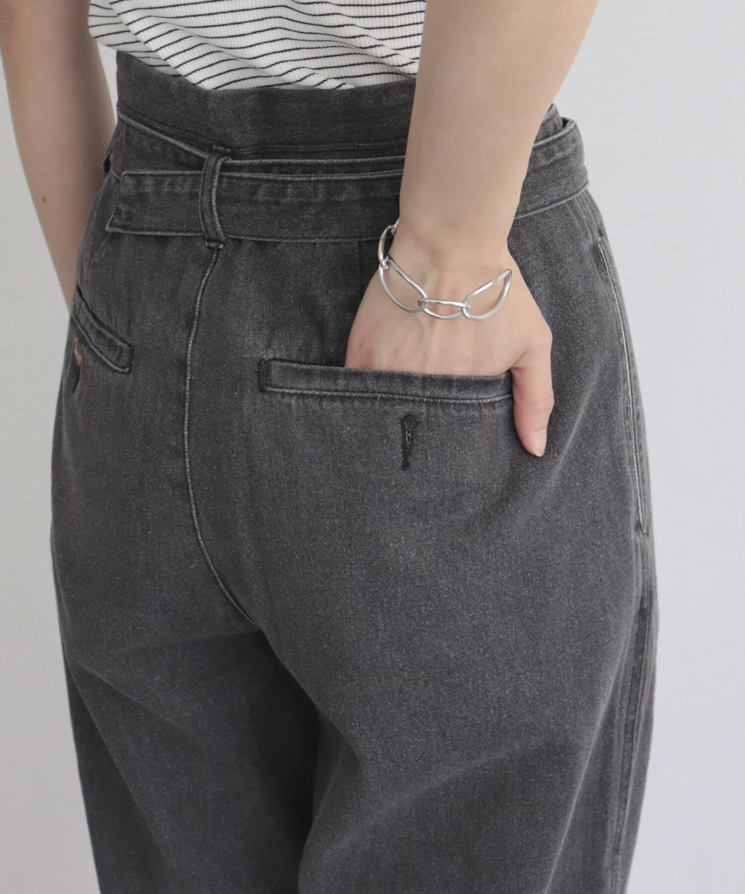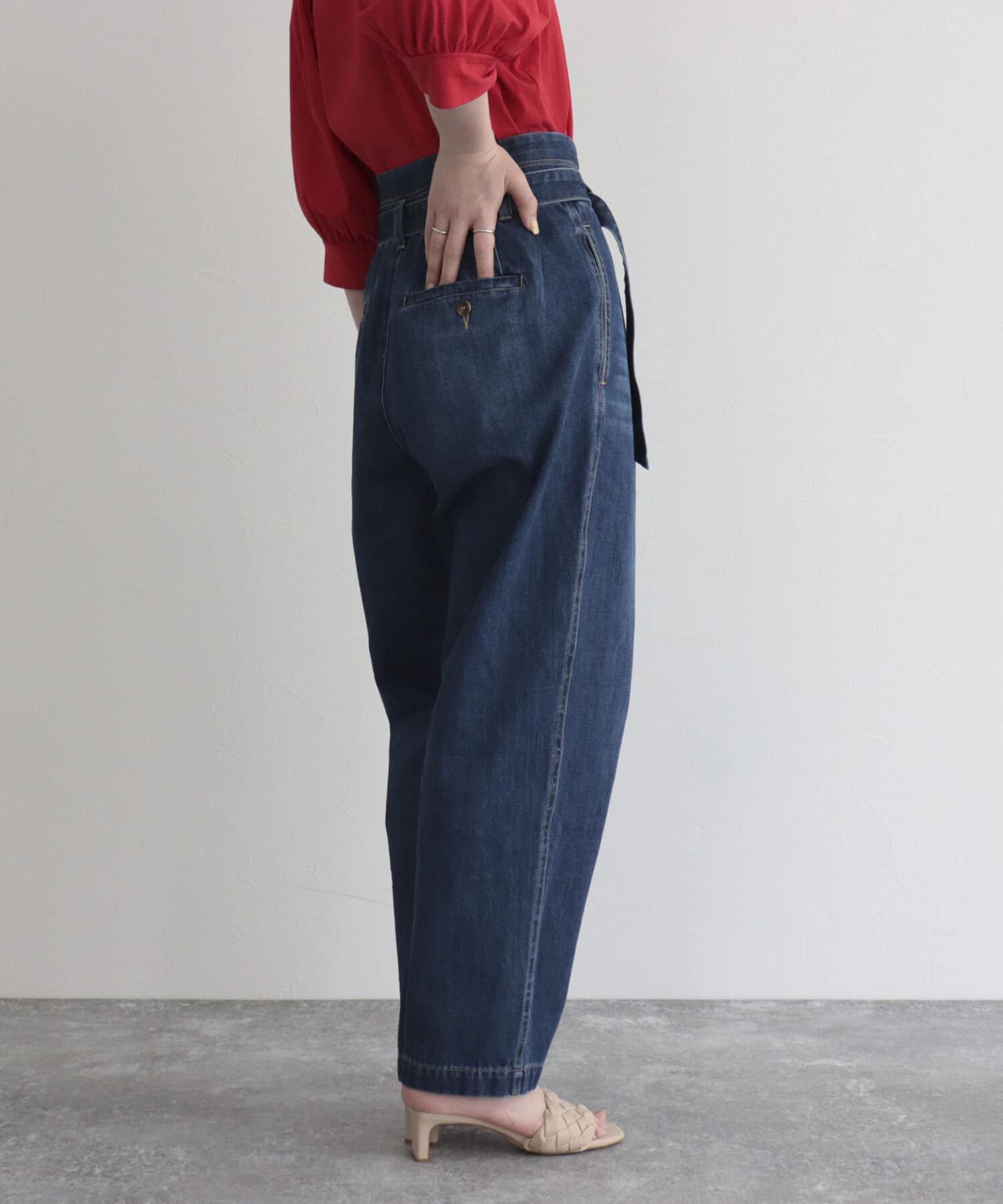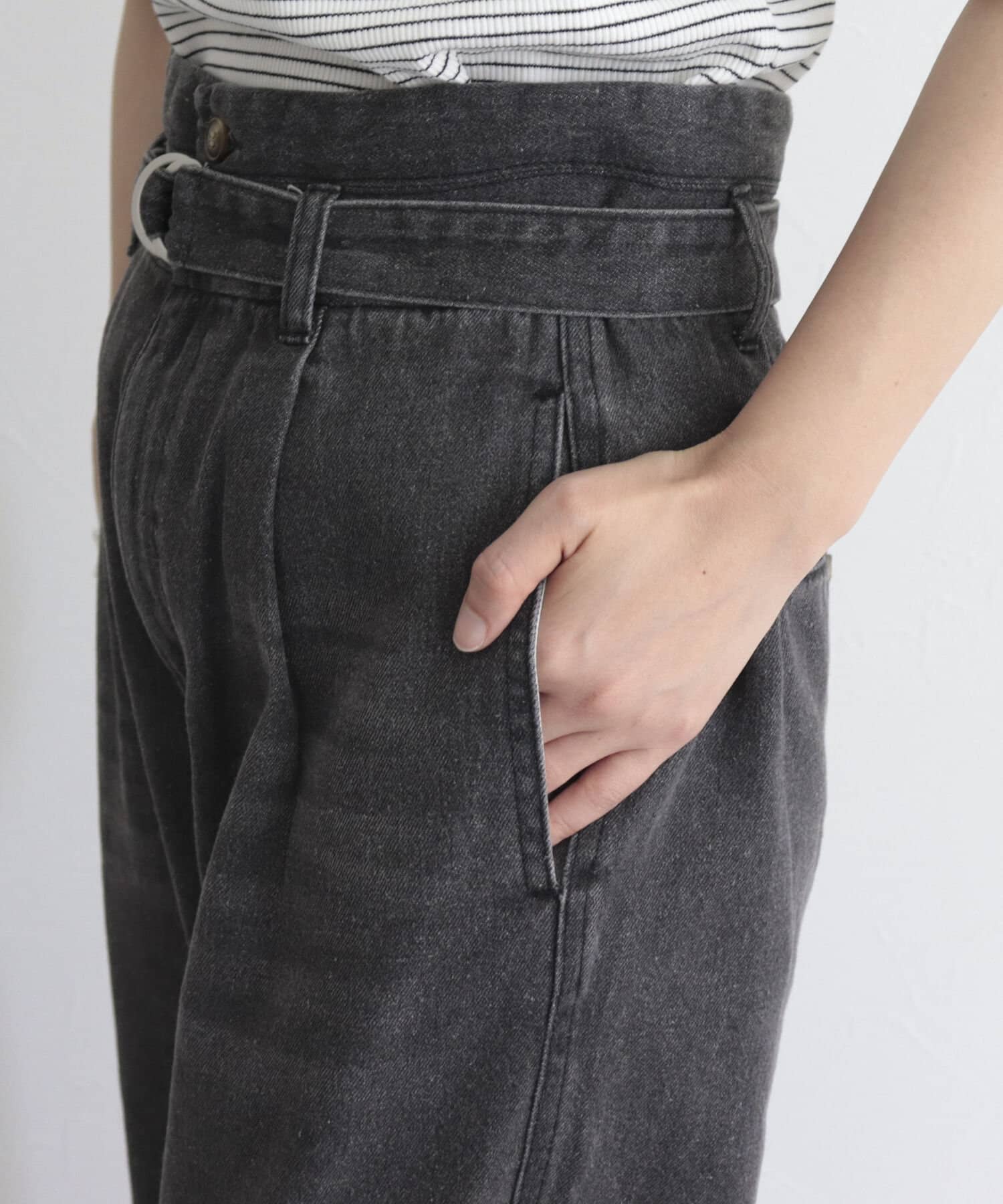 ・同じ素材のベルトが付いたデニムPT