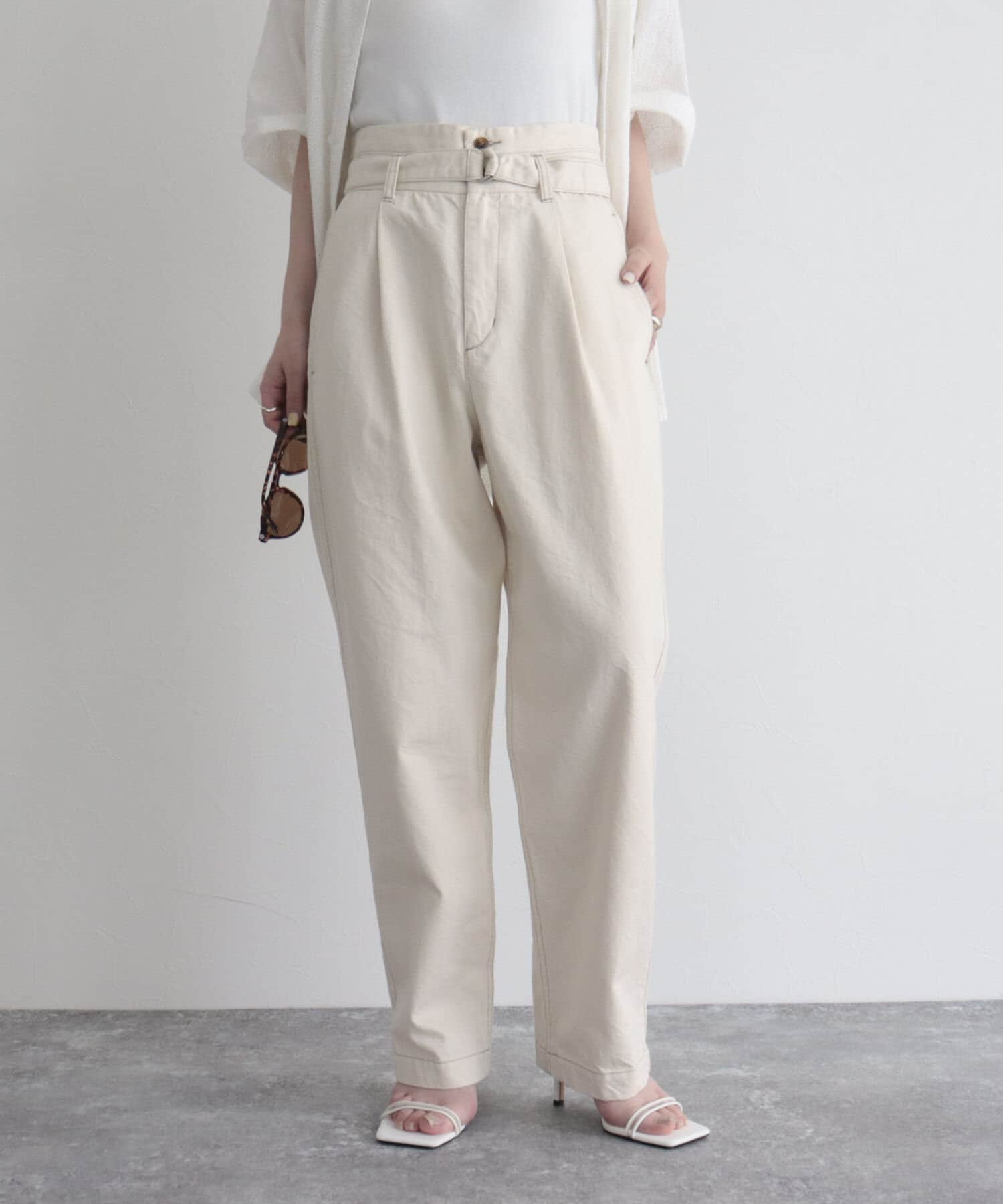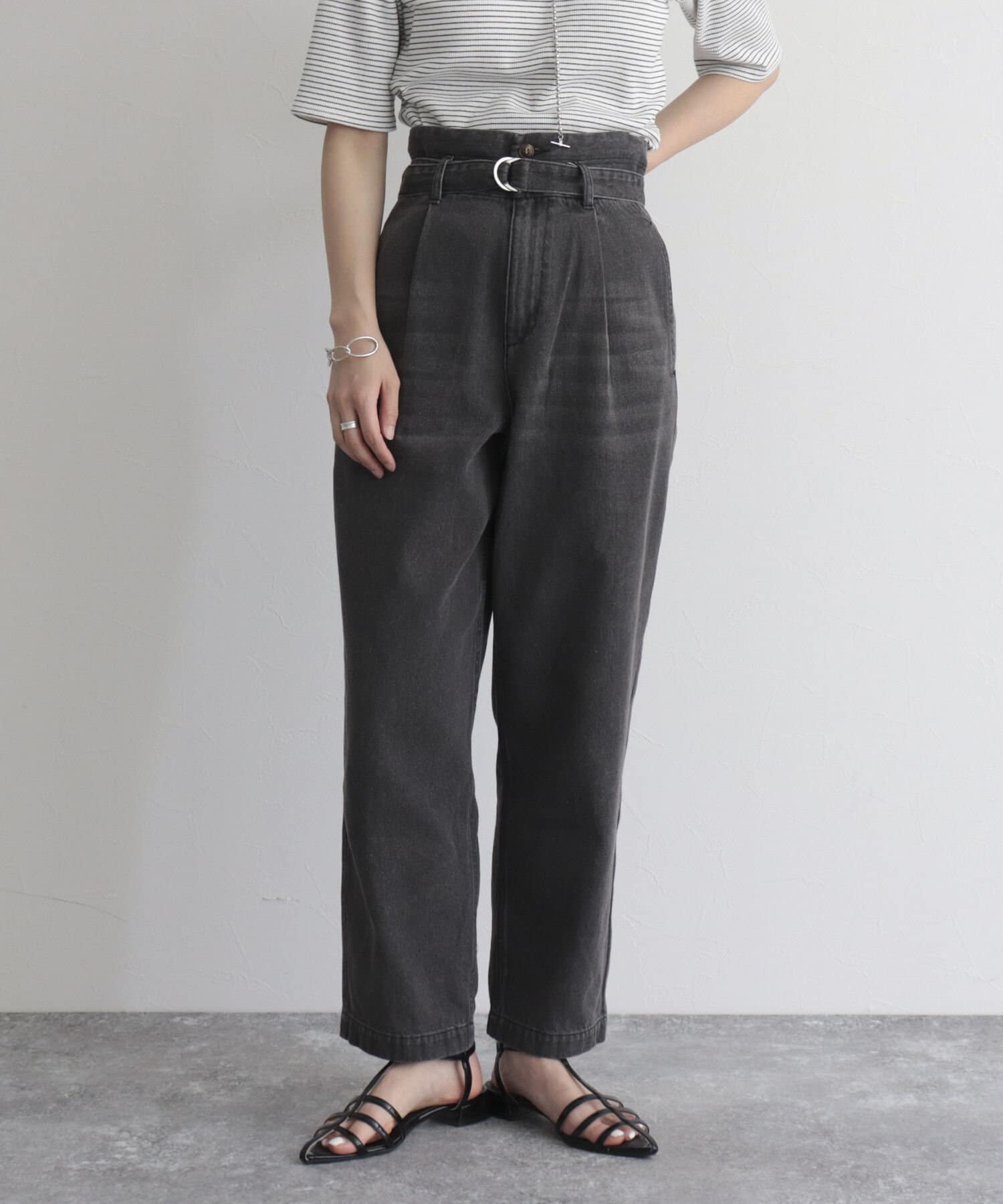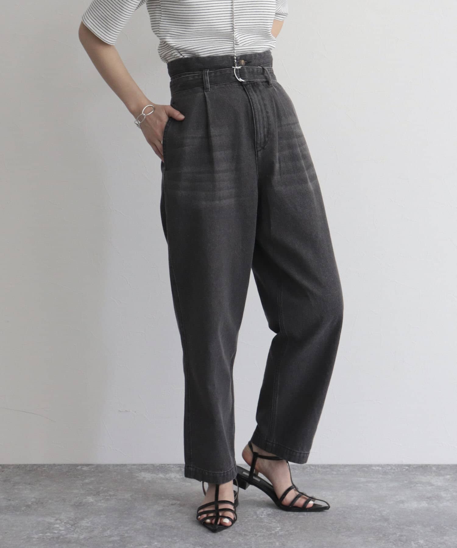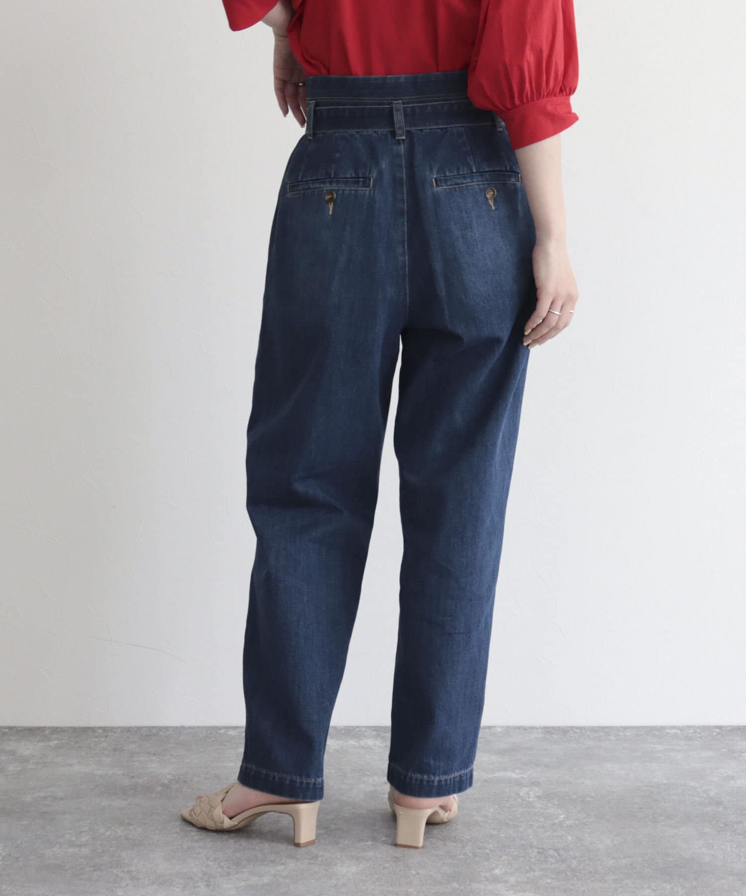 ・同じ素材のベルトが付いたデニムPT