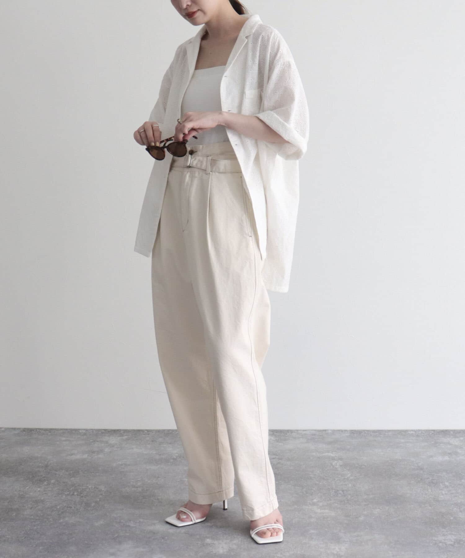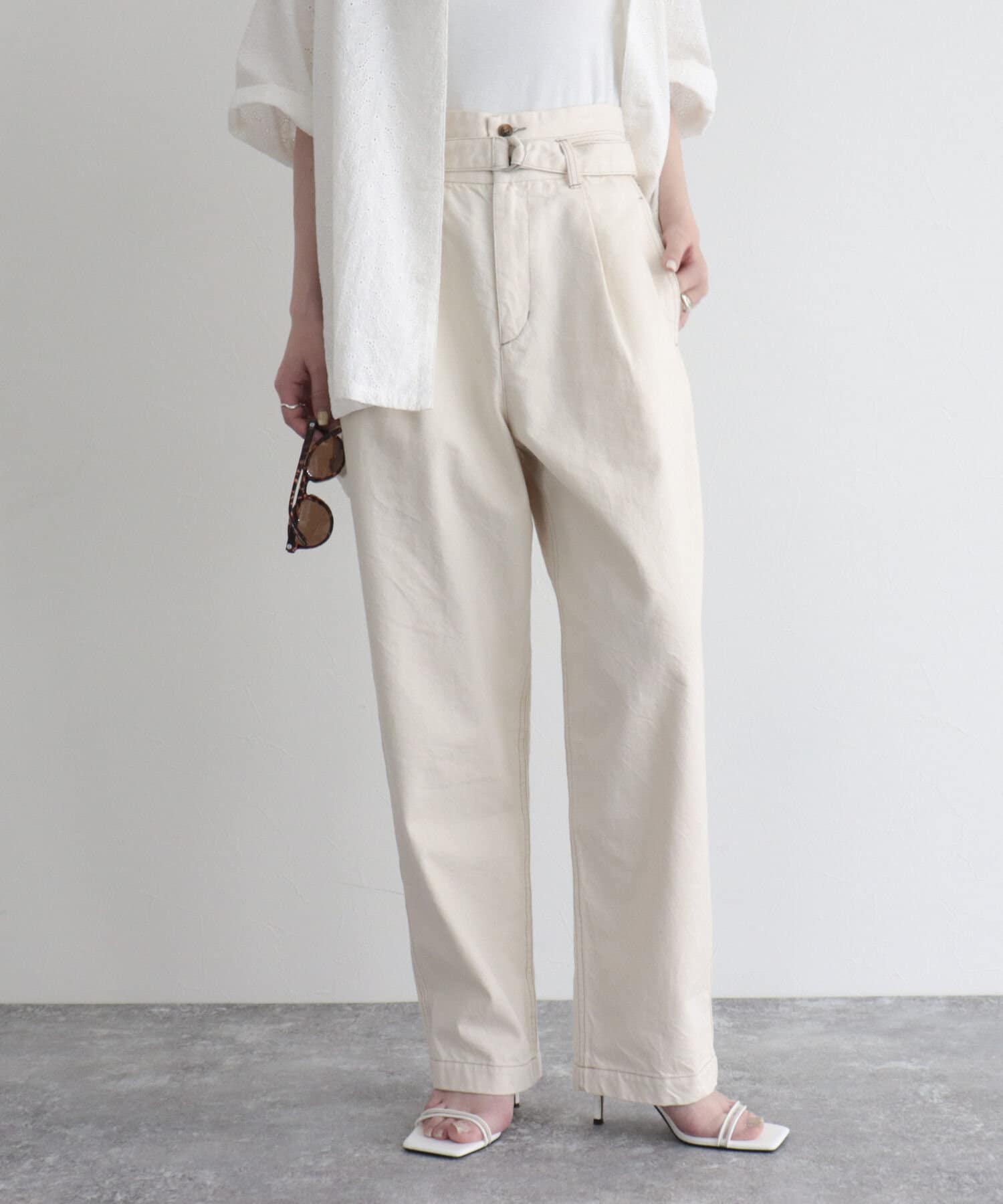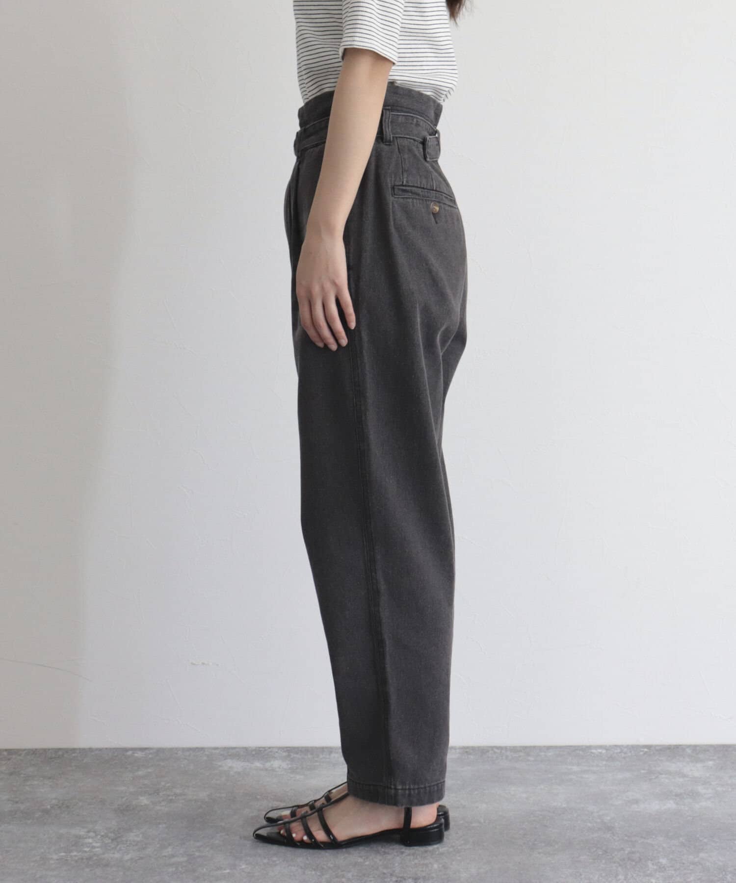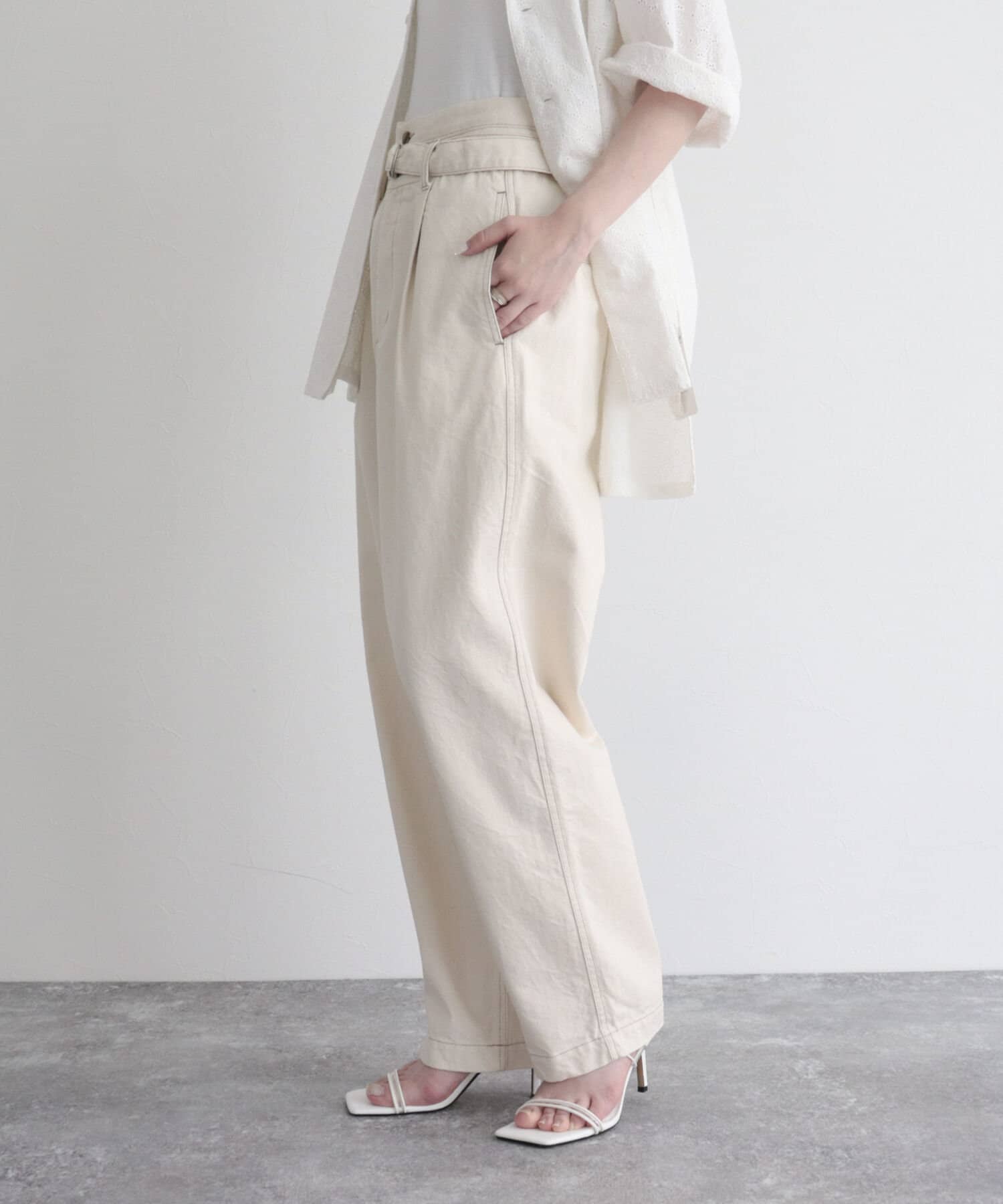 ・同じ素材のベルトが付いたデニムPT