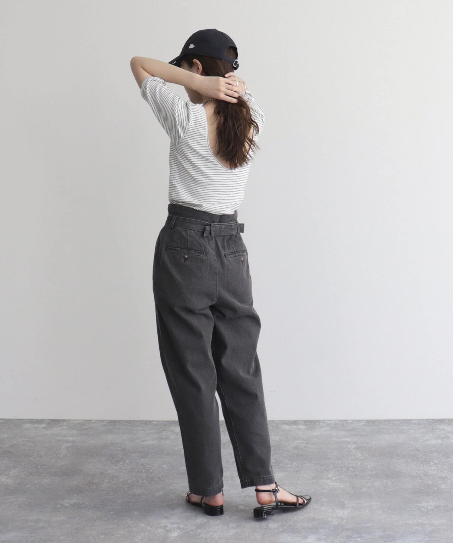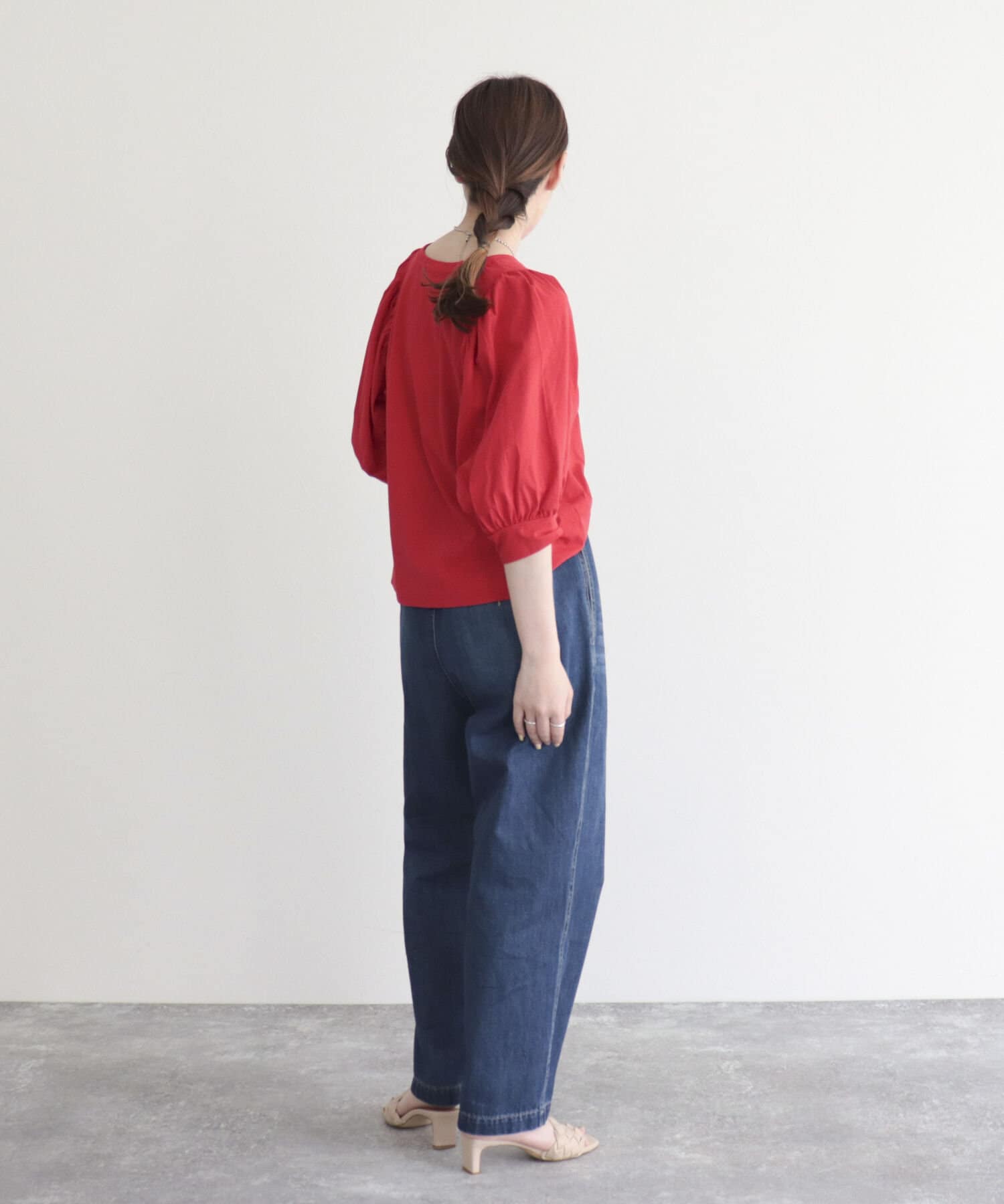 ・ウエストはタックデザインになっているので、腰周りがすっきり見えるのも魅力