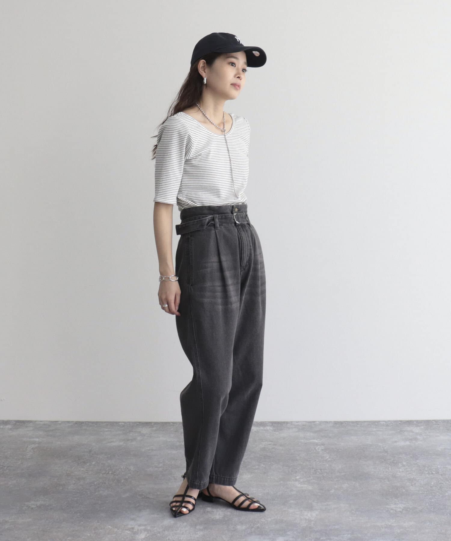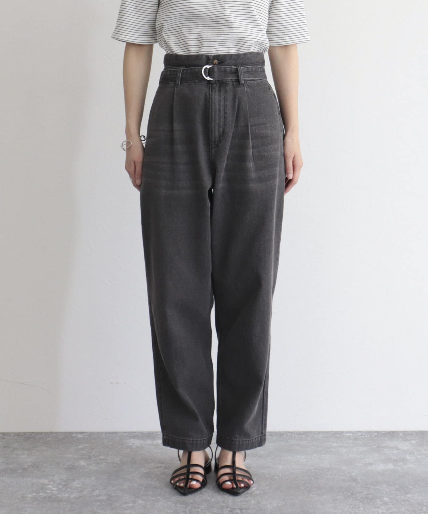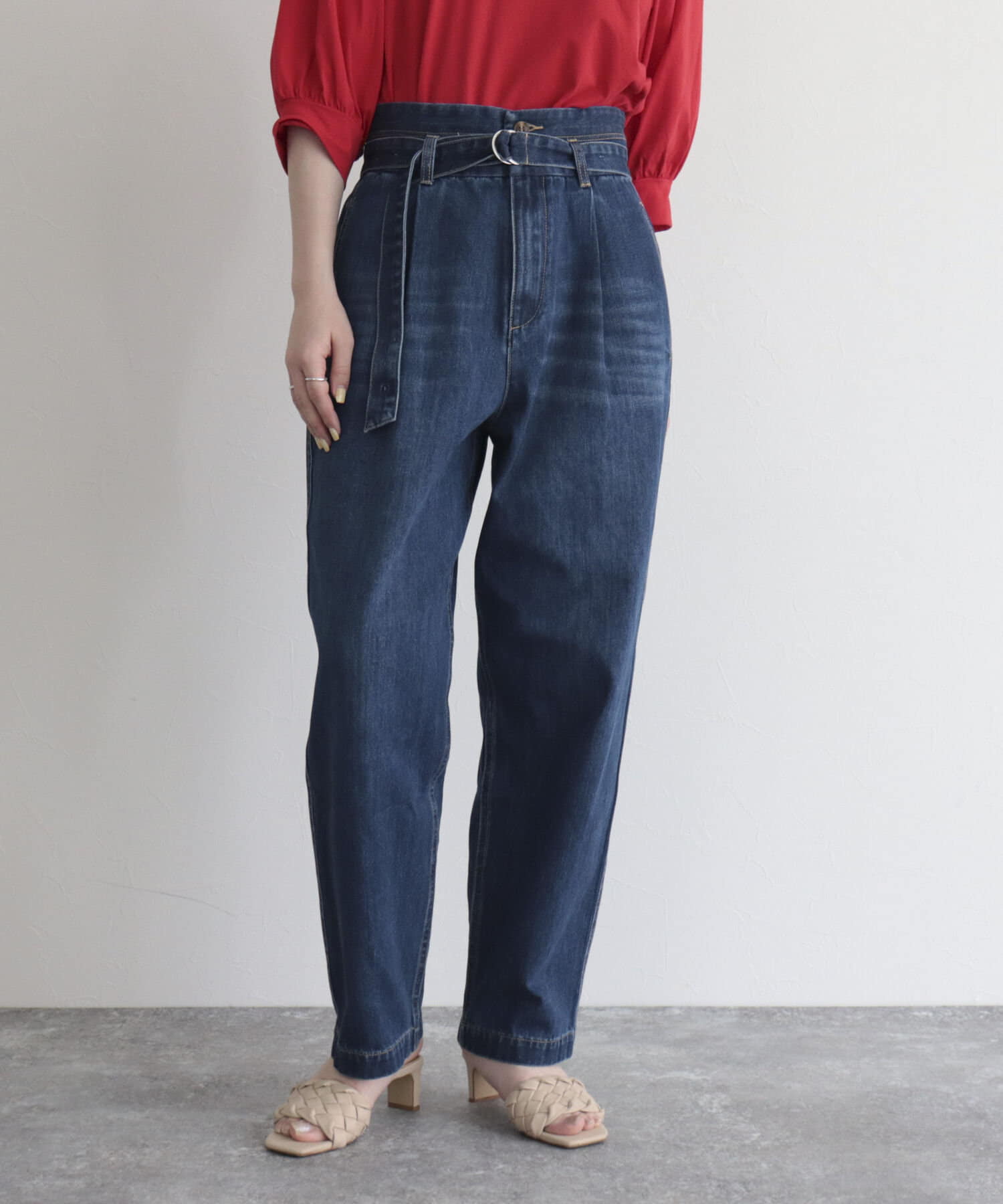 ベルト付きデニムパンツ