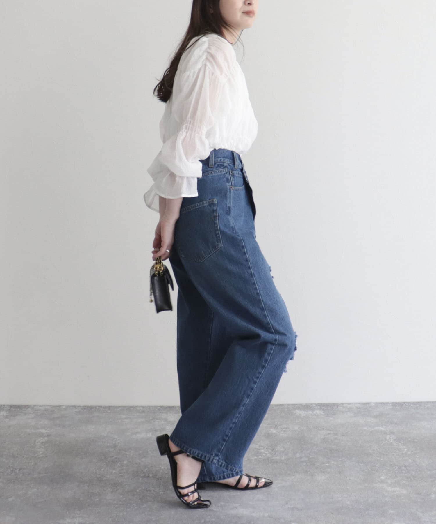 着こなしに差をつけるウエストデザインが魅力のデニムパンツ