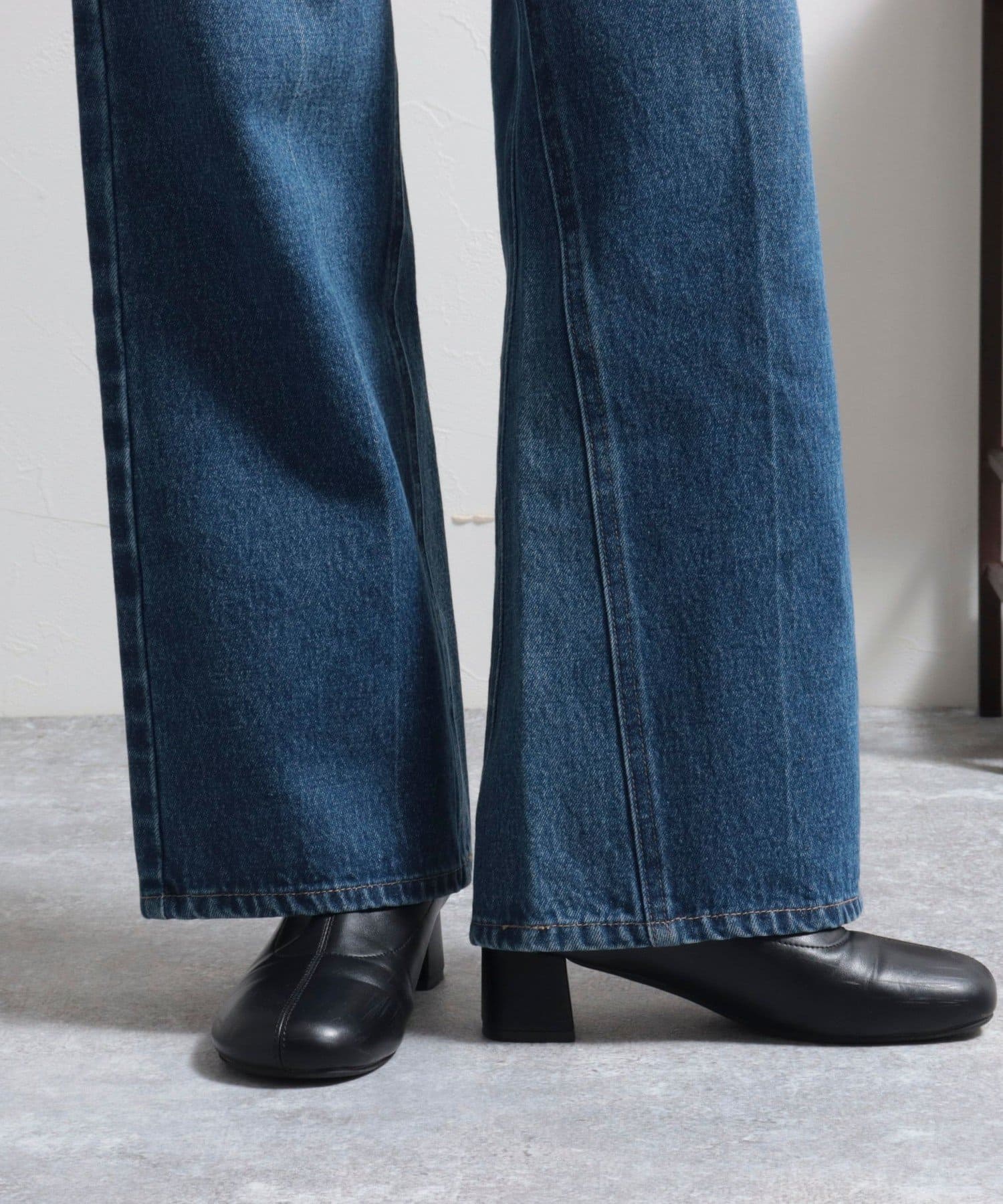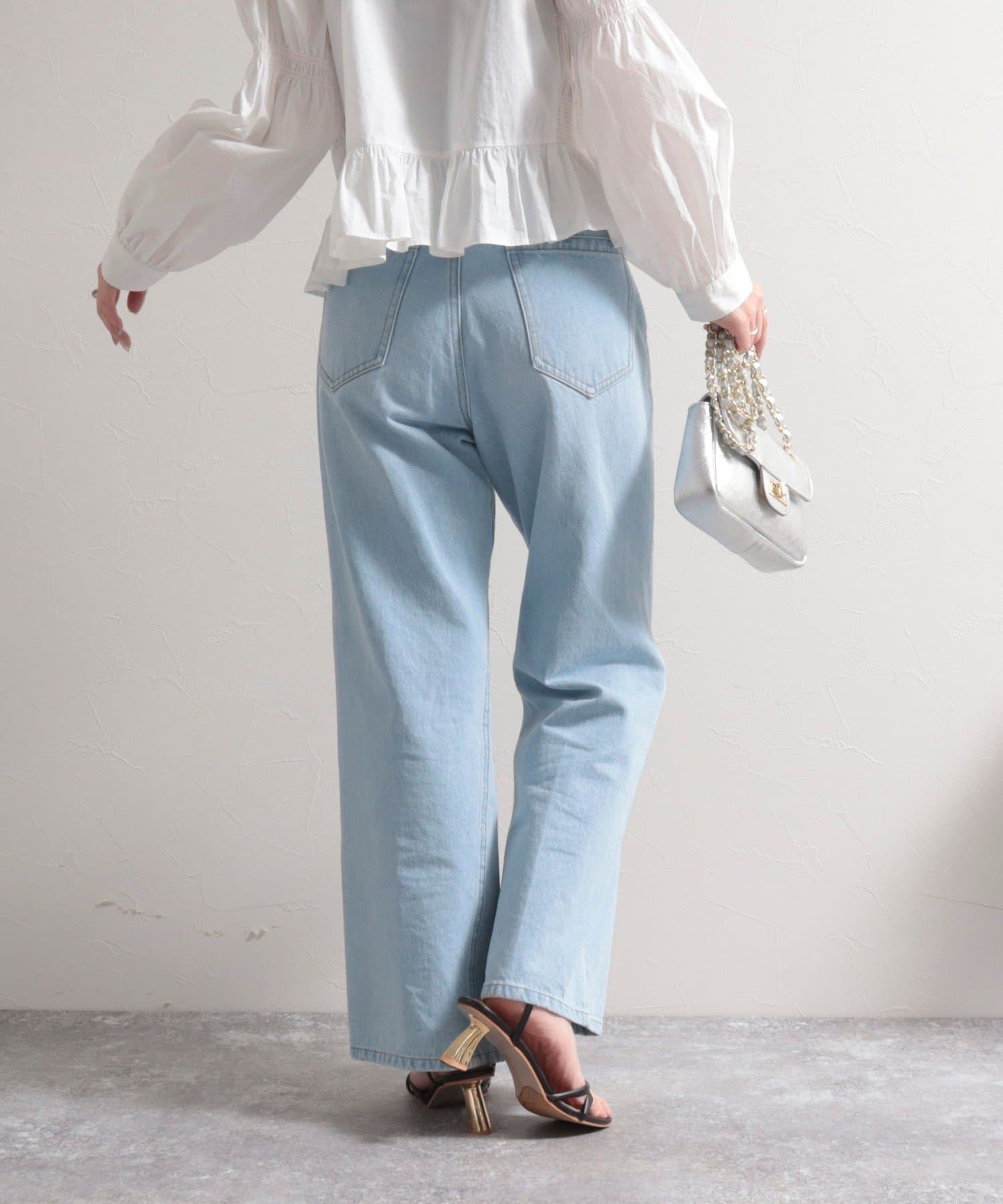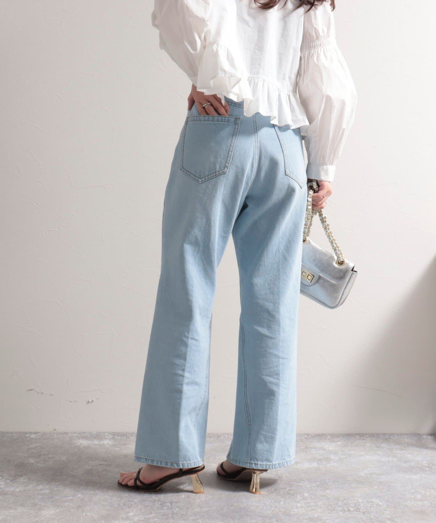 センタープレス ストレートデニムパンツ【ネームパッチなし】