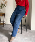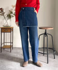 トレンド感抜群のラップデザインが目を惹くデニムパンツ
