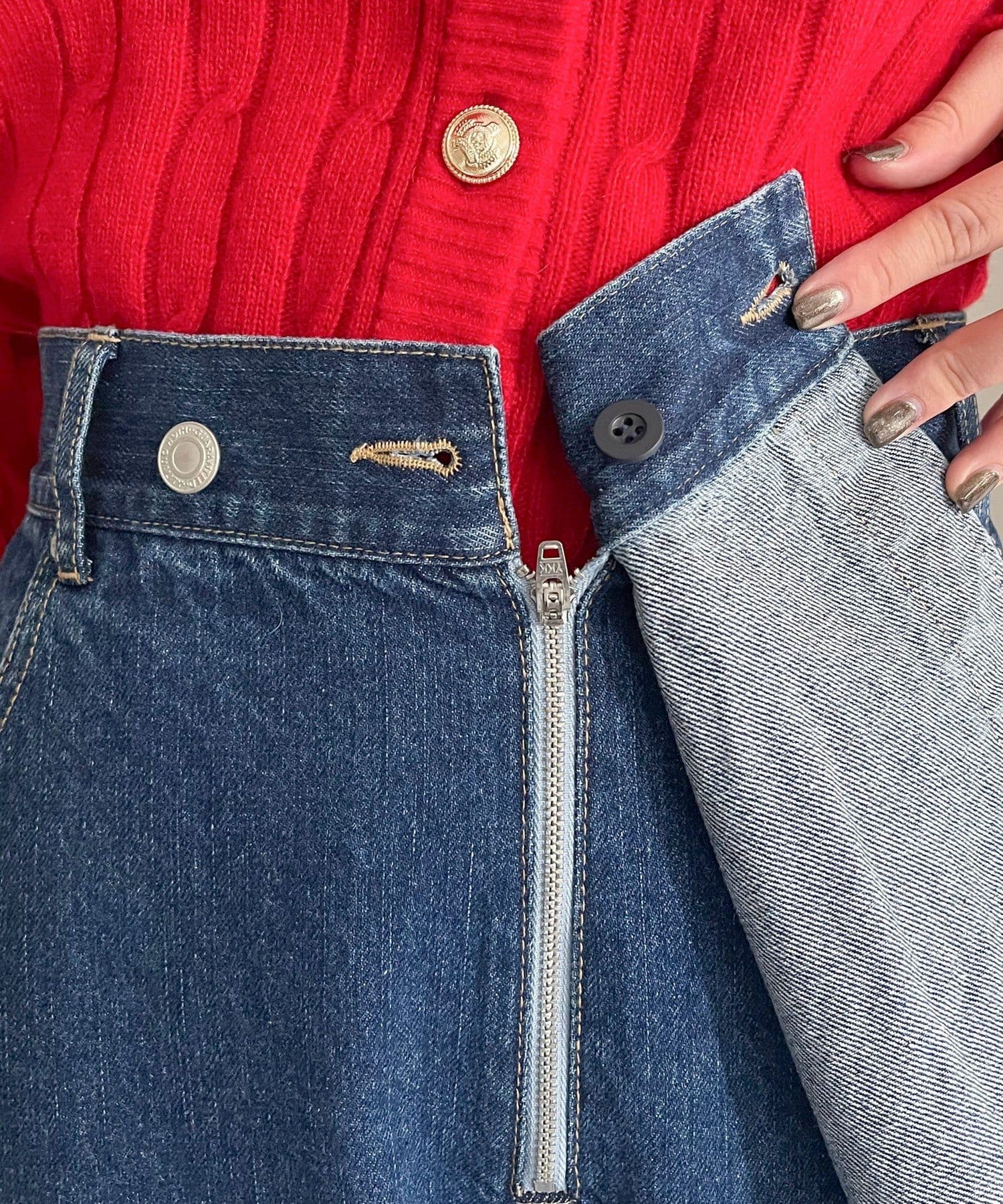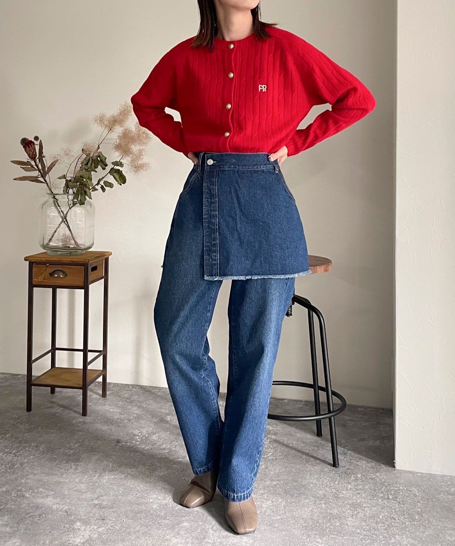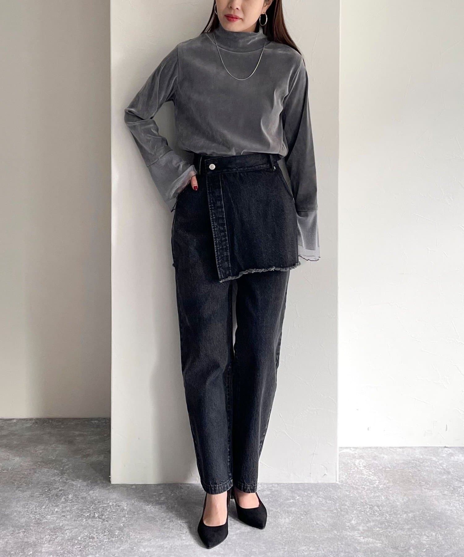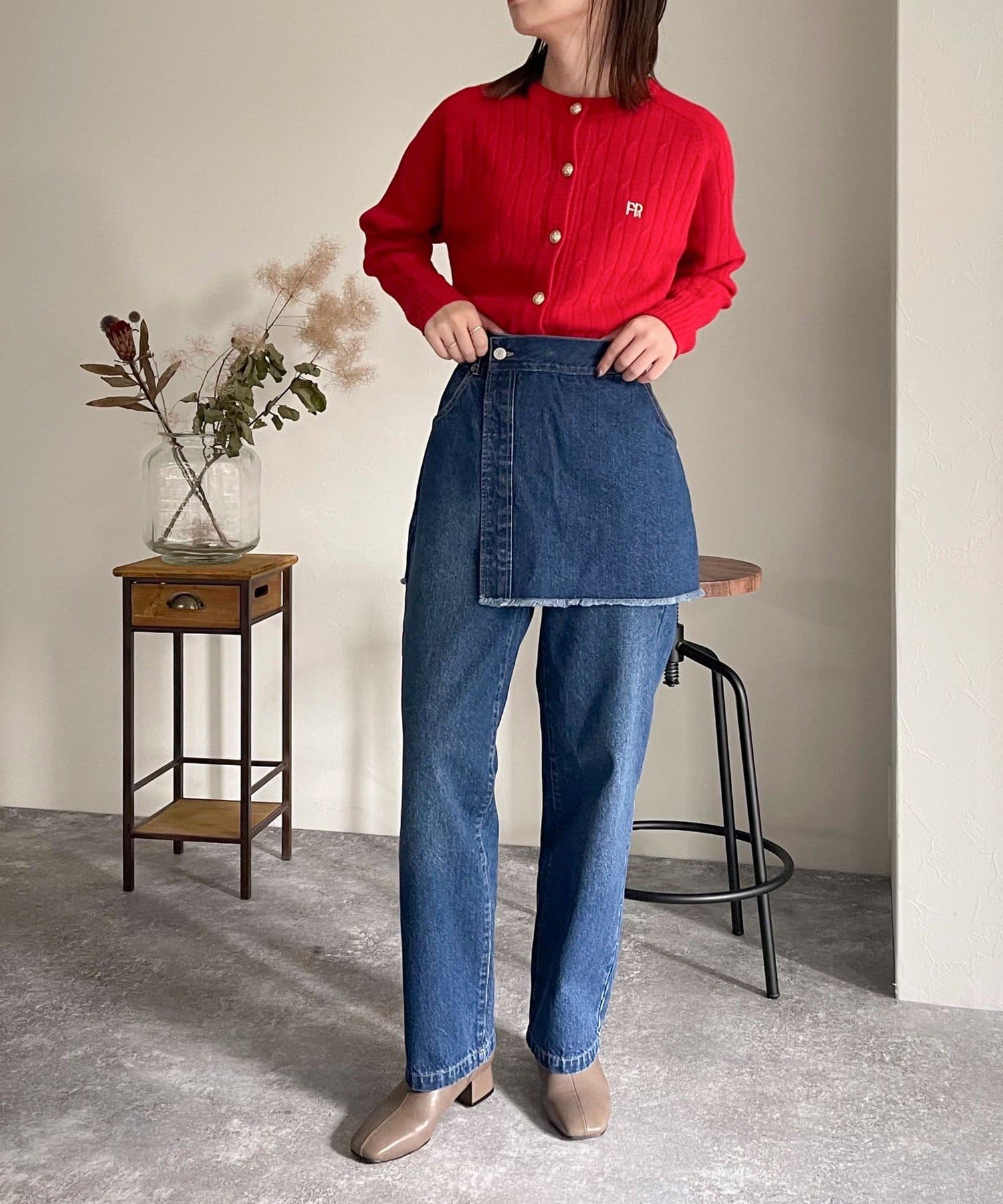 ・ラップデニム部分は切りっぱなしのようなデザインでこなれ感を演出