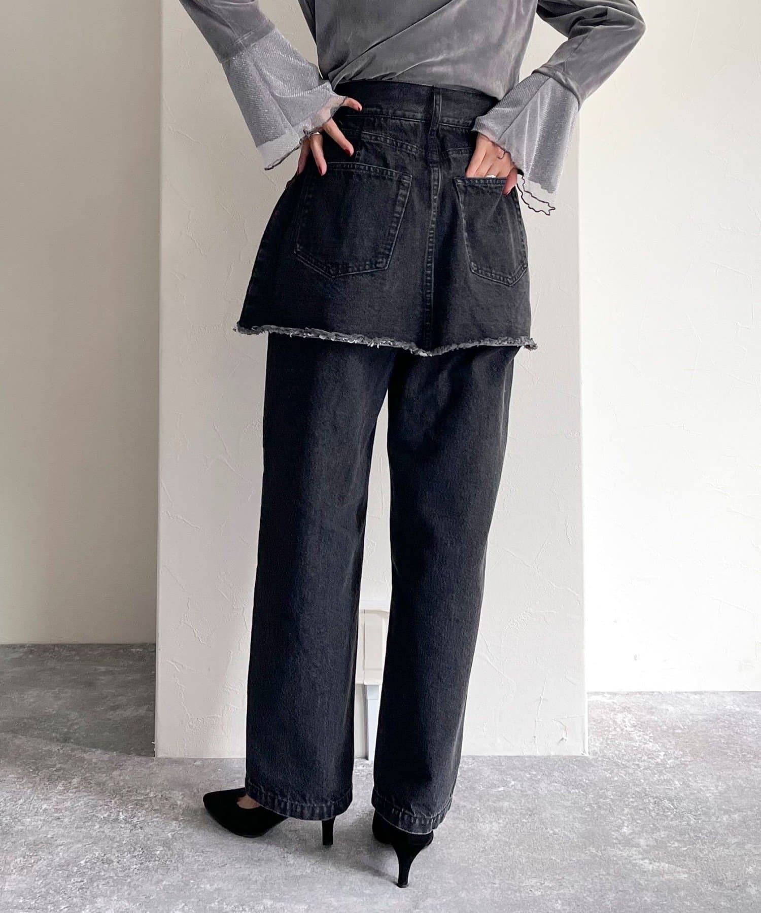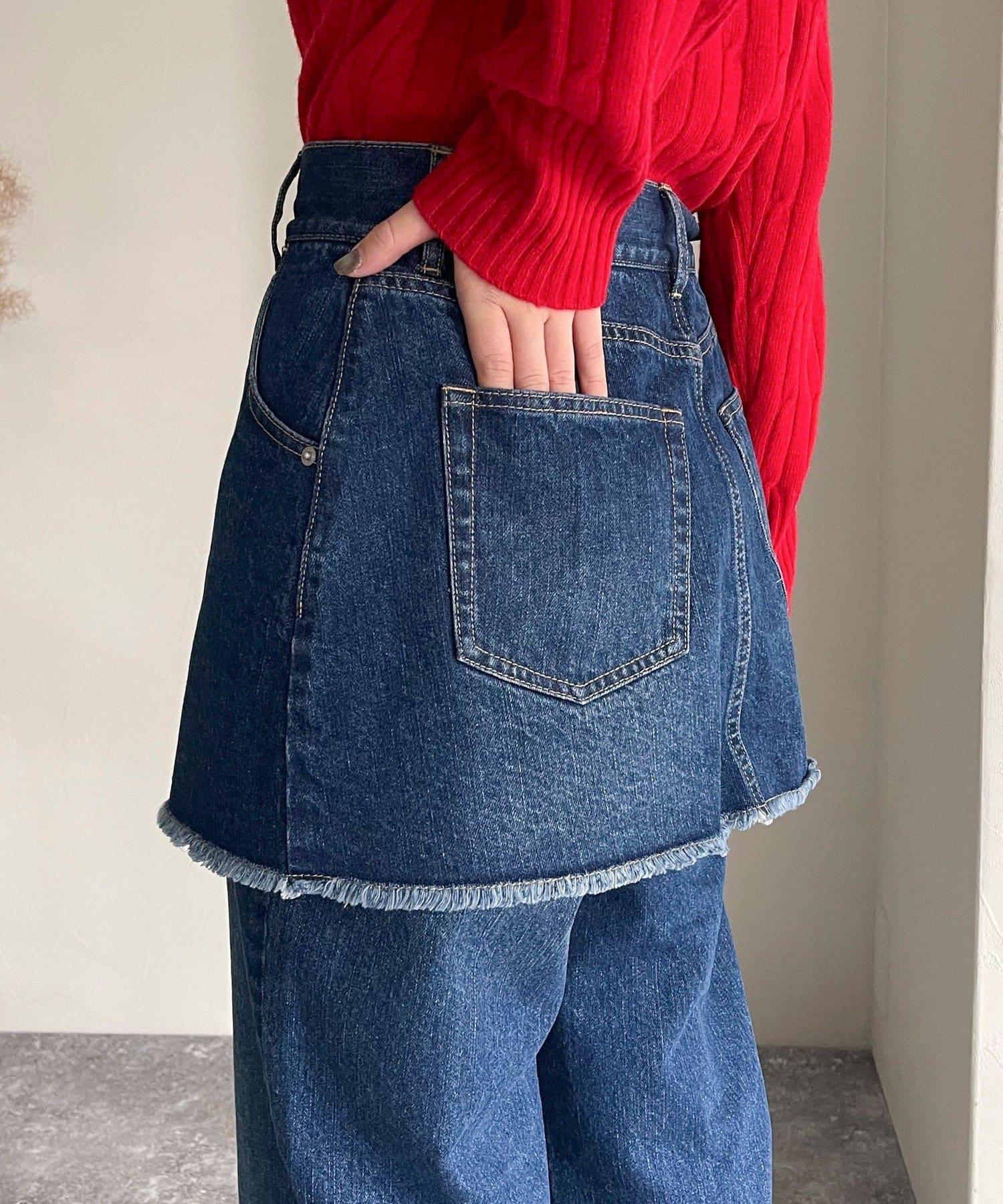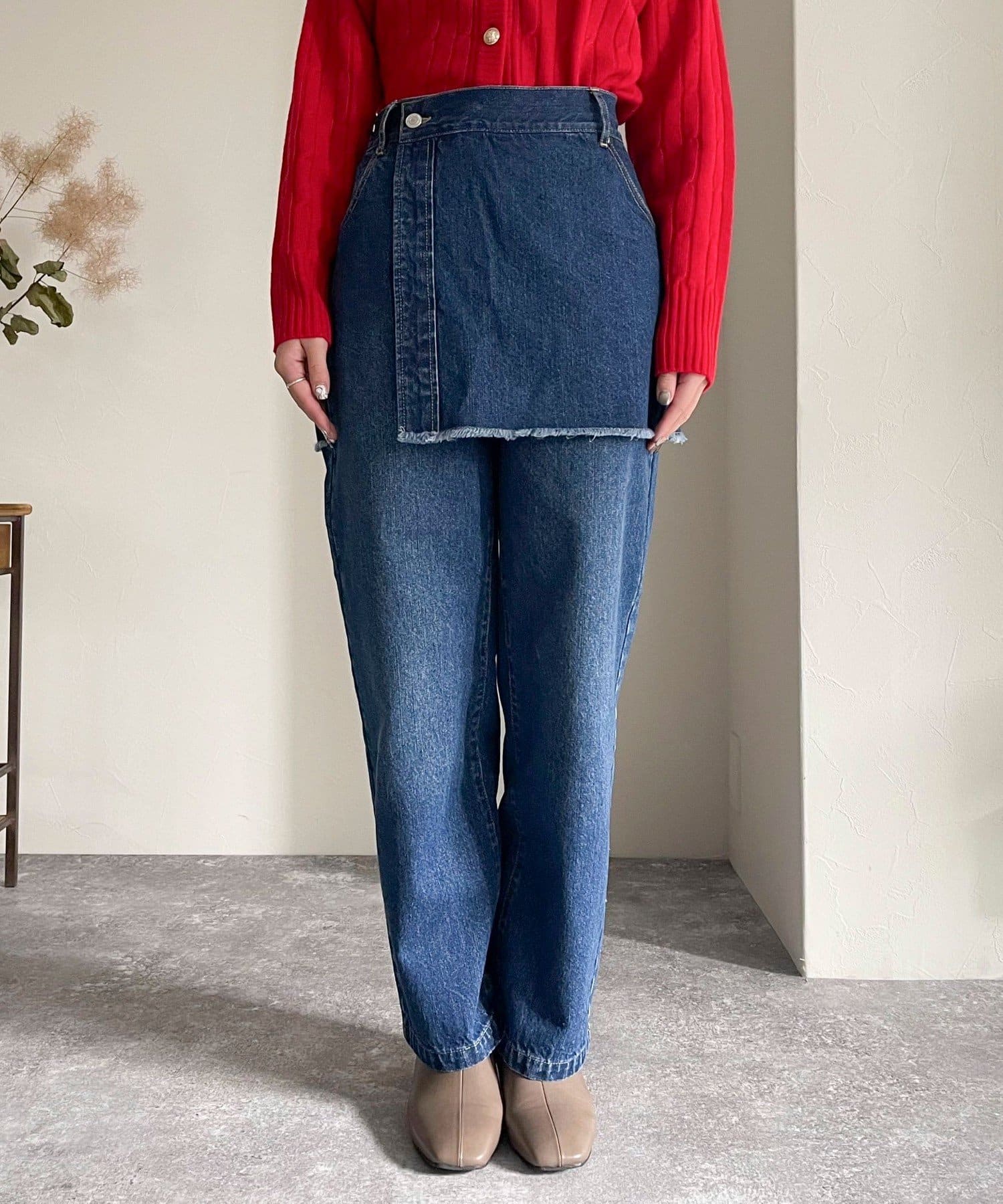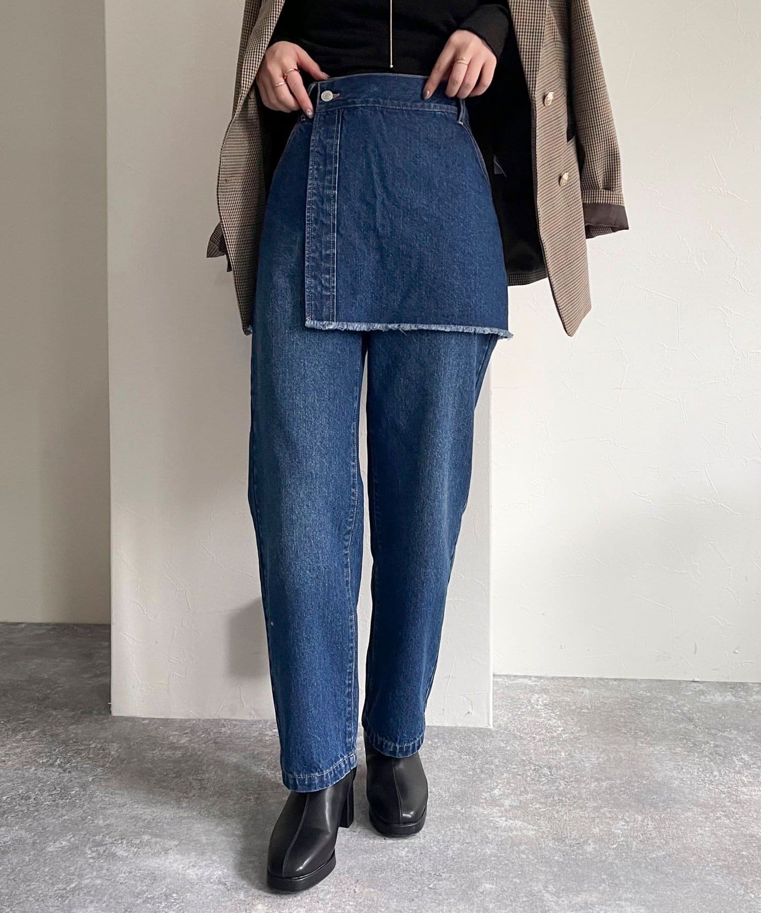 ・履くだけでトレンド感のあるレイヤードスタイルが完成するラップデニムパンツ