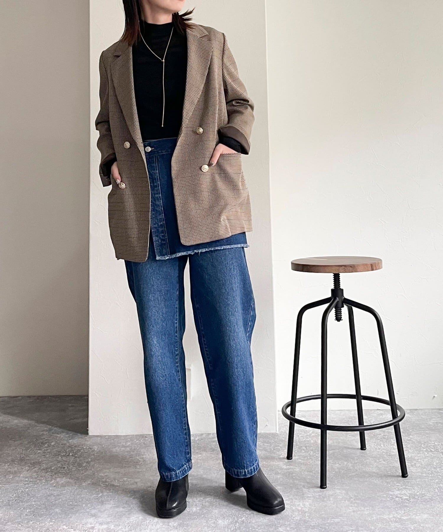 ・トップスをインしたスタイルはもちろん、秋の定番アイテムのジャケットを合わせたコーディネートがおすすめです
