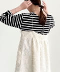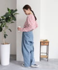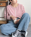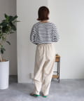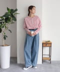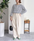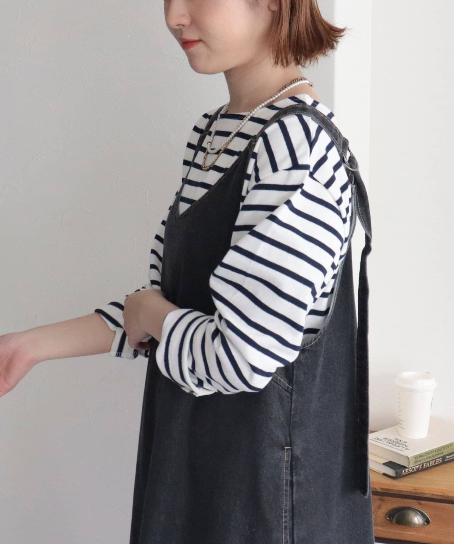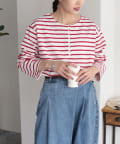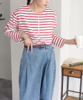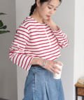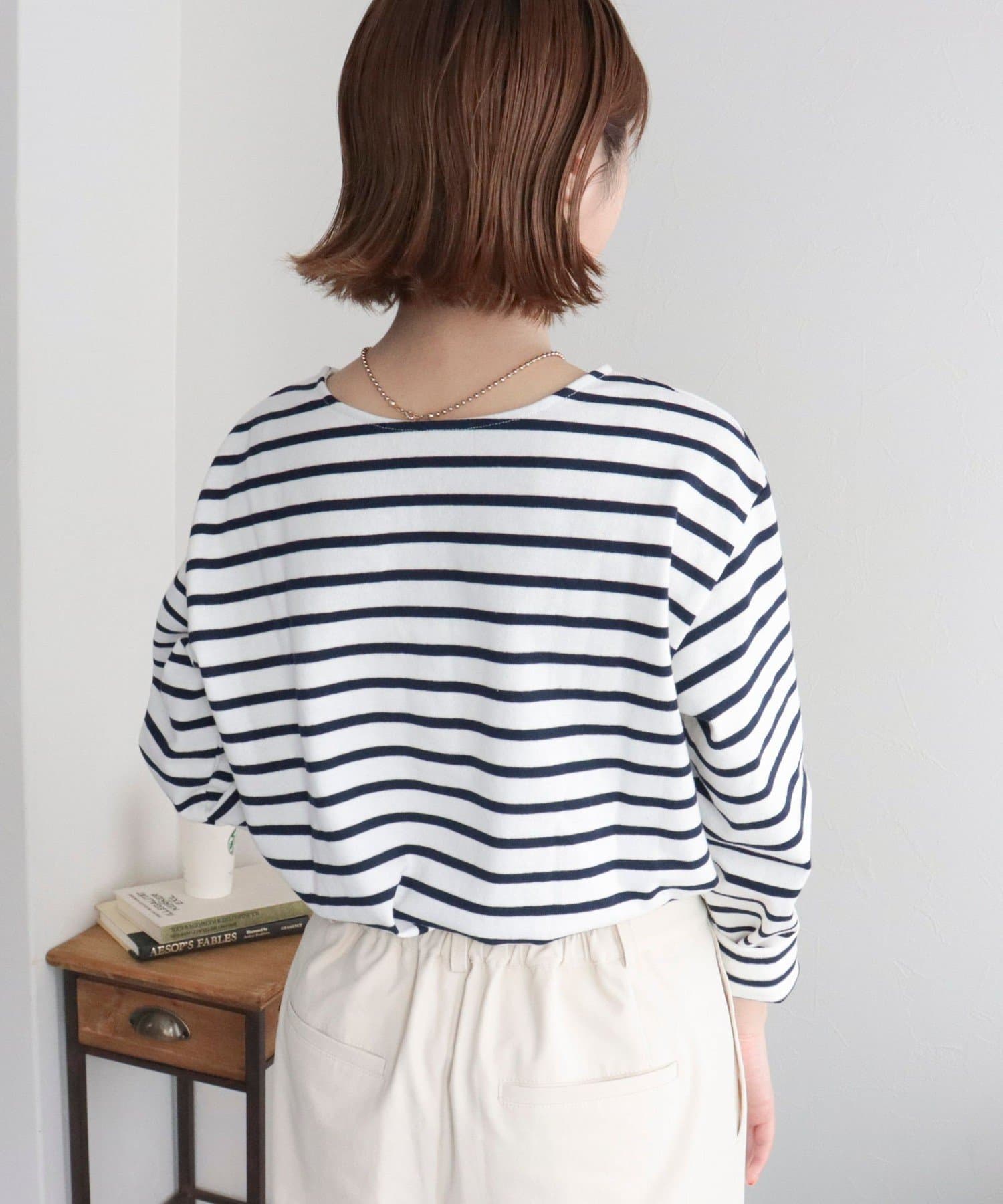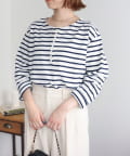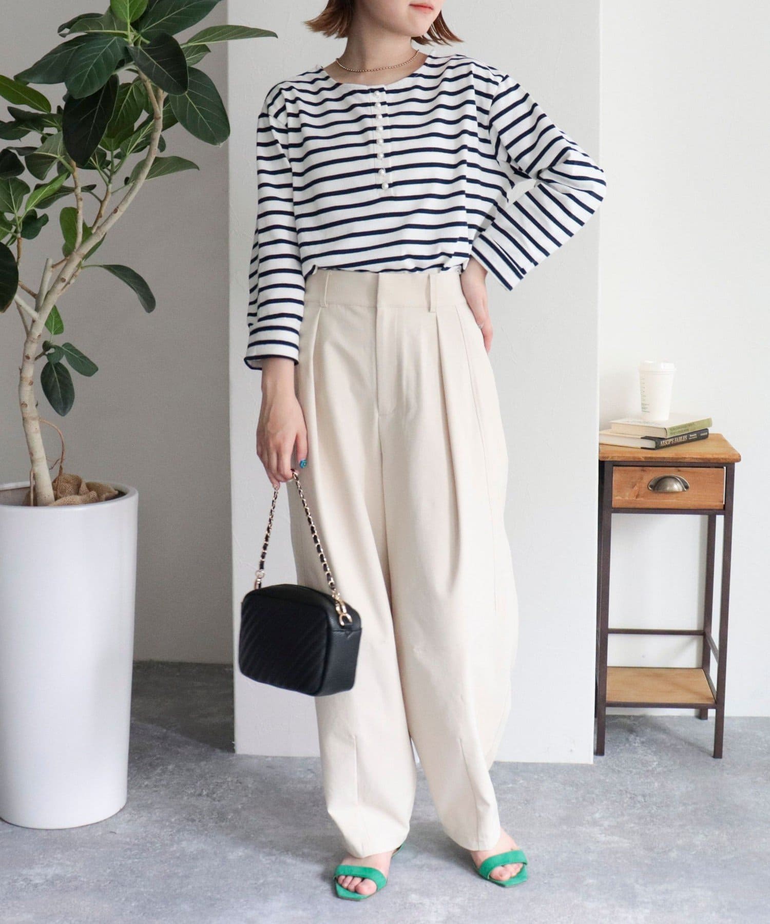 ・カジュアルなボーダーにパールボタンの組み合わせが上品なj女性らしい印象をプラスします