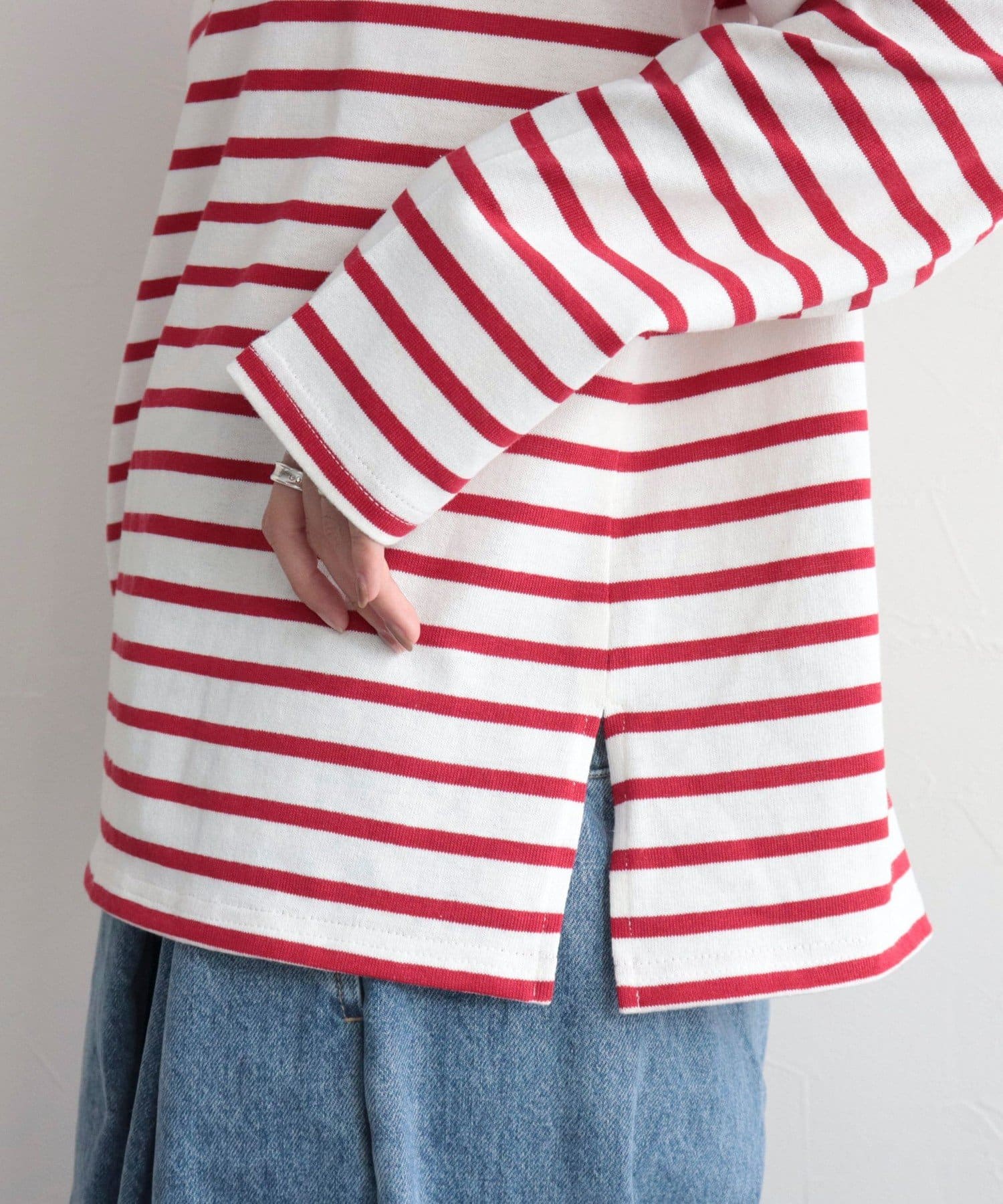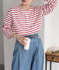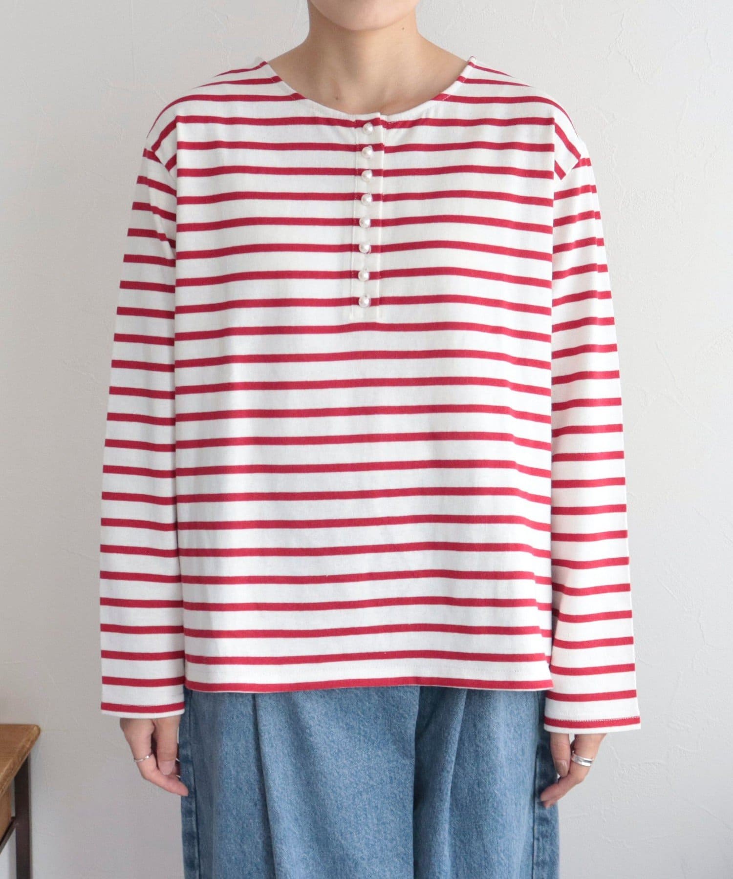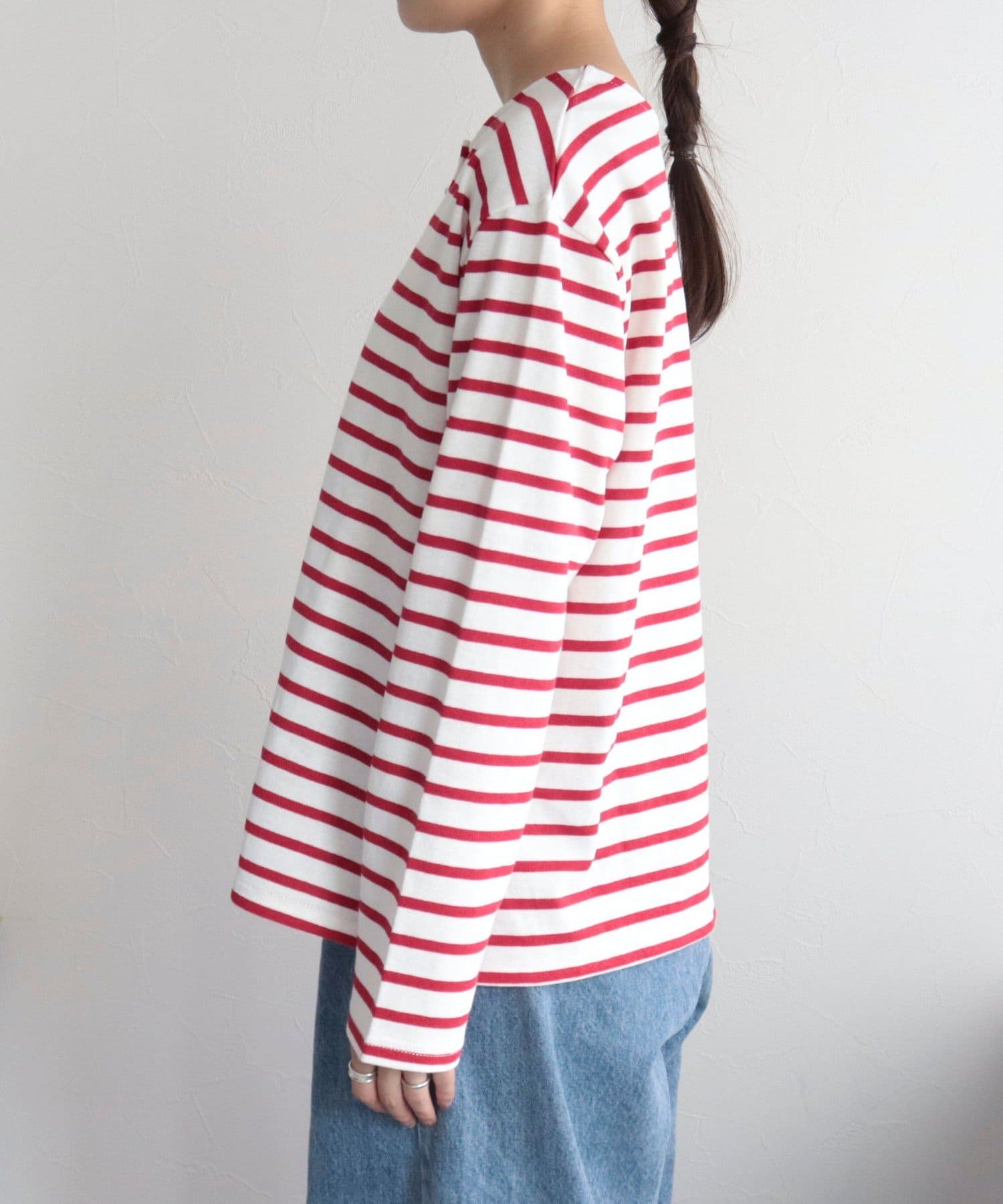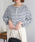 ・パールボタンがポイントになる定番のボーダーカットソーが秋バージョンで登場