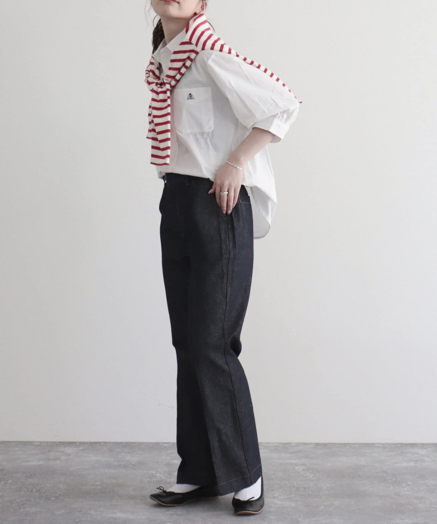 ・肩回りのドロップやゆったりとしたサイジングが抜け感を演出