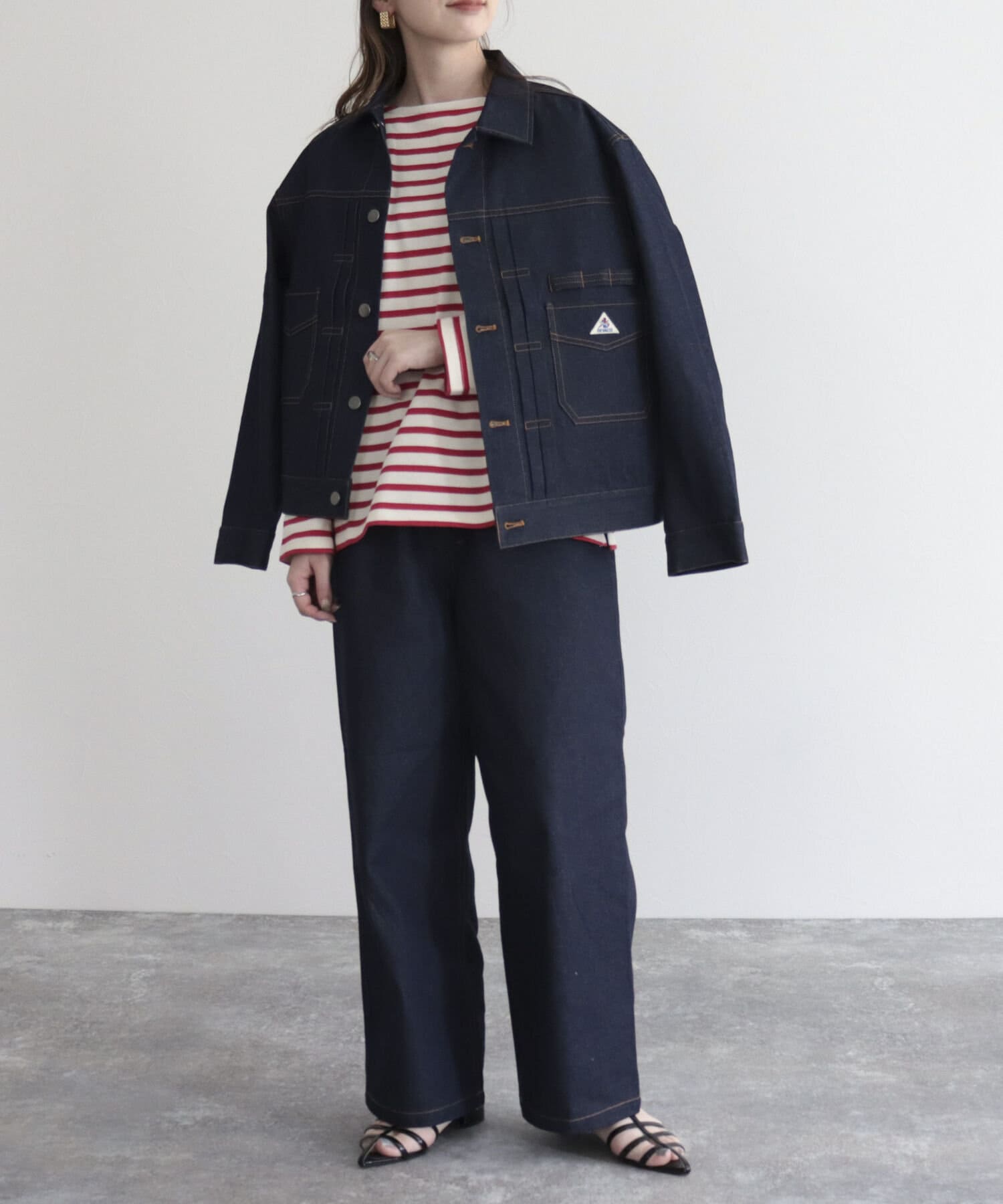 ・暖かい季節でも使いやすい分厚すぎない10ozの生地を使用しているので通年で着用いただけます