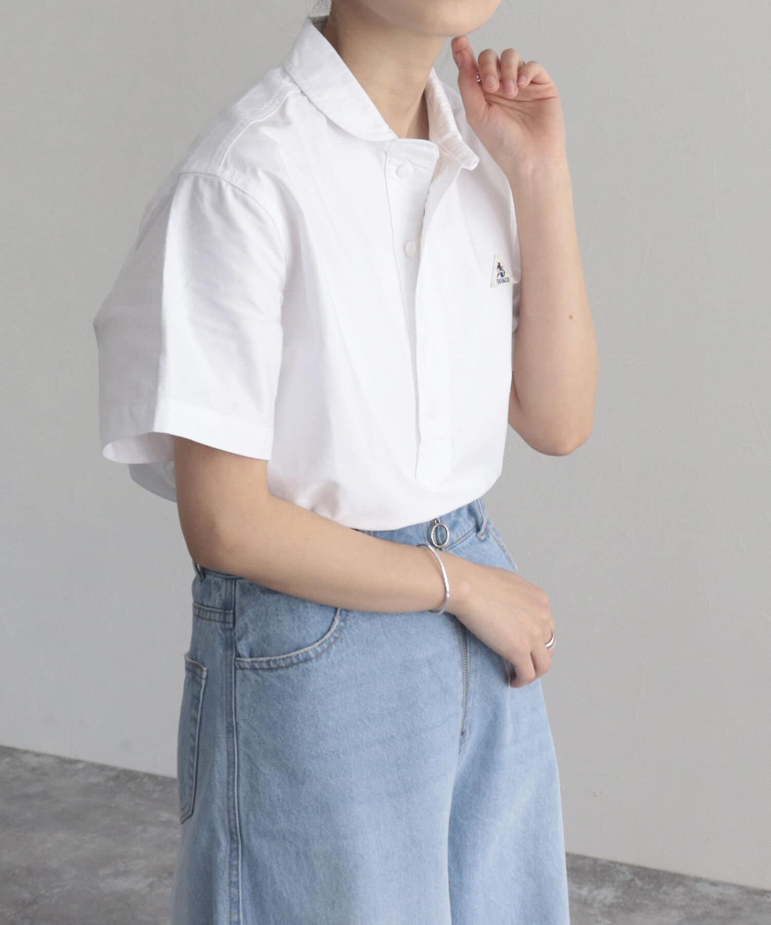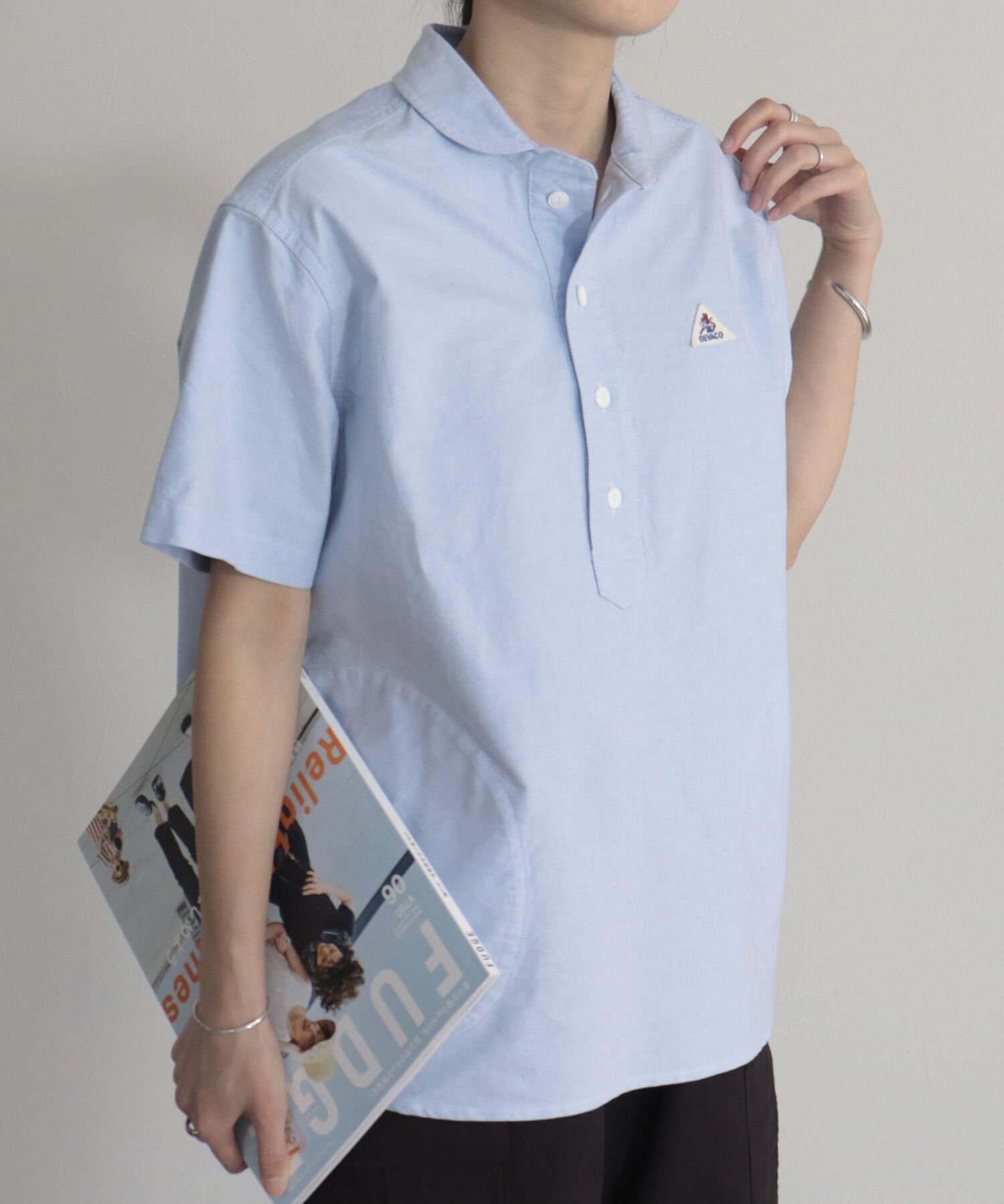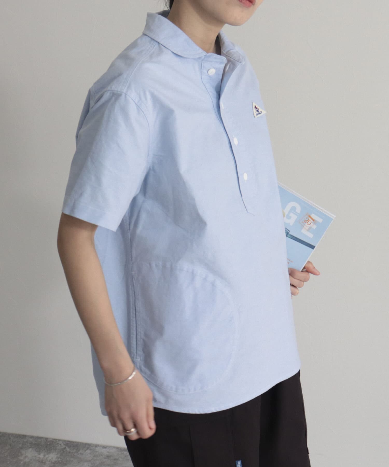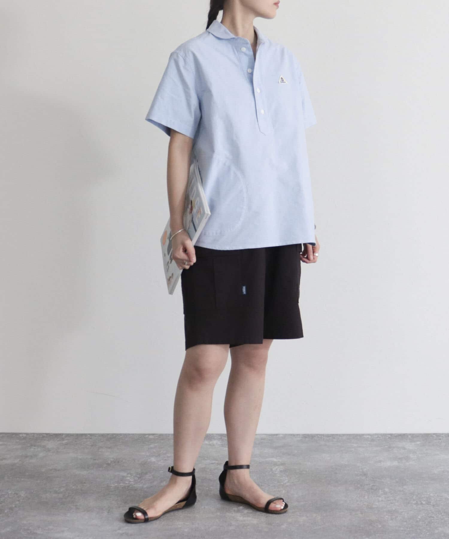 ・ヨーロッパワークウェアの特徴である丸襟のシルエットをシャツに落とし込んだ1枚