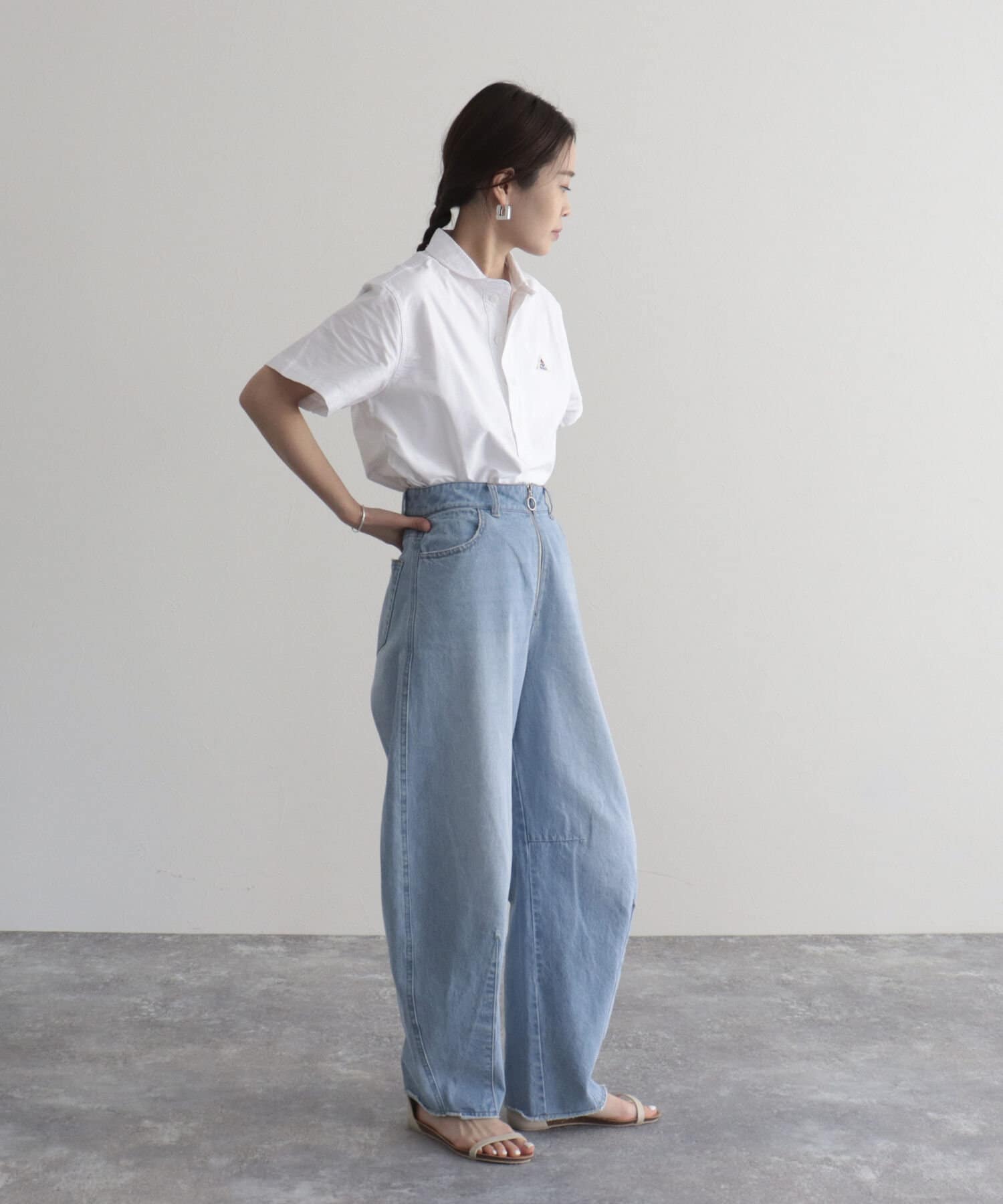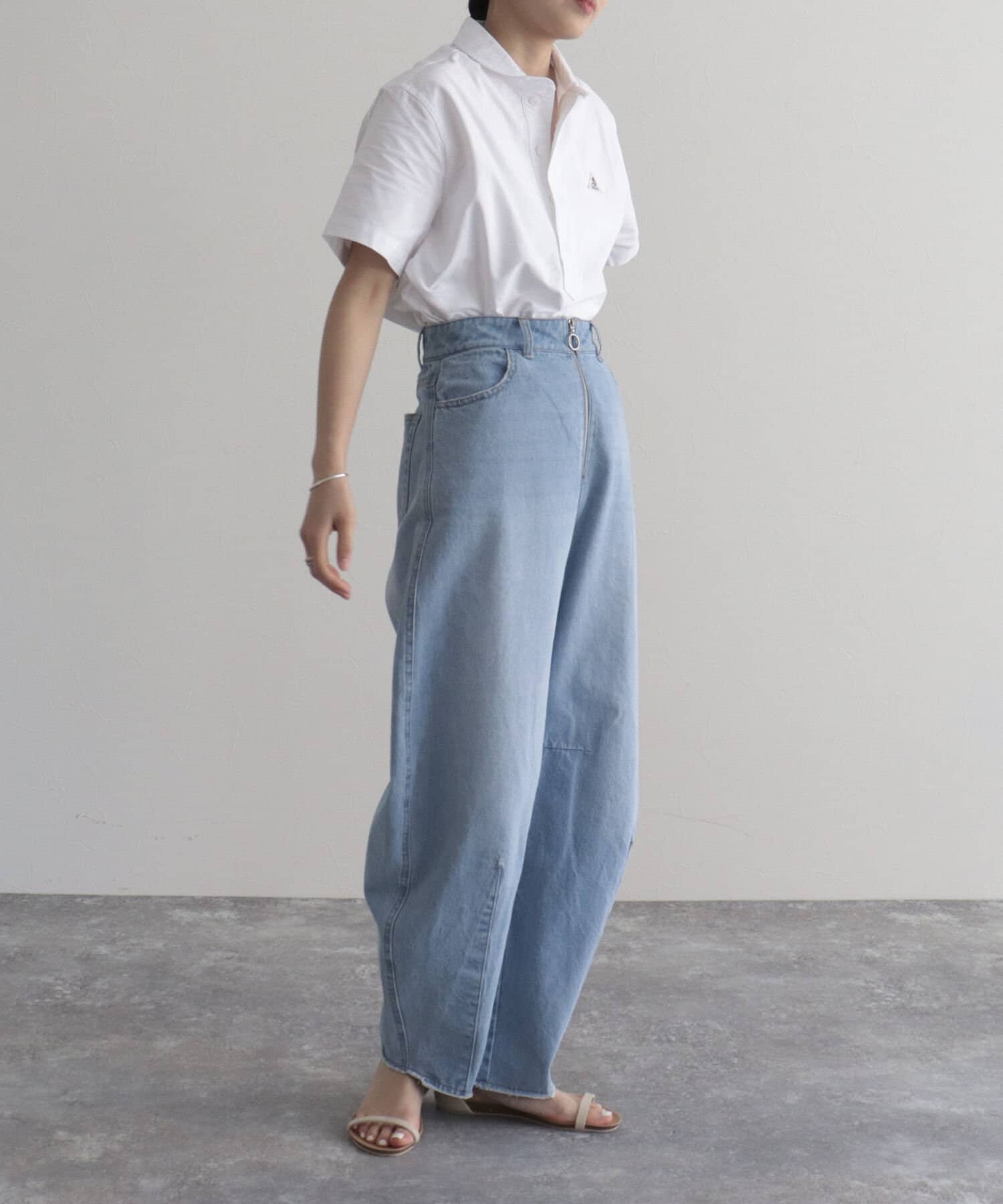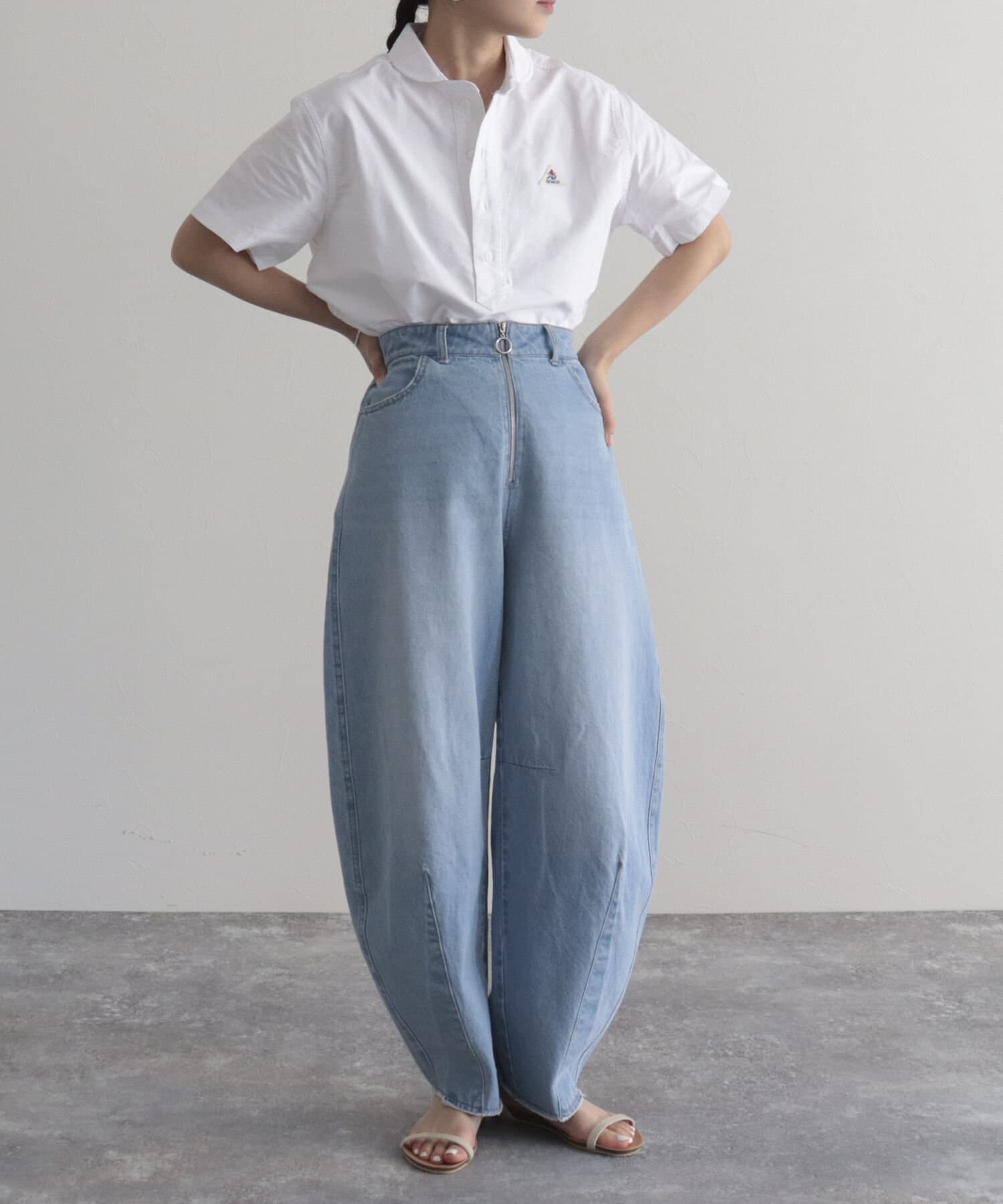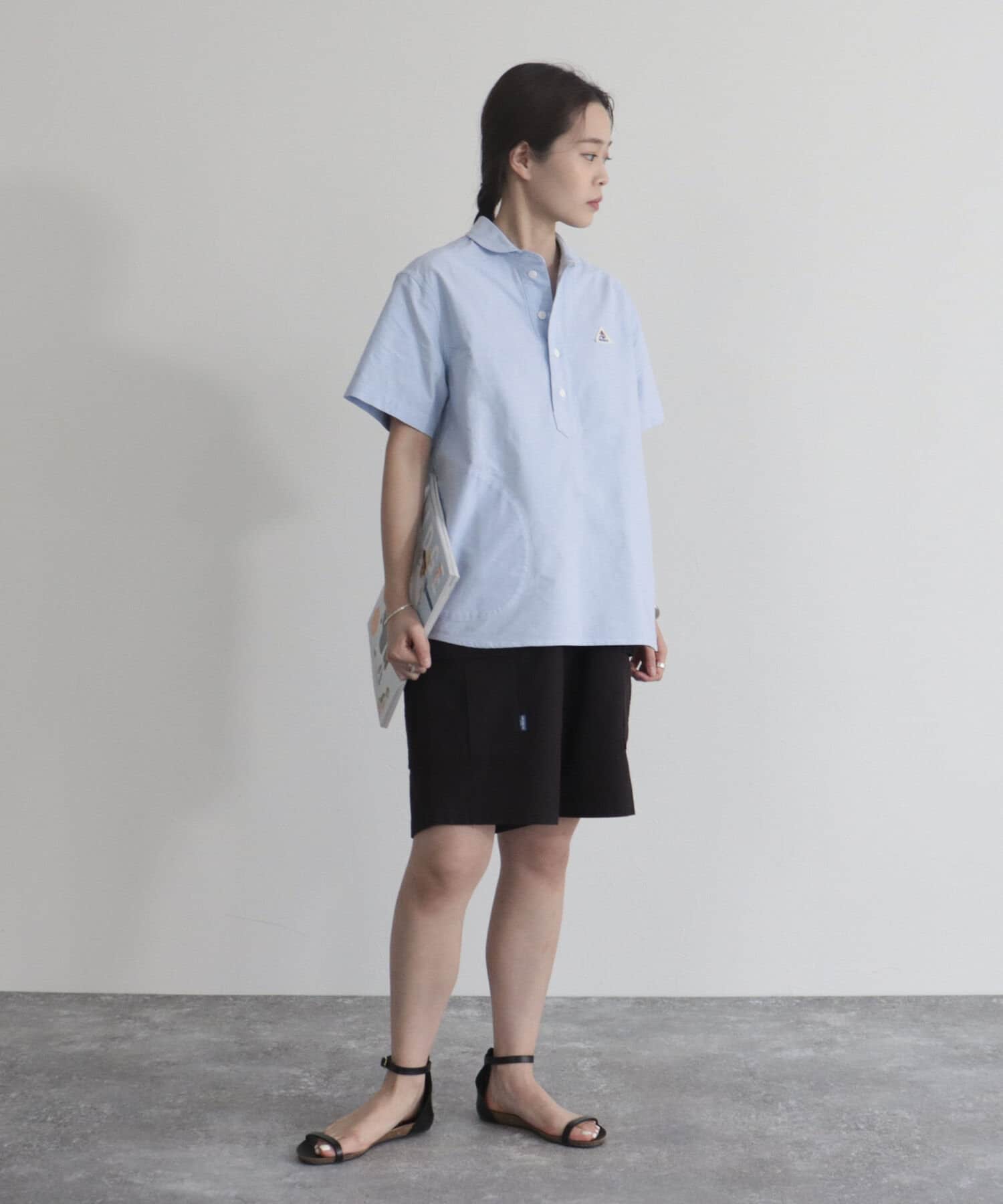 ・ヨーロッパワークウェアの特徴である丸襟のシルエットをシャツに落とし込んだ1枚