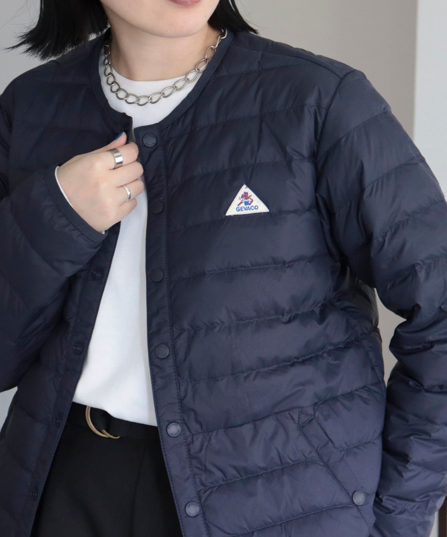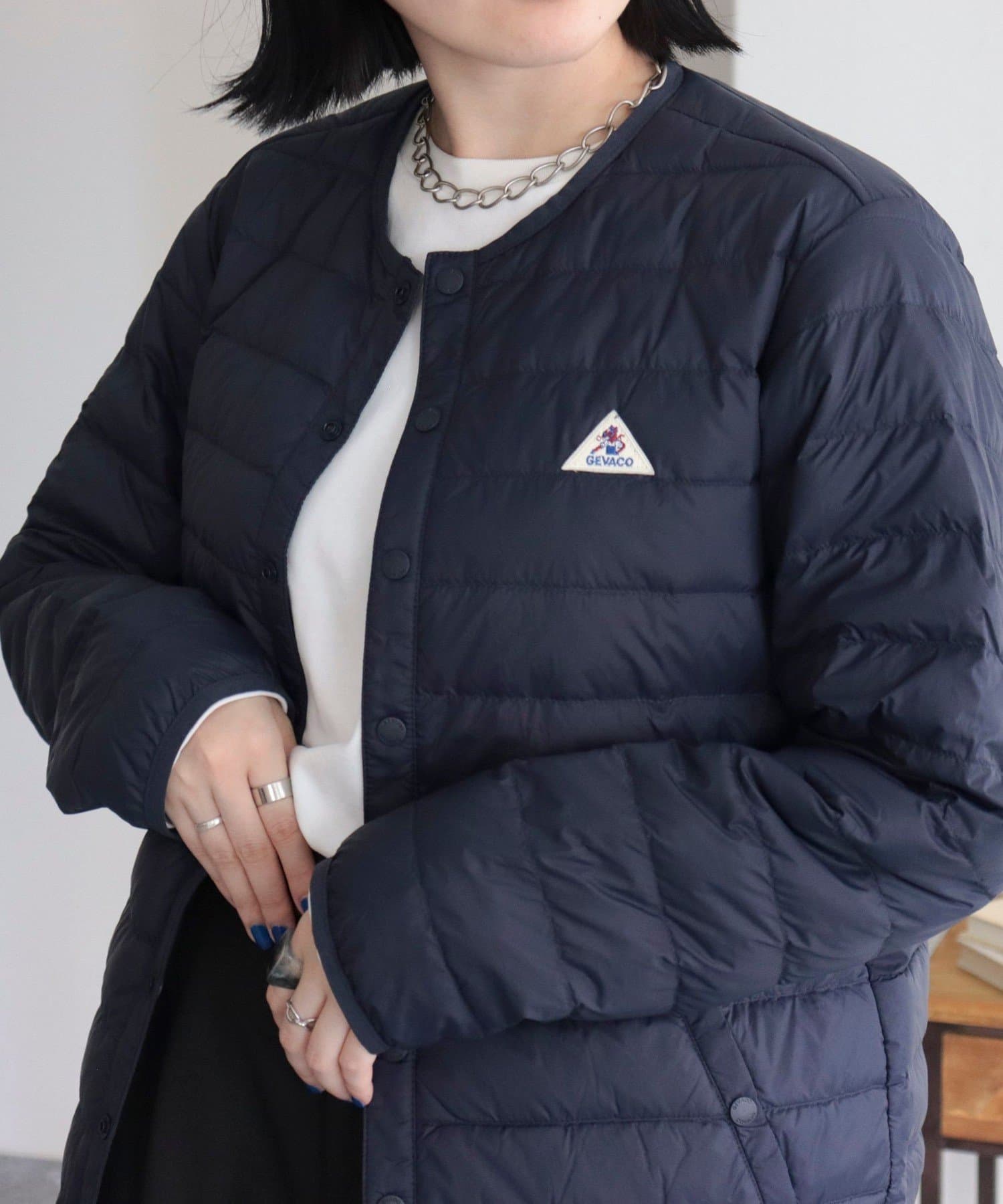 【GEVACO/ゲバコ】ライトダウンジャケット クルーネック ワンポイント