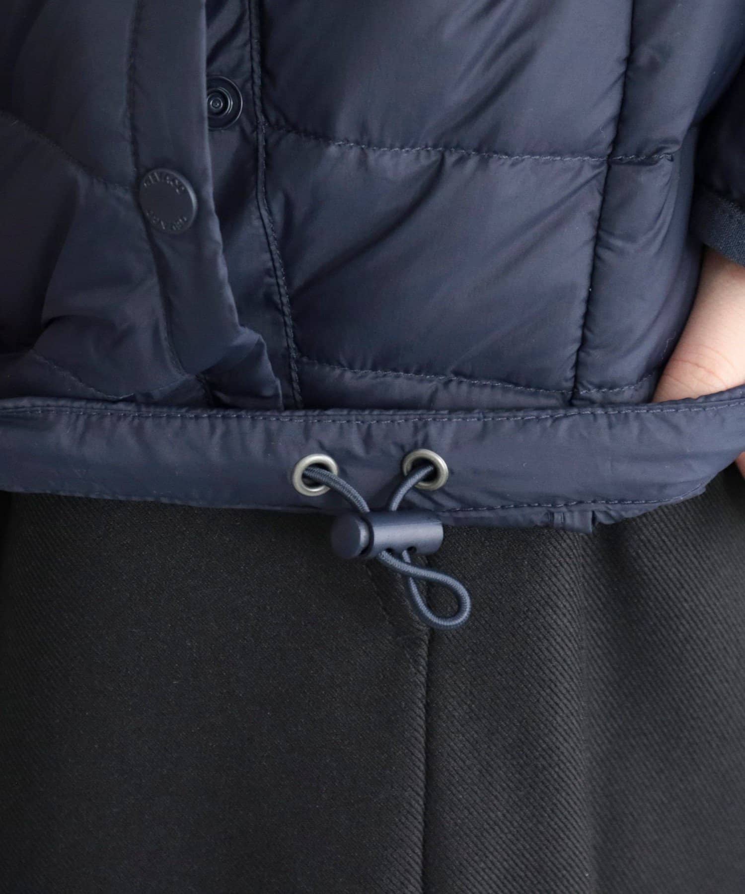 ・フロントは同色のスナップボタン、裾裏にはドローコード入りなので、絞ってシルエットの変化を楽しめます