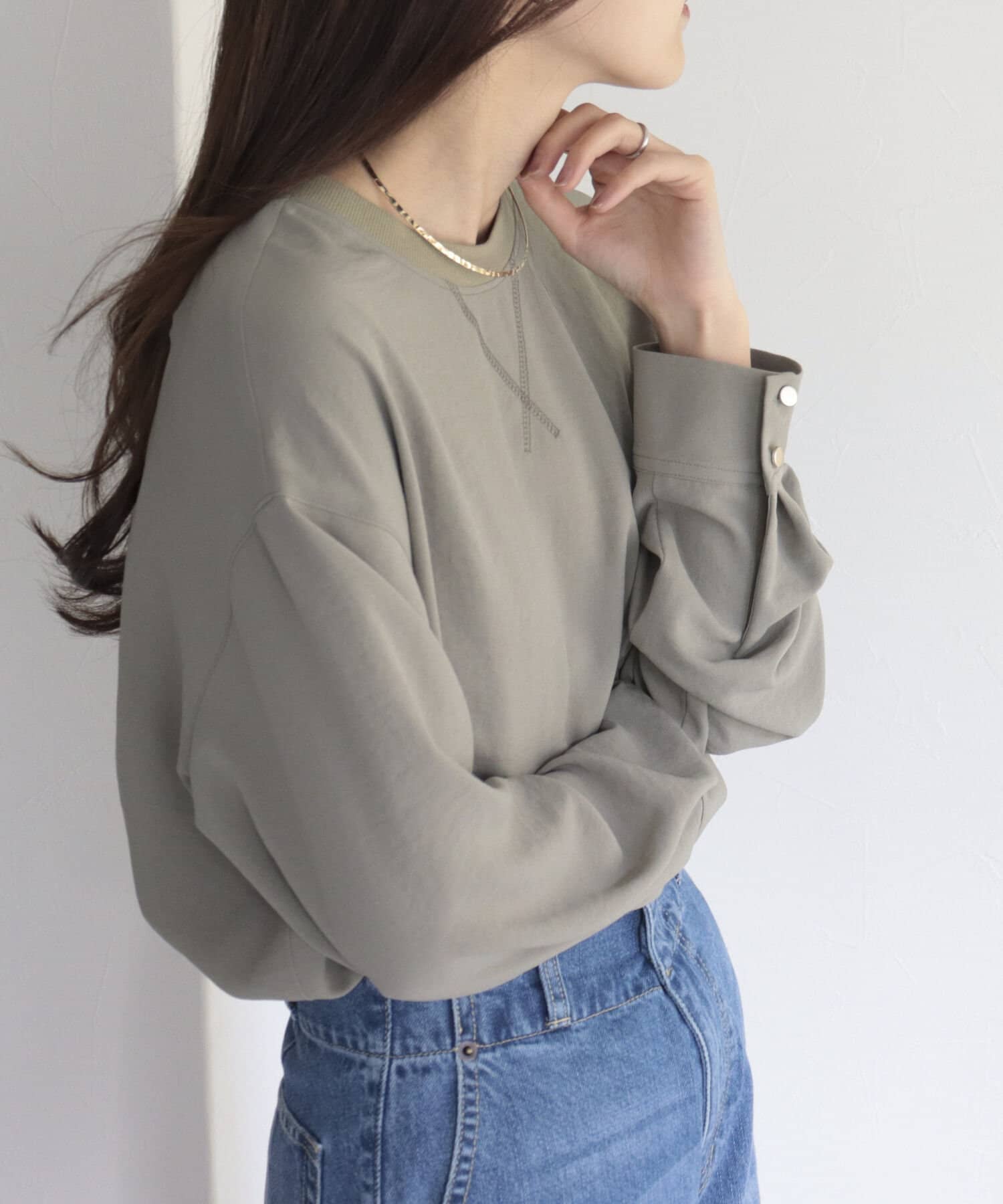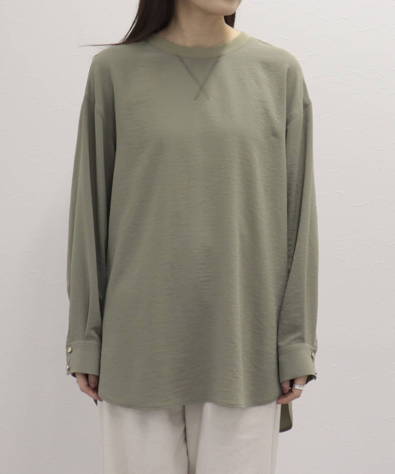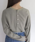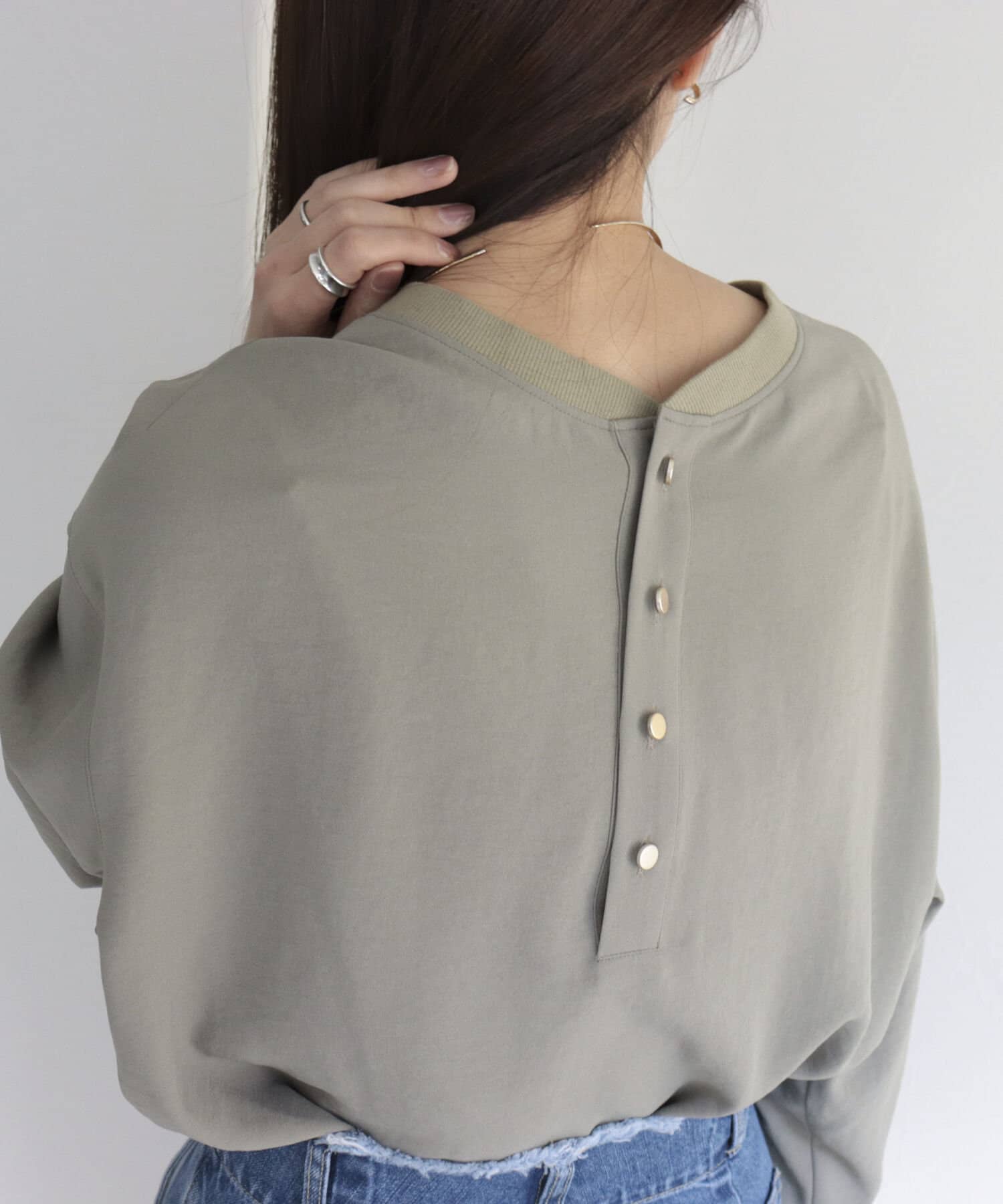 ・首元には釦デザインを施しカットソーのように仕上げているのもこだわりのポイント