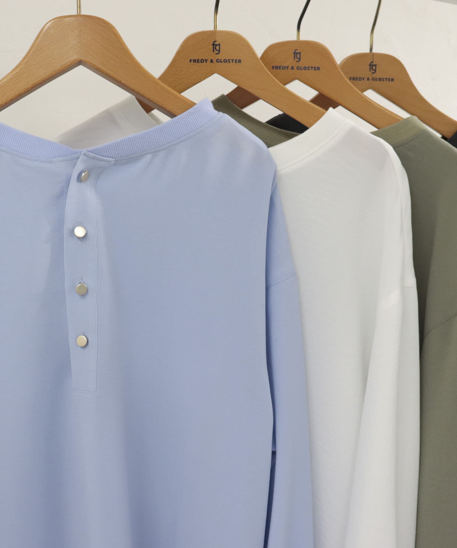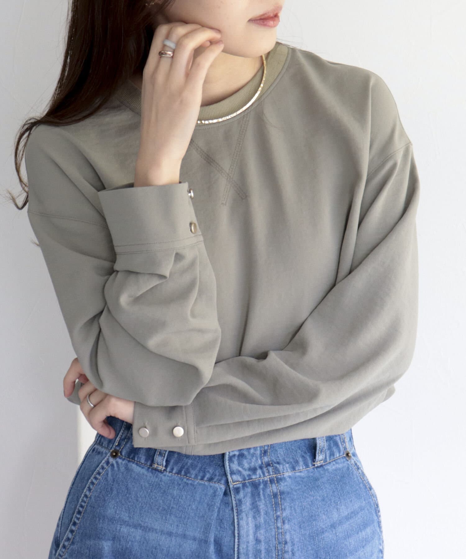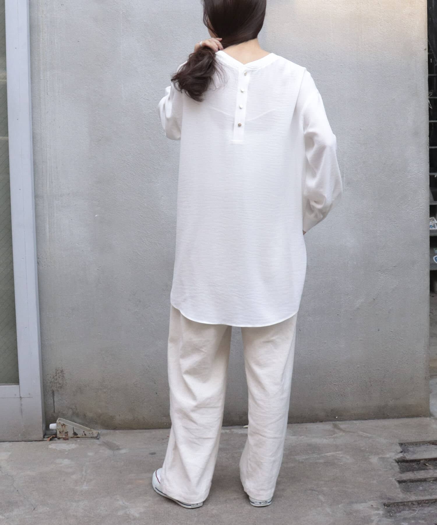 ・首元には釦デザインを施しカットソーのように仕上げているのもこだわりのポイント