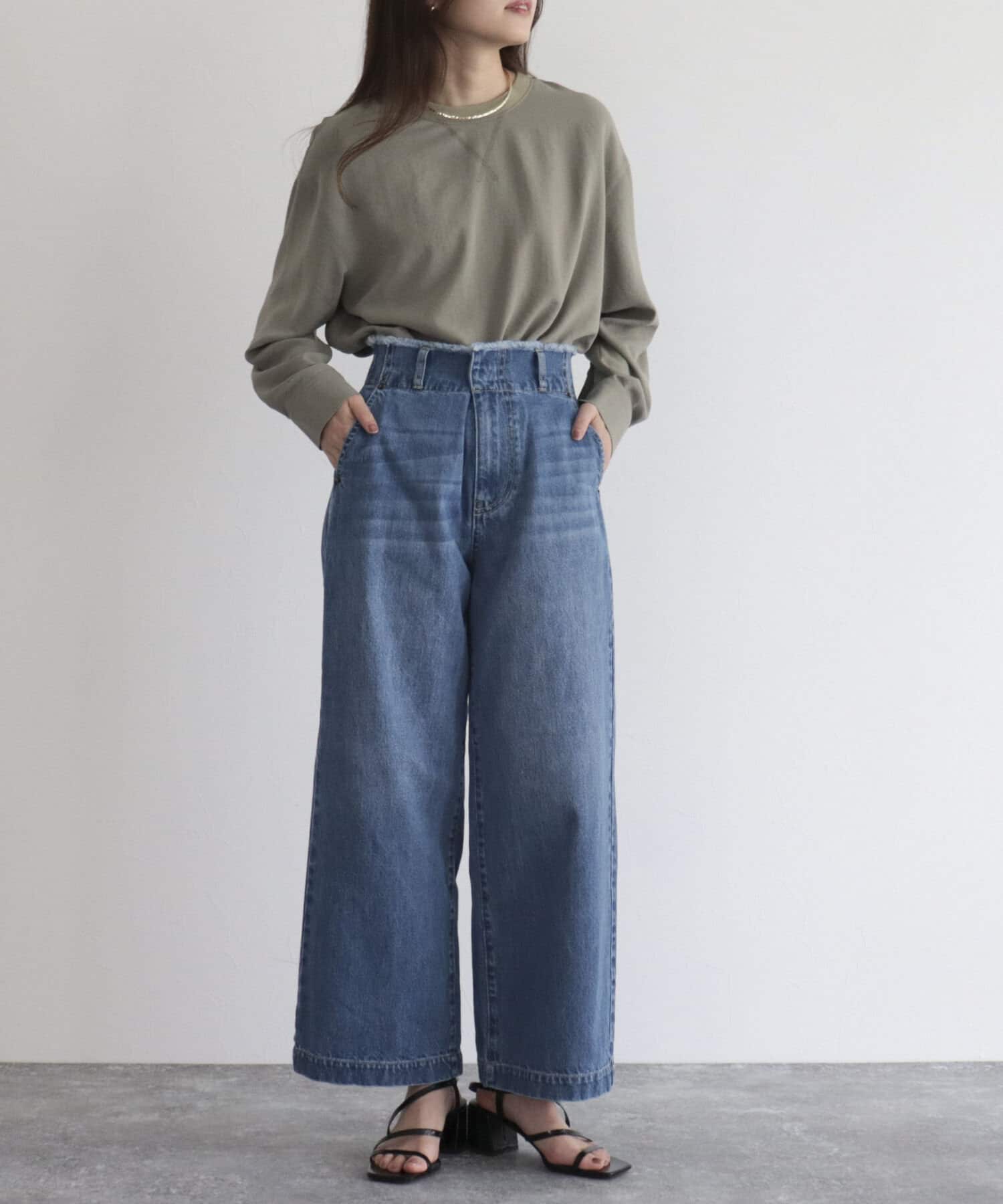 ・ワイドシルエットのデニムと合わせたスタイリングは、カジュアルなのにきちっと感も出るオススメの着こなしです