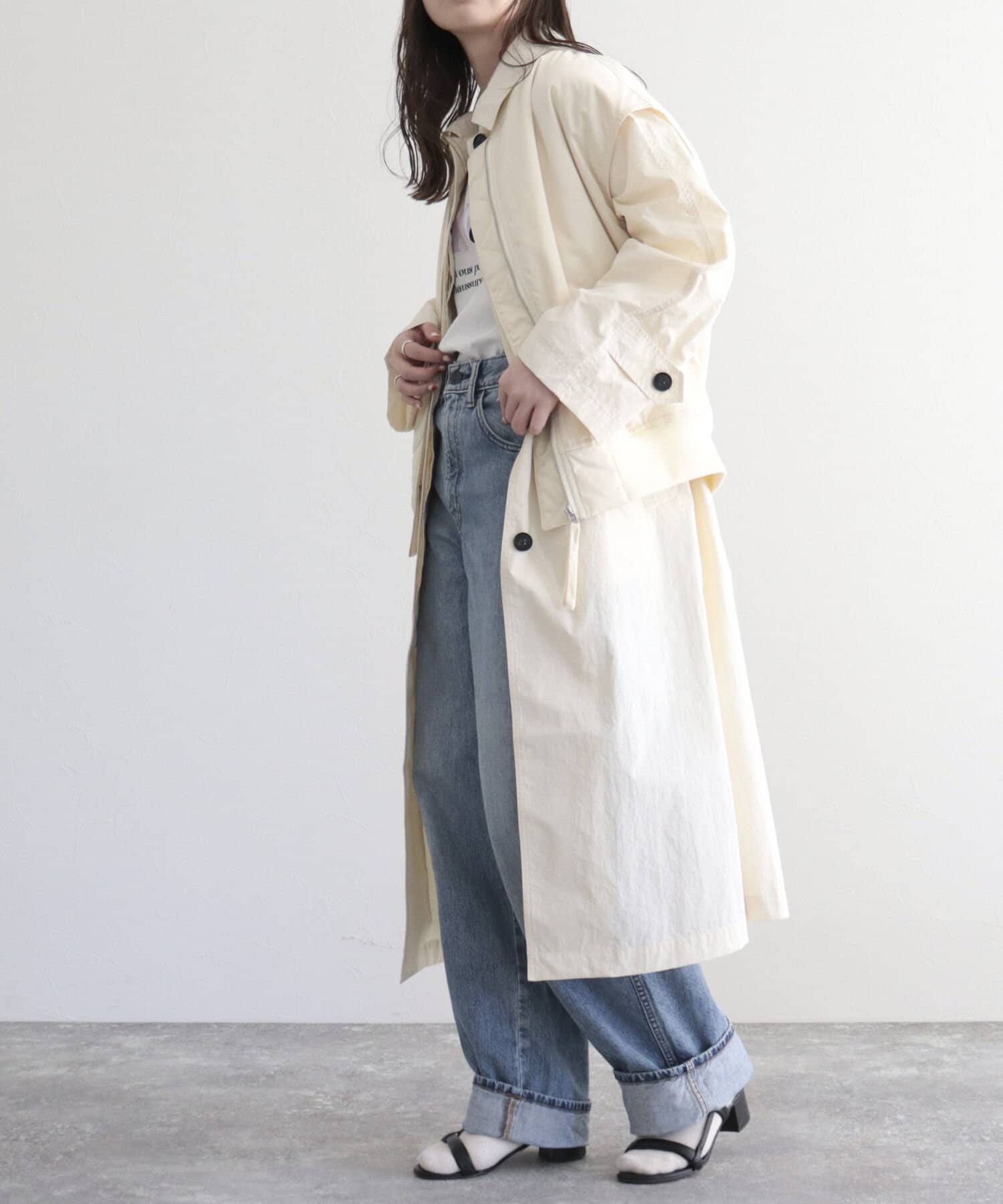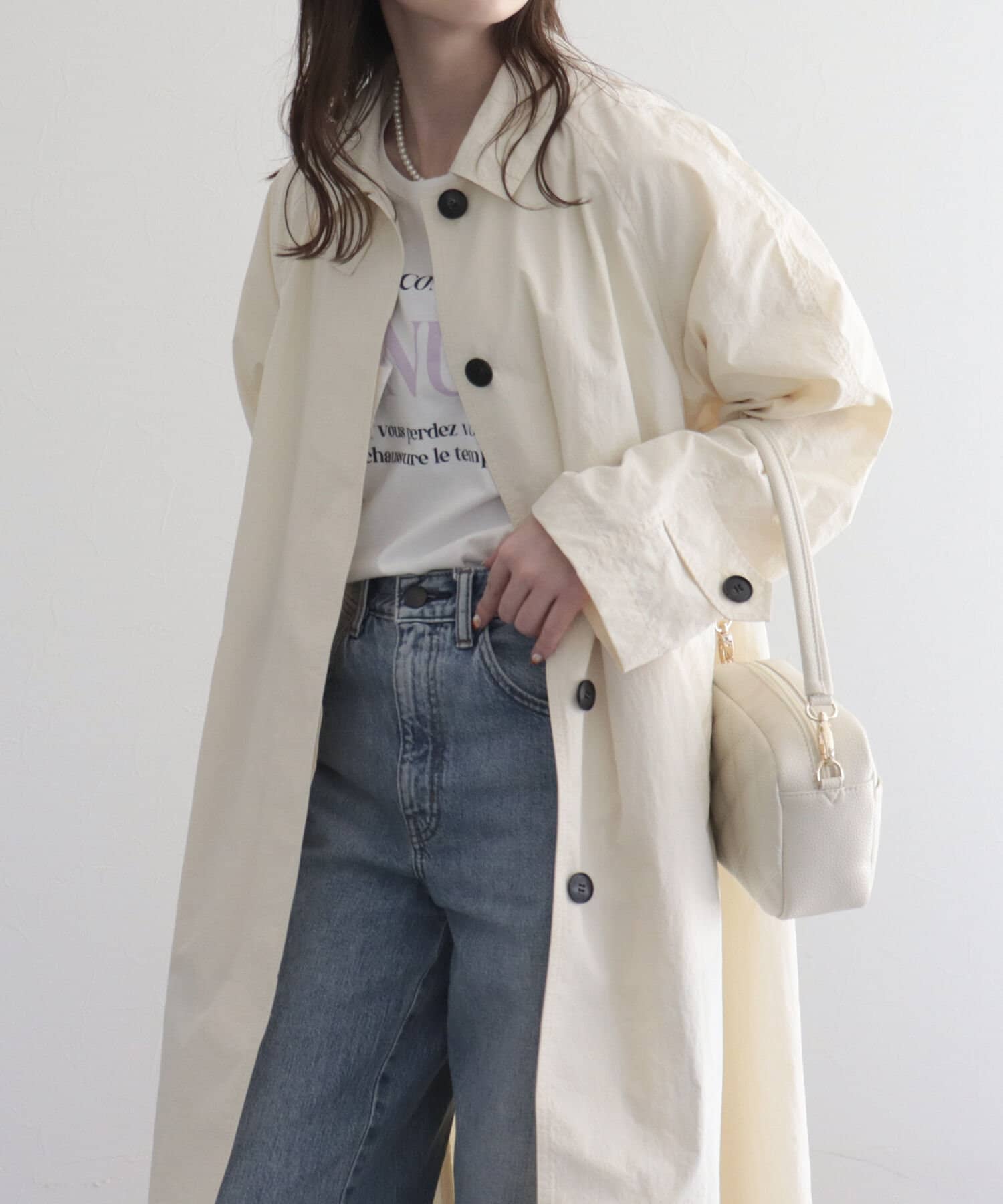 ・程よくゆったりとしたサイズ感なのでニットなどを着こめるので早い時期から活躍するコート