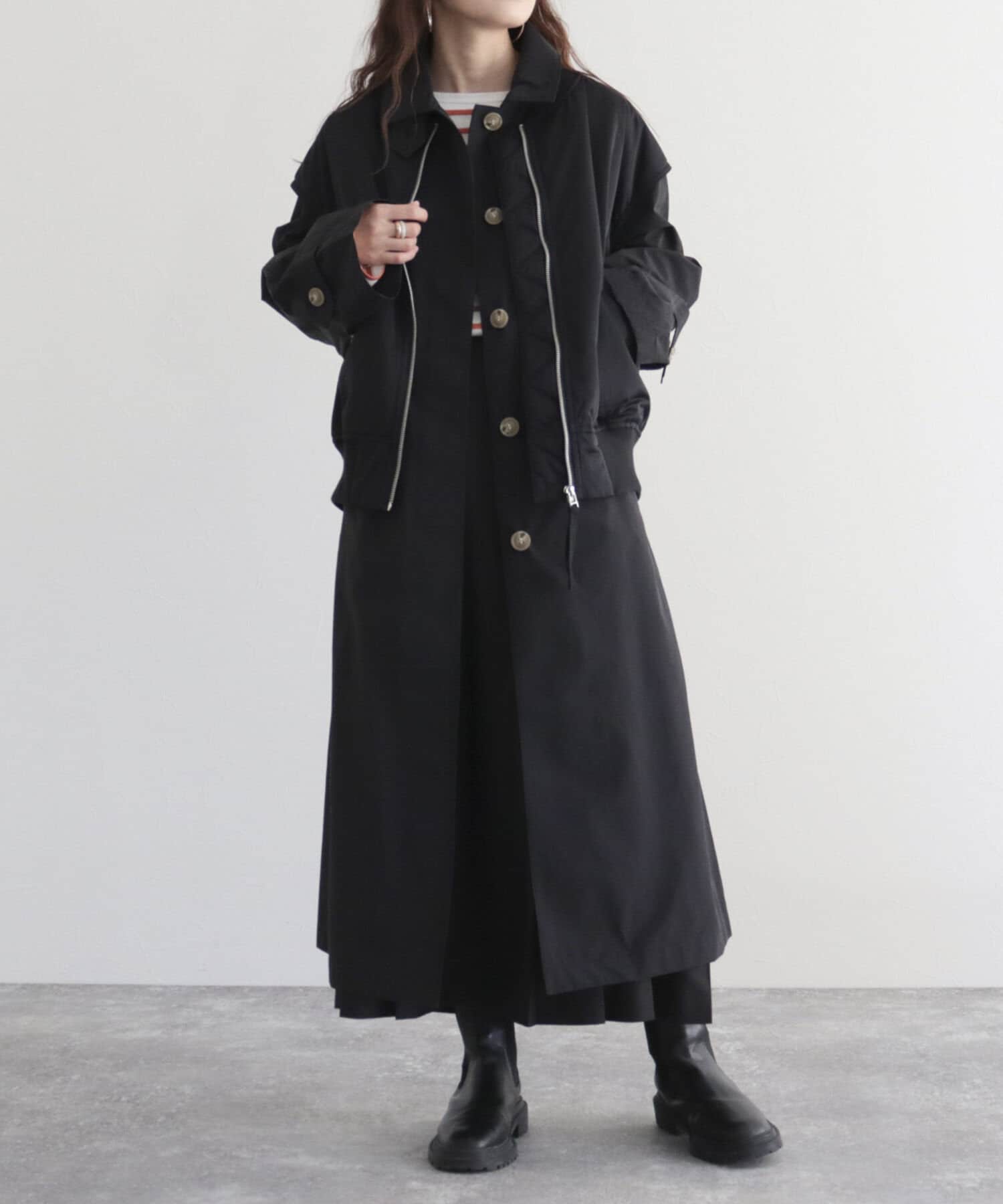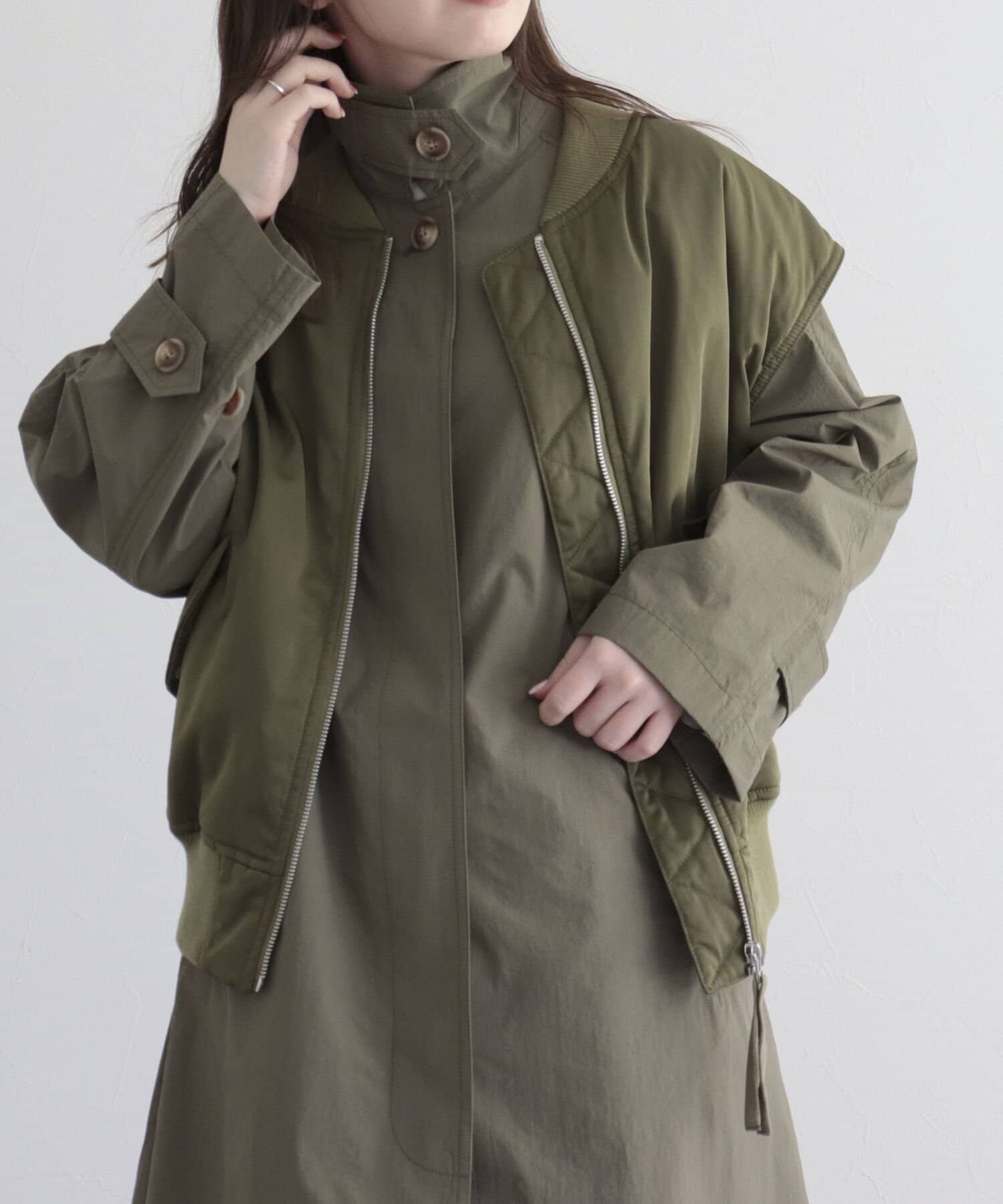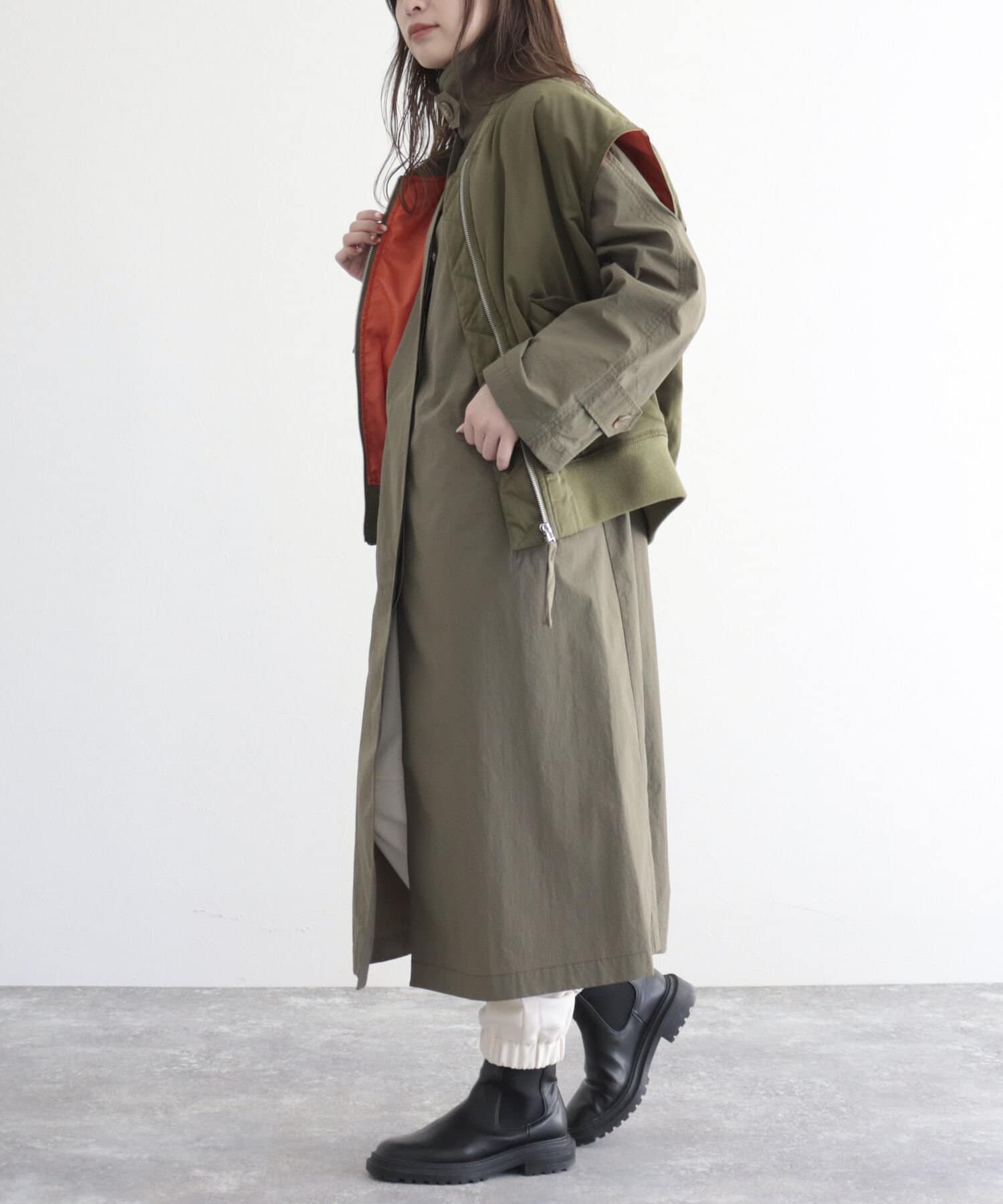 ・ゆったりしすぎていないシルエットなので、MA1ベストをレイヤードしたスタイルも◎