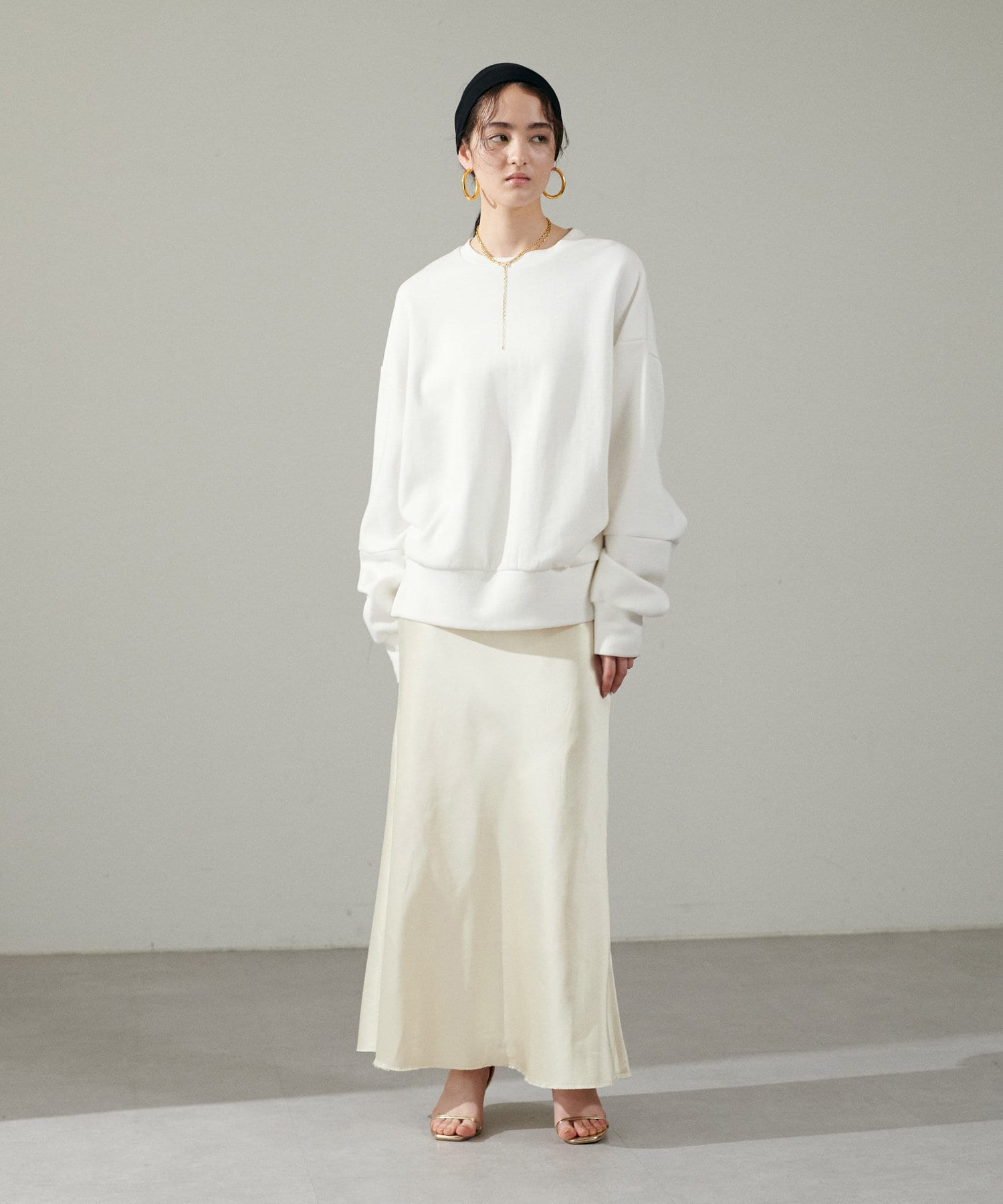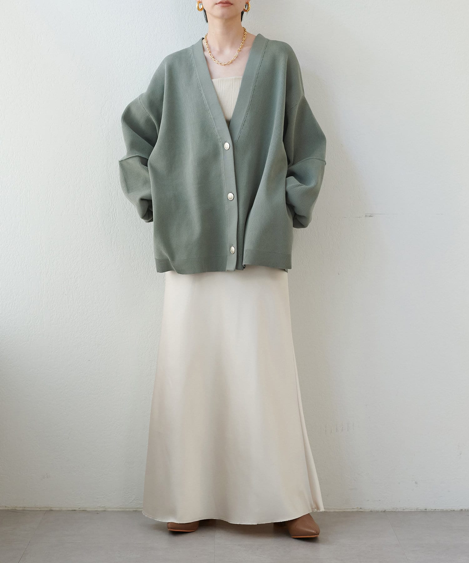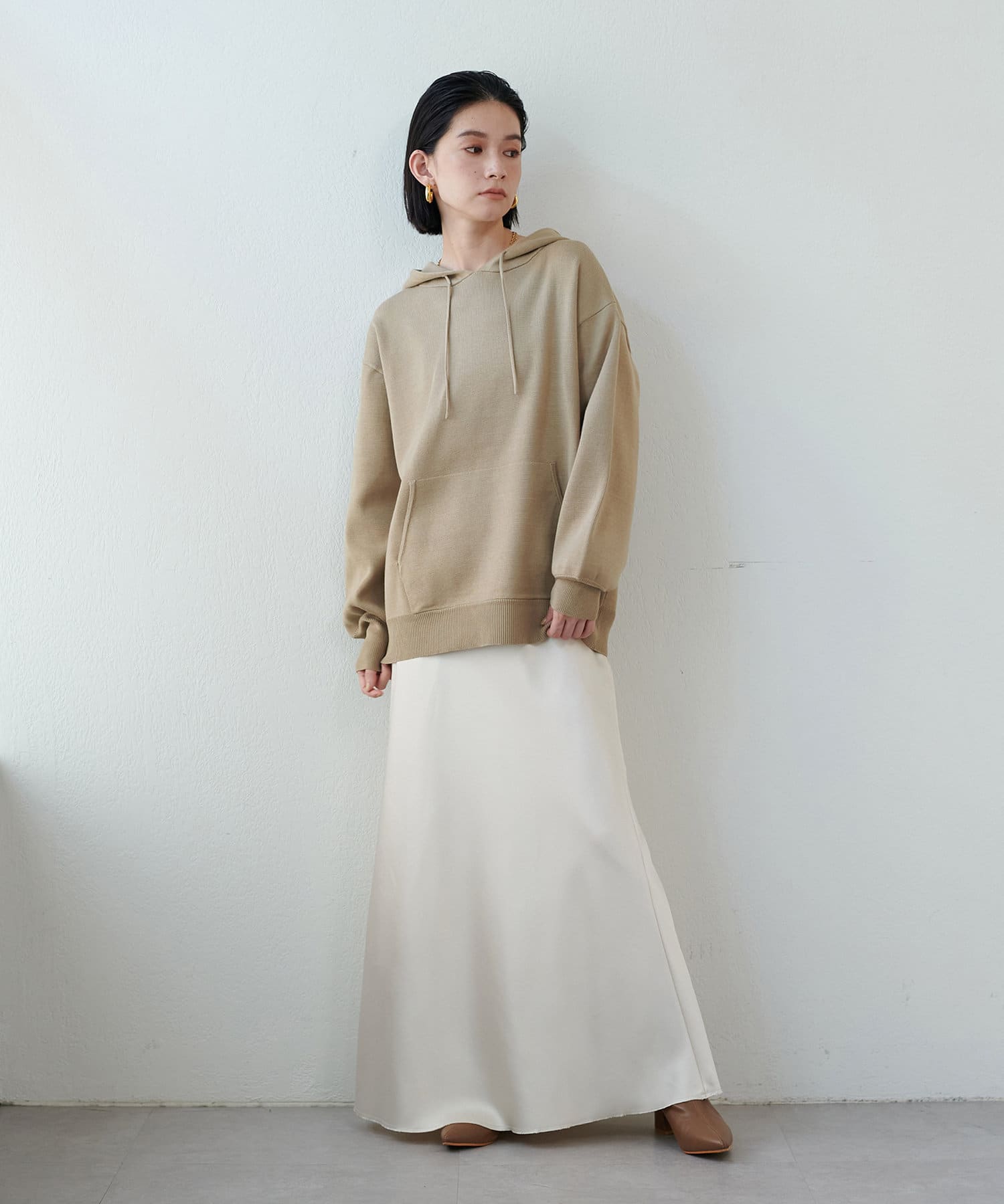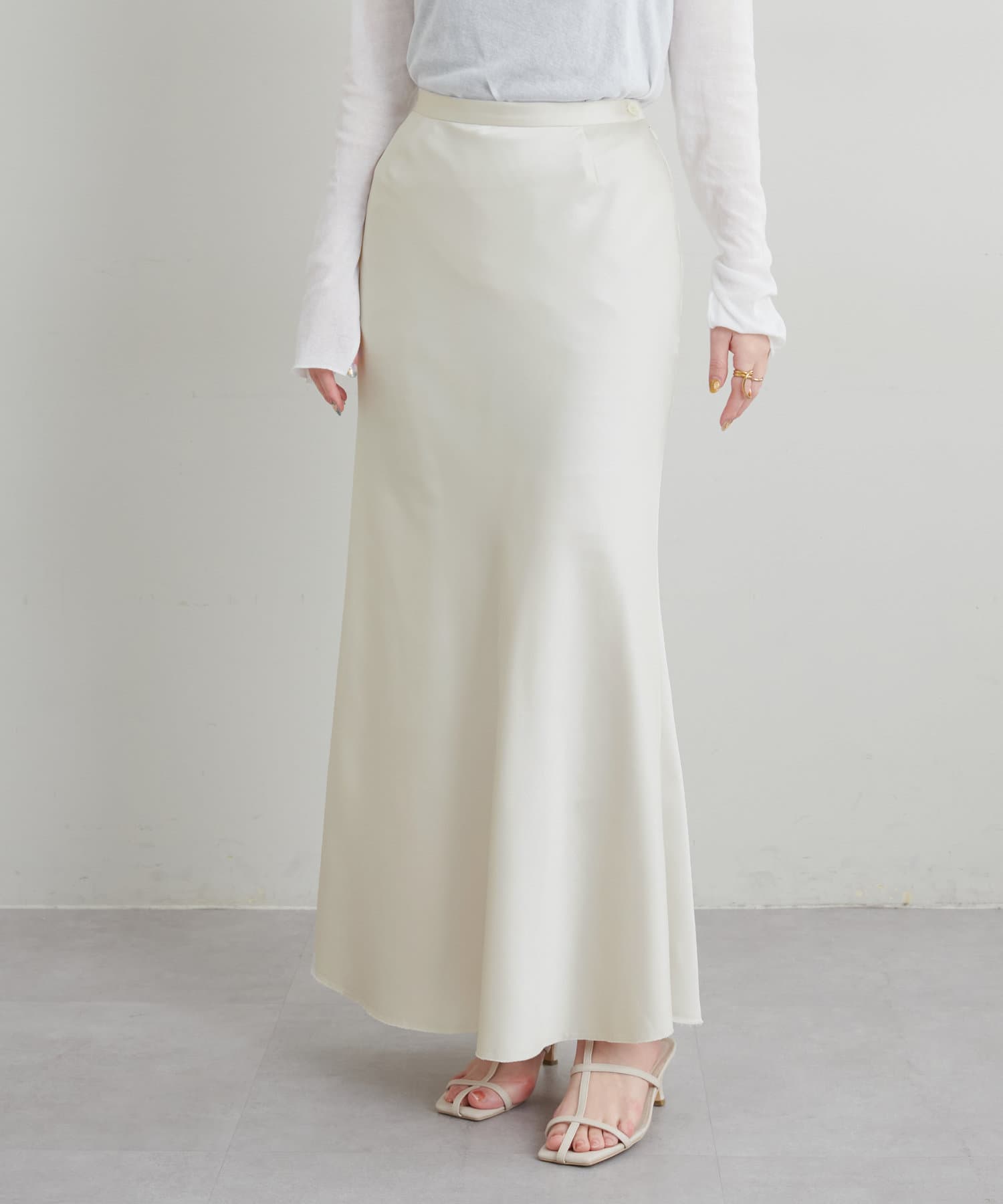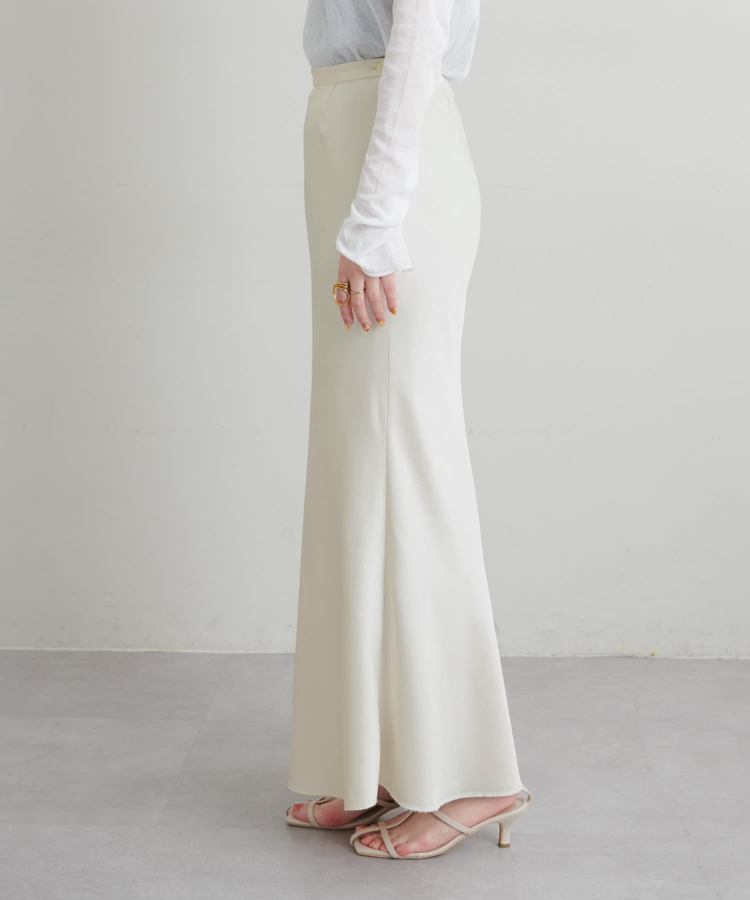 ストンと落ちるシルエットにこだわったシンプルなナロースカート。