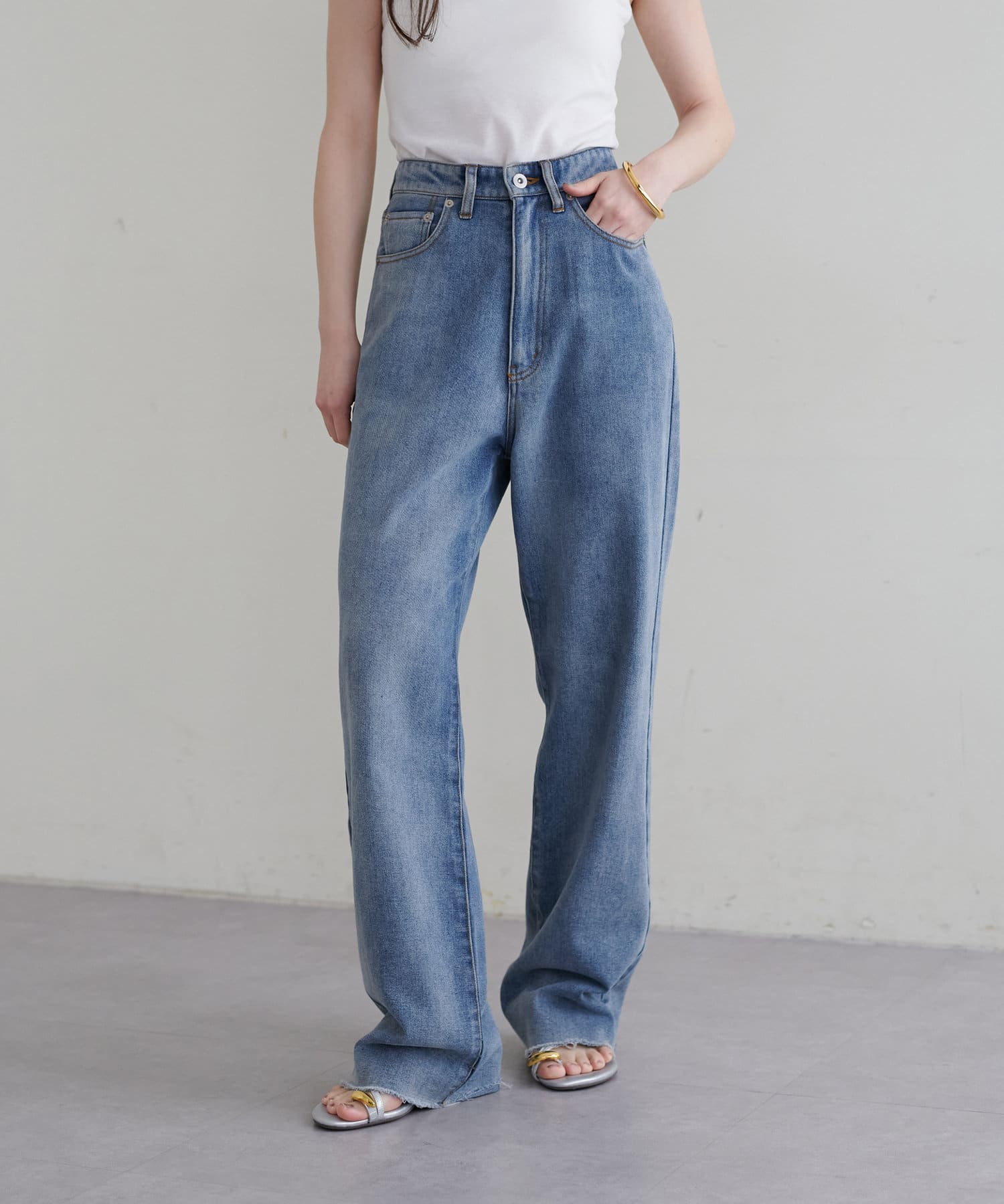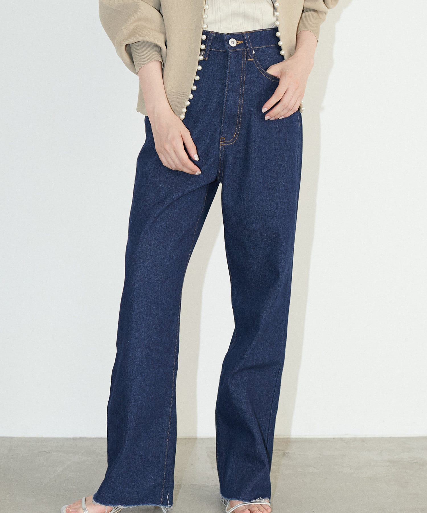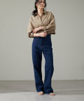 美しいシルエットを追求し、深めの股上でスタイルアップ効果抜群。