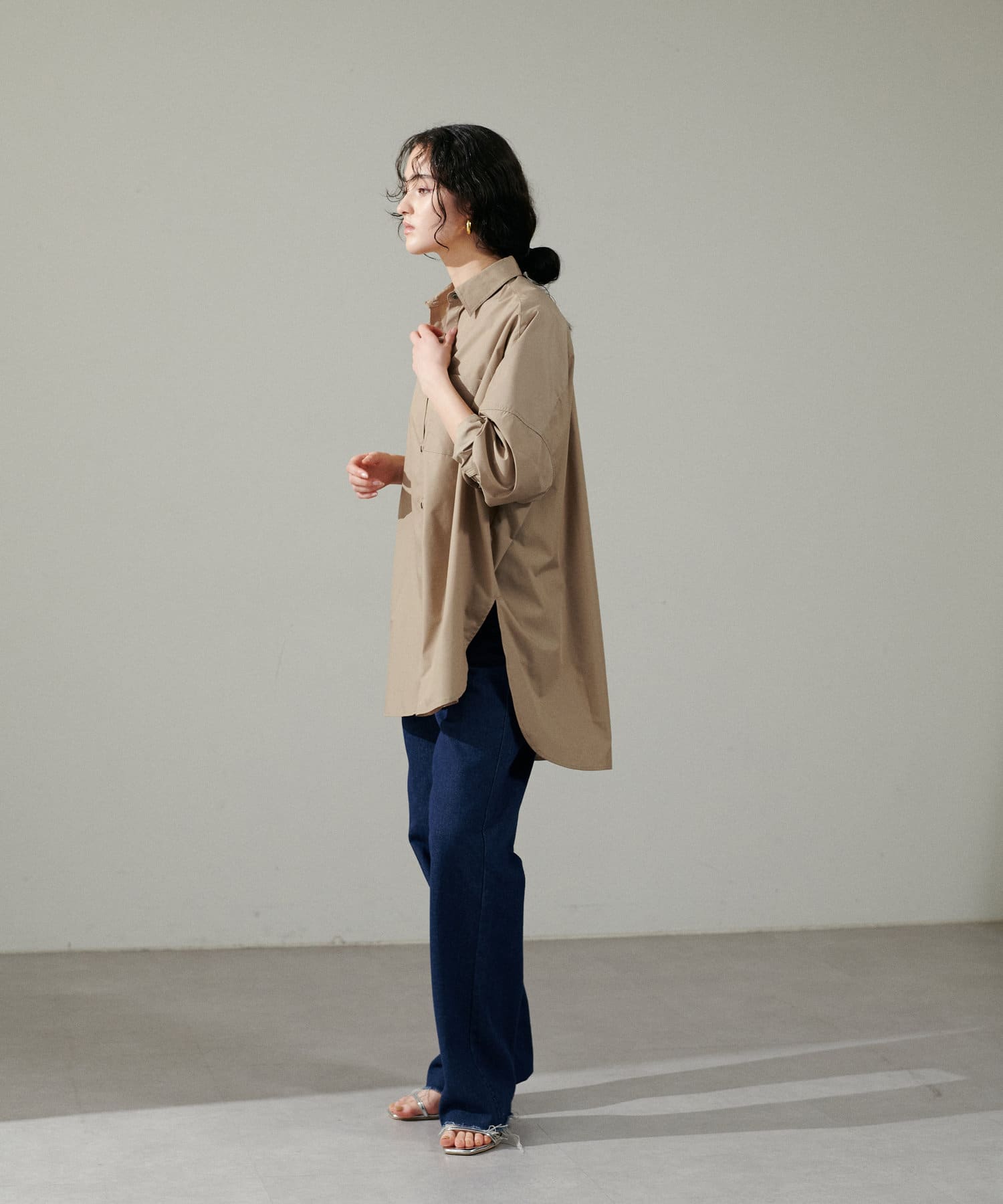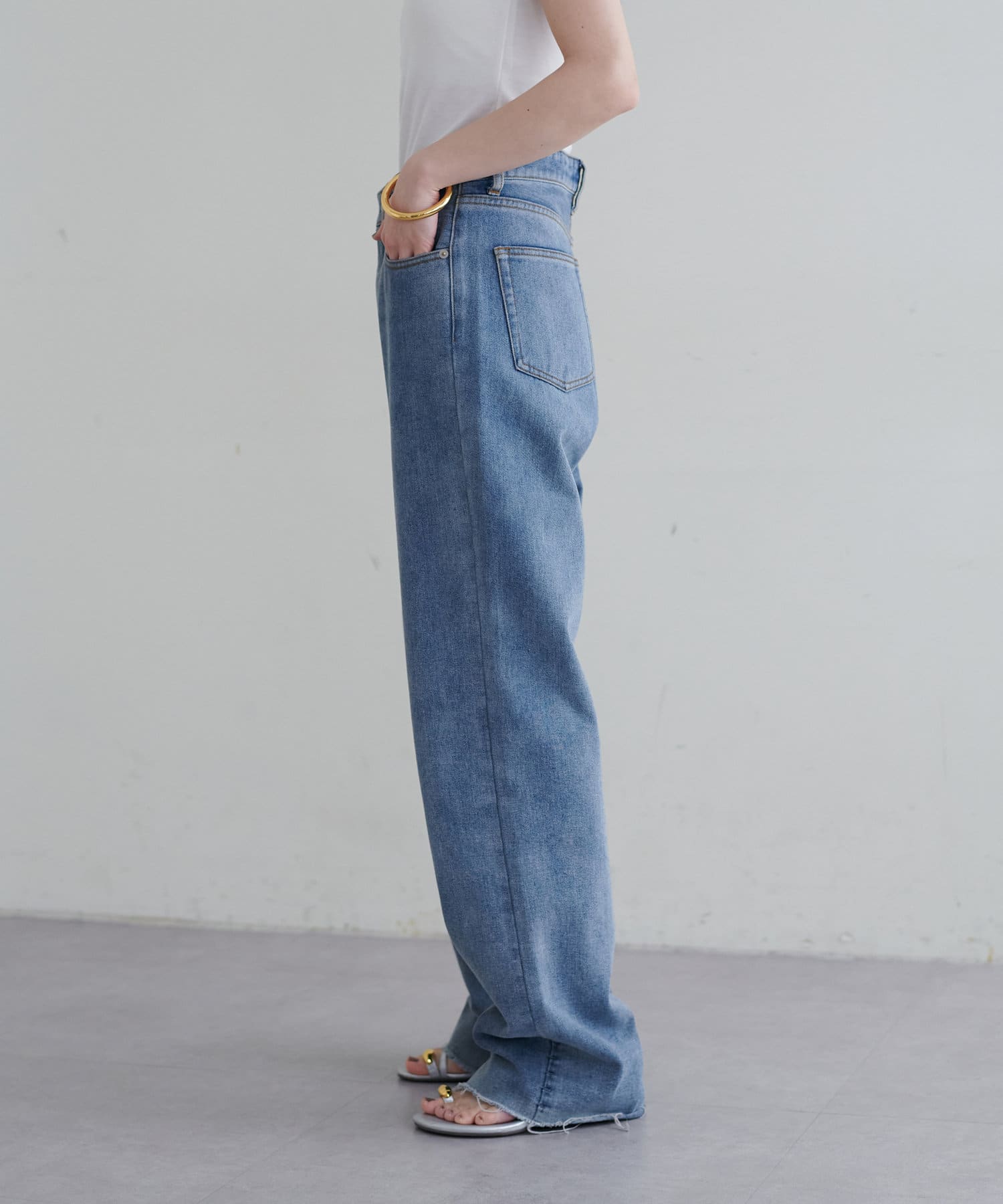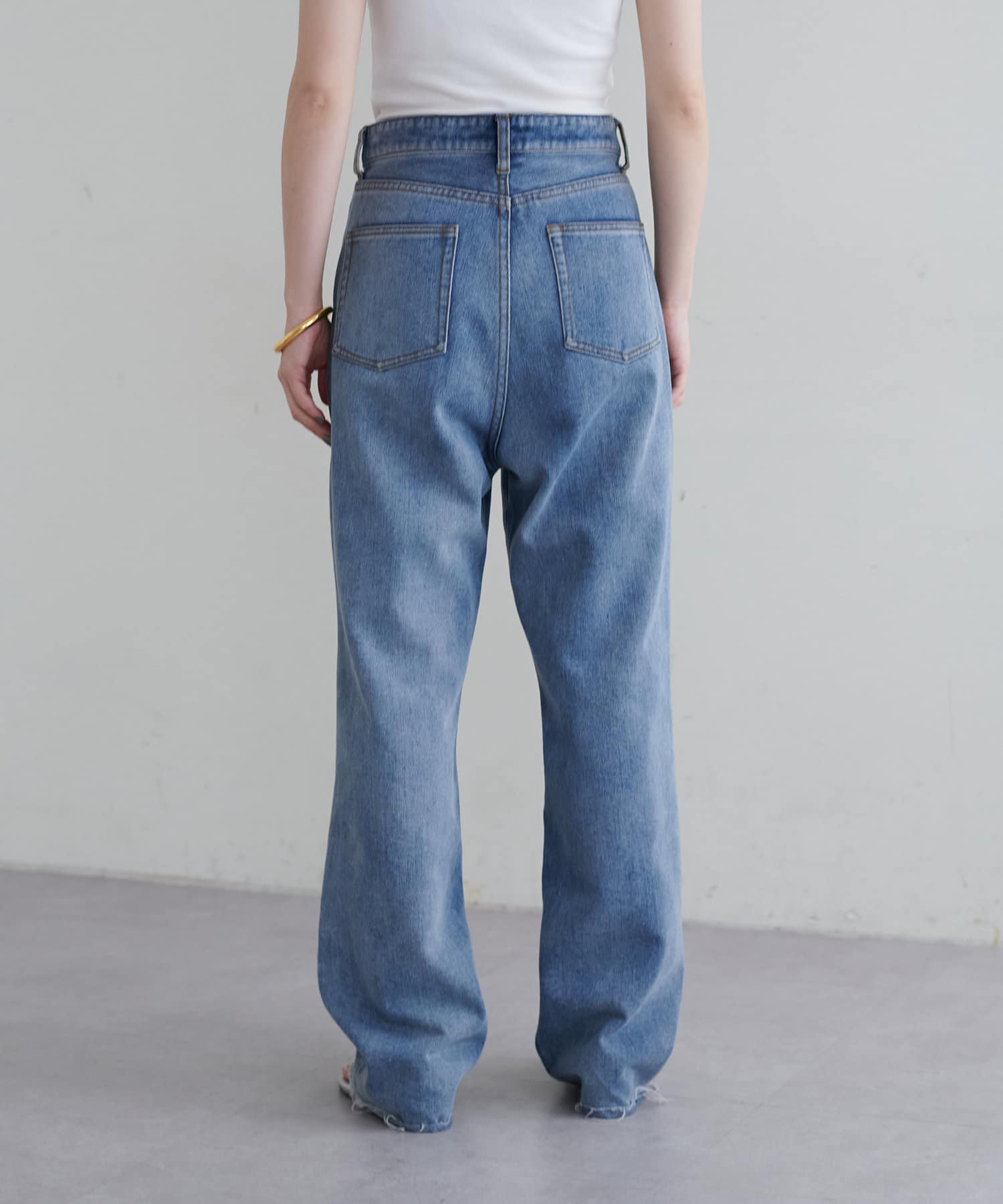 ロング丈に設定しているので、裾をワンバウンドして長めで穿いたり、ワイドに折り返したり、ジャストサイズでお召し頂いたりと、様々なシルエットと丈感が楽しめます。