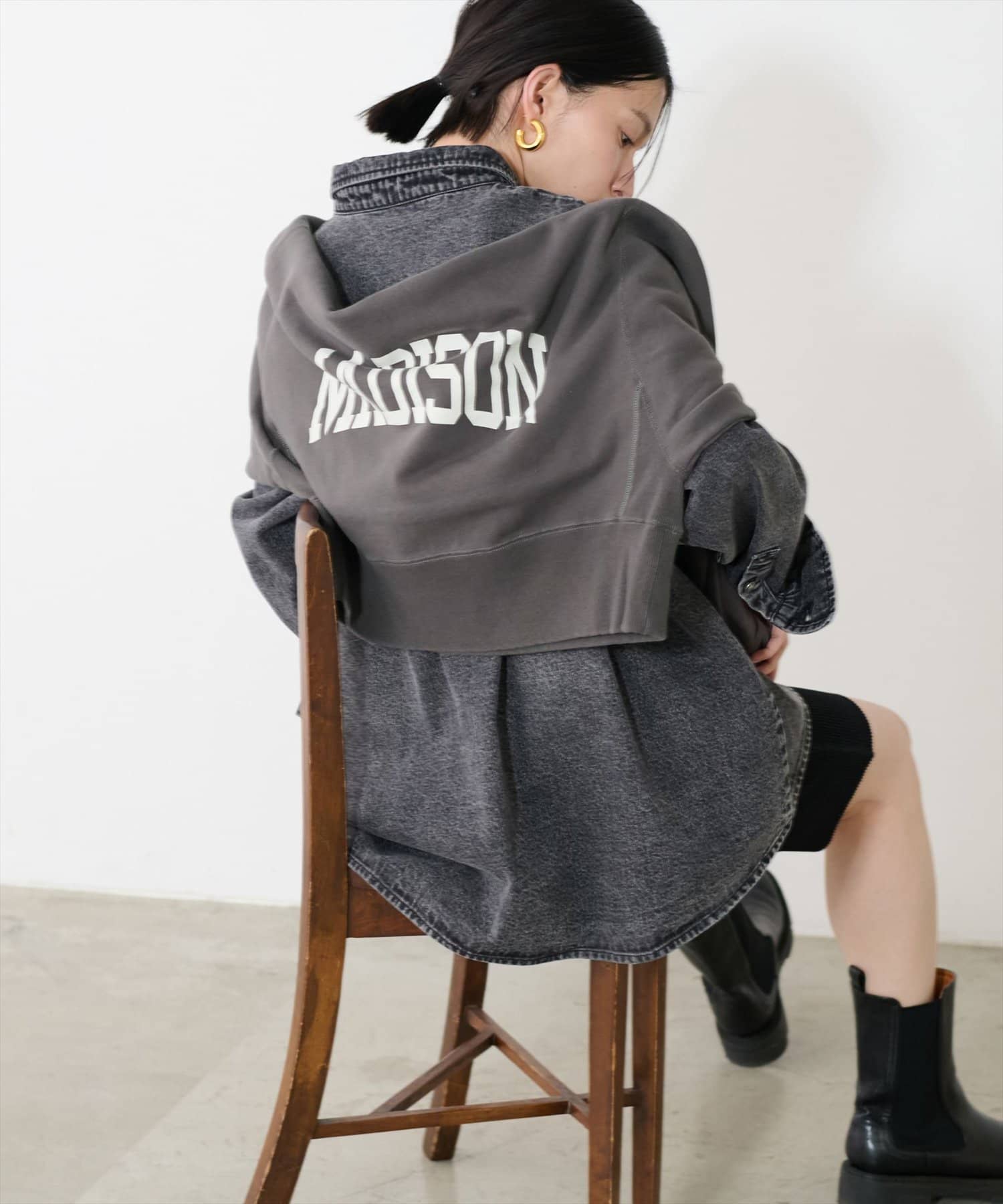 ウォッシュ加工が施されており、コーディネートのアクセントになる一着です。