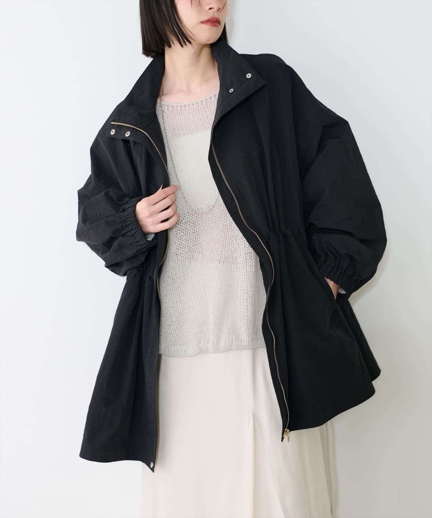 ワイドな身幅ですがコンパクトな着丈と裾のドロストデザインでバランスの取れたスタイルに。