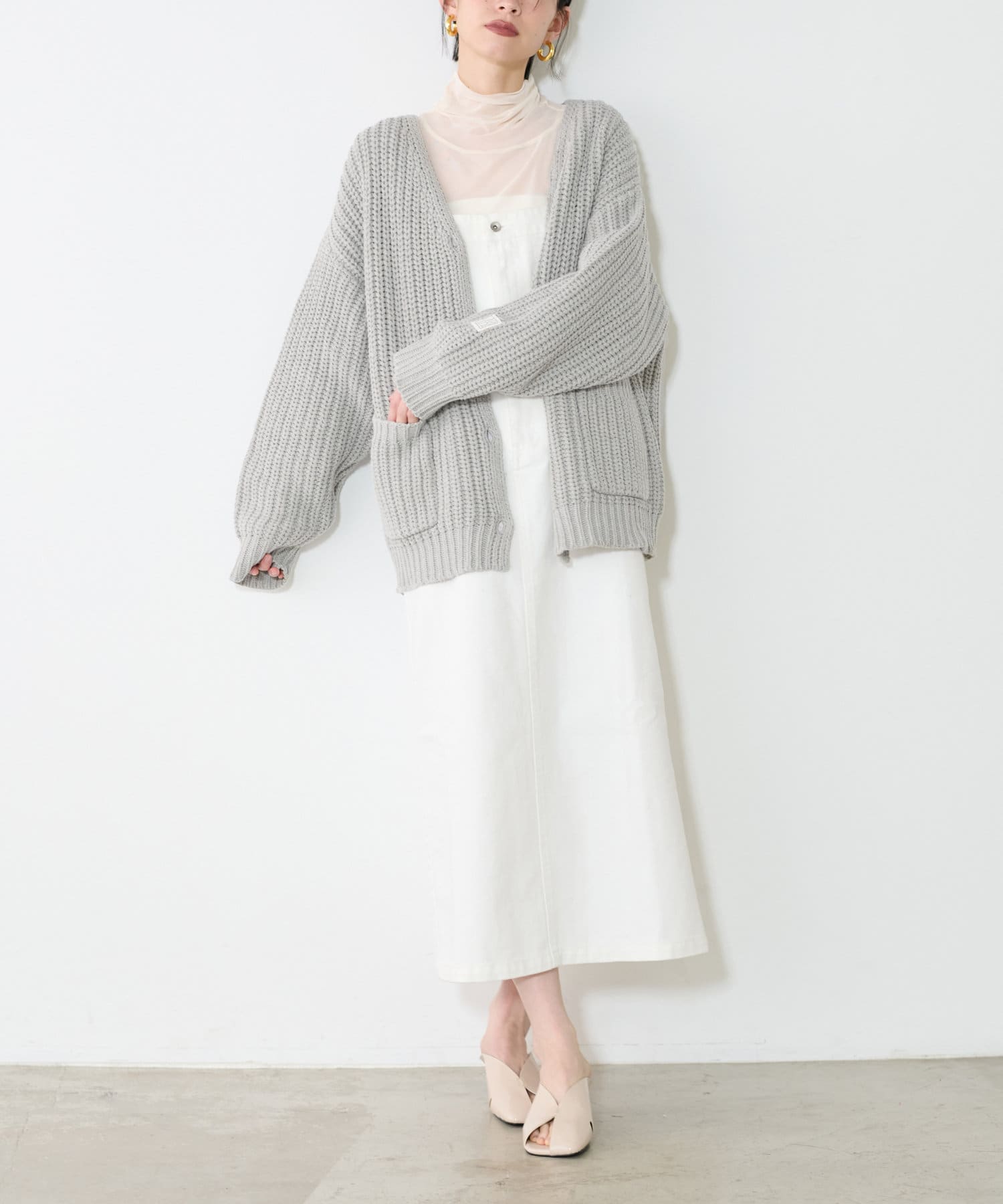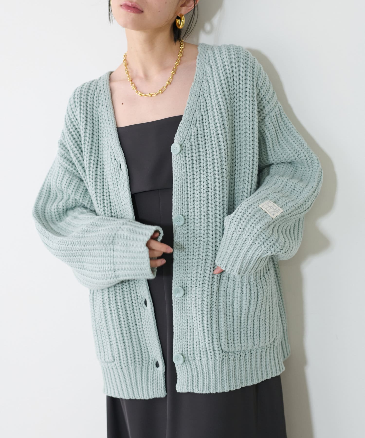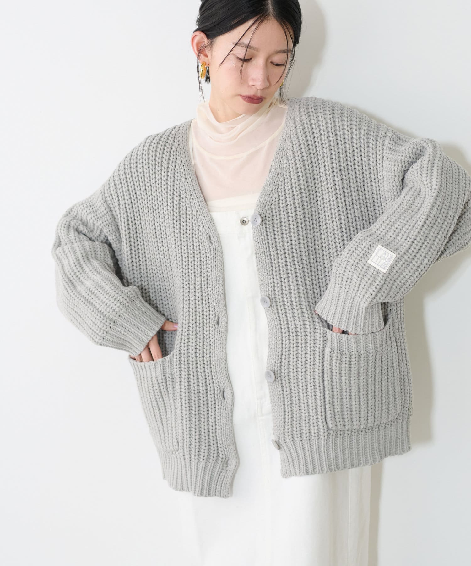 • LARUTA(ラルータ) ハンド風綿片畦カーディガン