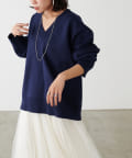 ネックラインはお顔周りをすっきりと見せる深Vデザインに仕上げ、様々なインナーとのレイヤードスタイルがお楽しみ頂けます。