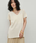 ベーシックなデザインなので、柄物やカラーボトムスなどとの相性も抜群です。