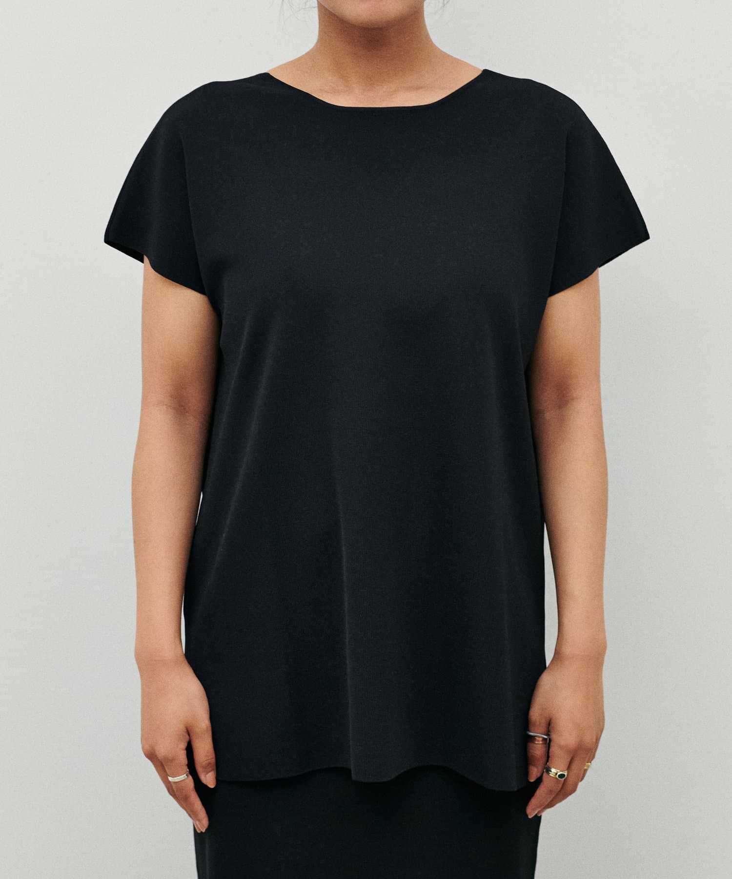 ワイドパンツ・マーメイドスカートなどボリュームあるボトム合わせもすっきりとした