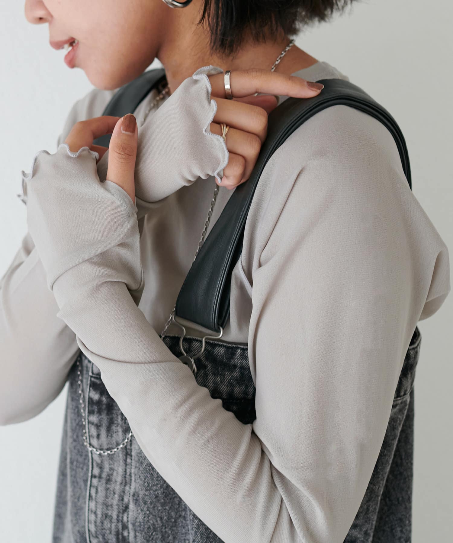 インナーアレンジも可能。親指が通せるデザインになっておりシャツや