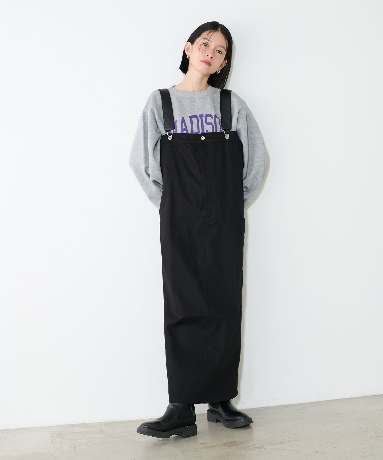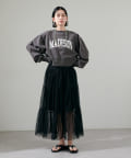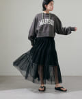 ナローシルエットのスカートやサテンパンツなど、艶感のあるボトムスを選ぶと大人のカジュアルミックスコーデが完成します。